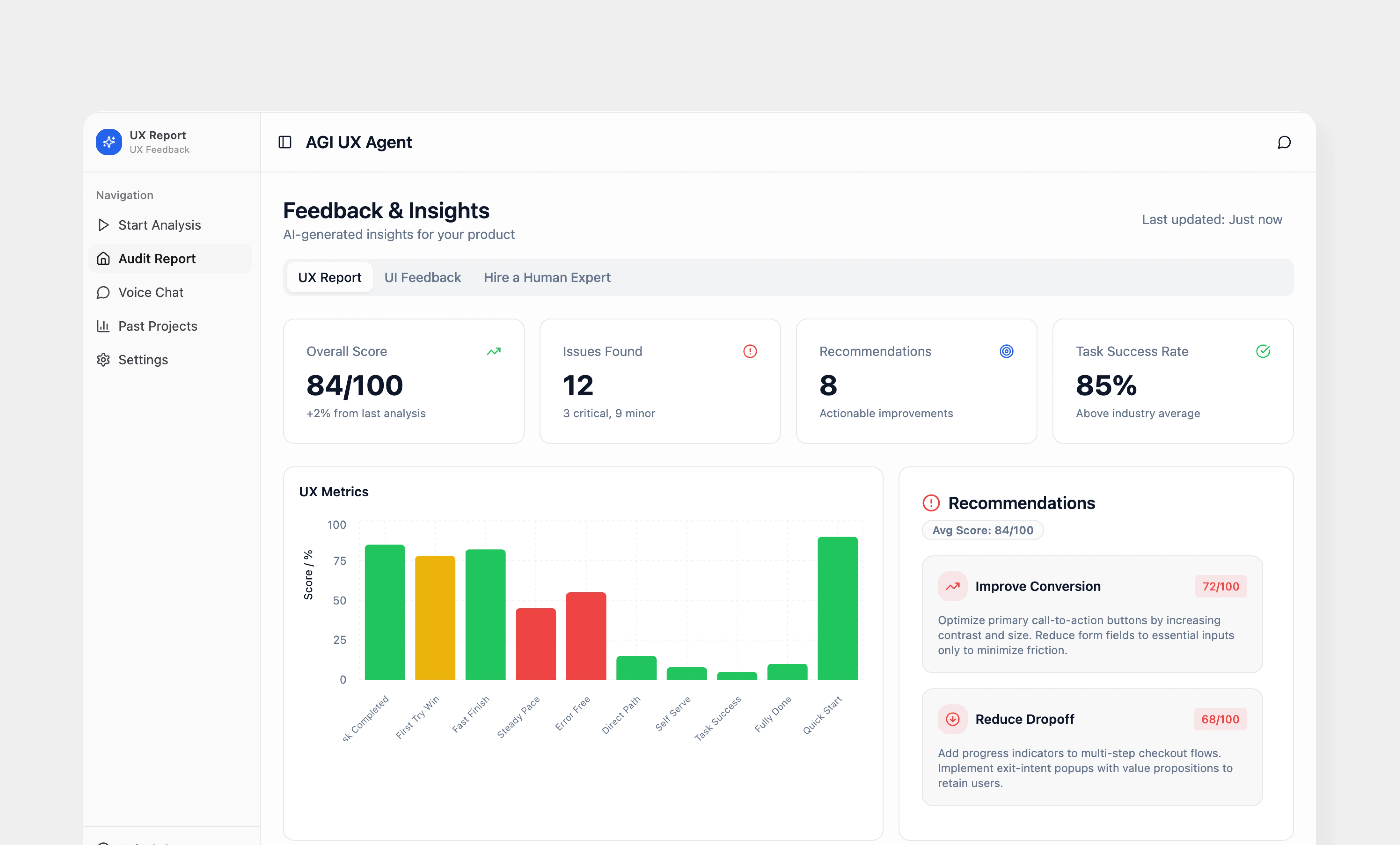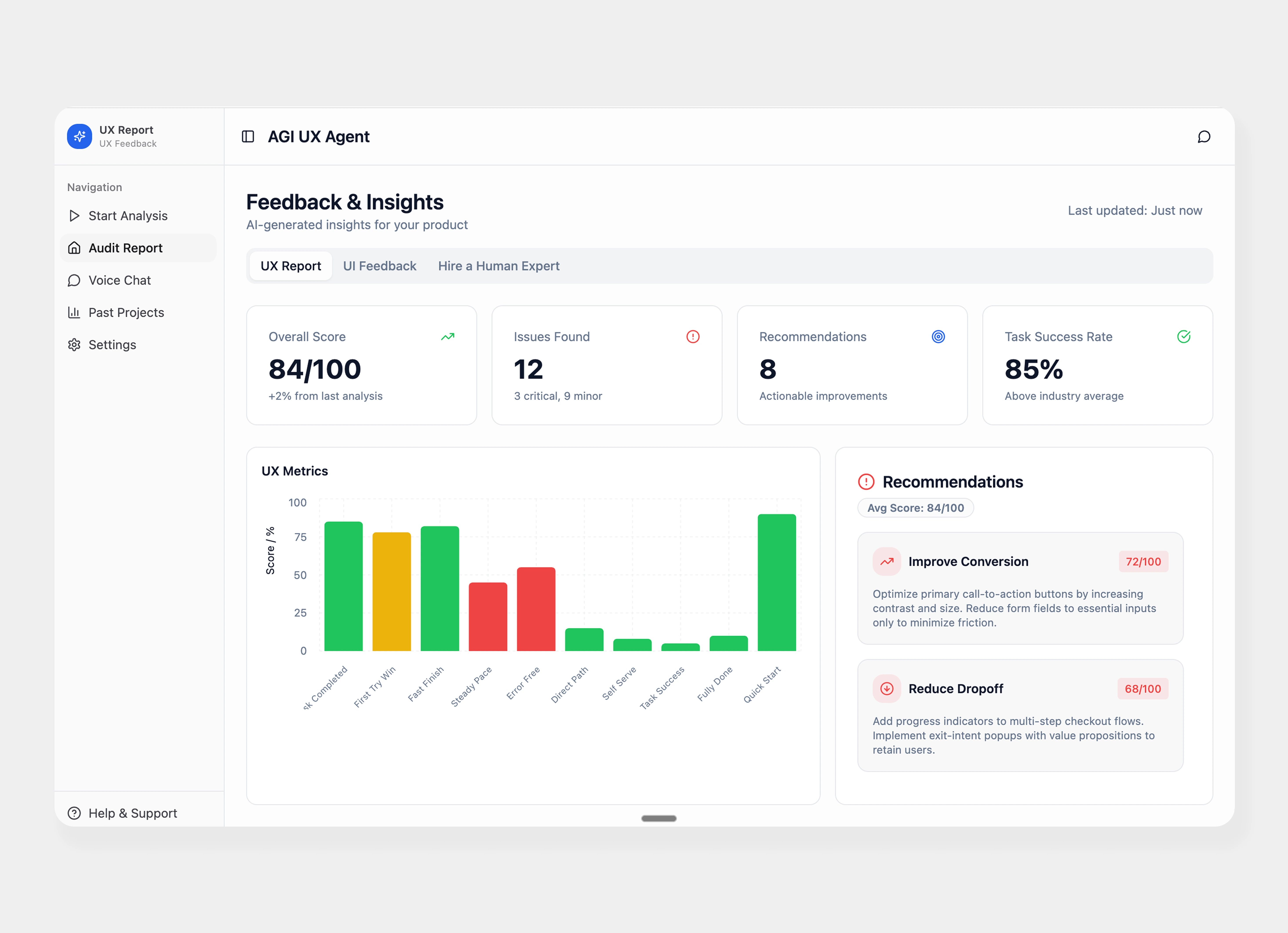 UX agent helps you do automated UX audits for your websites and make recommendations to improve conversion rates.