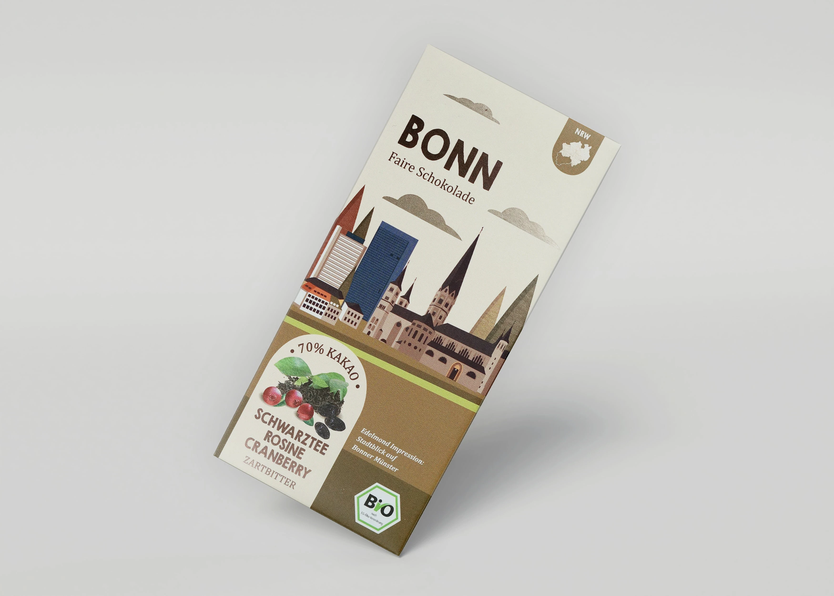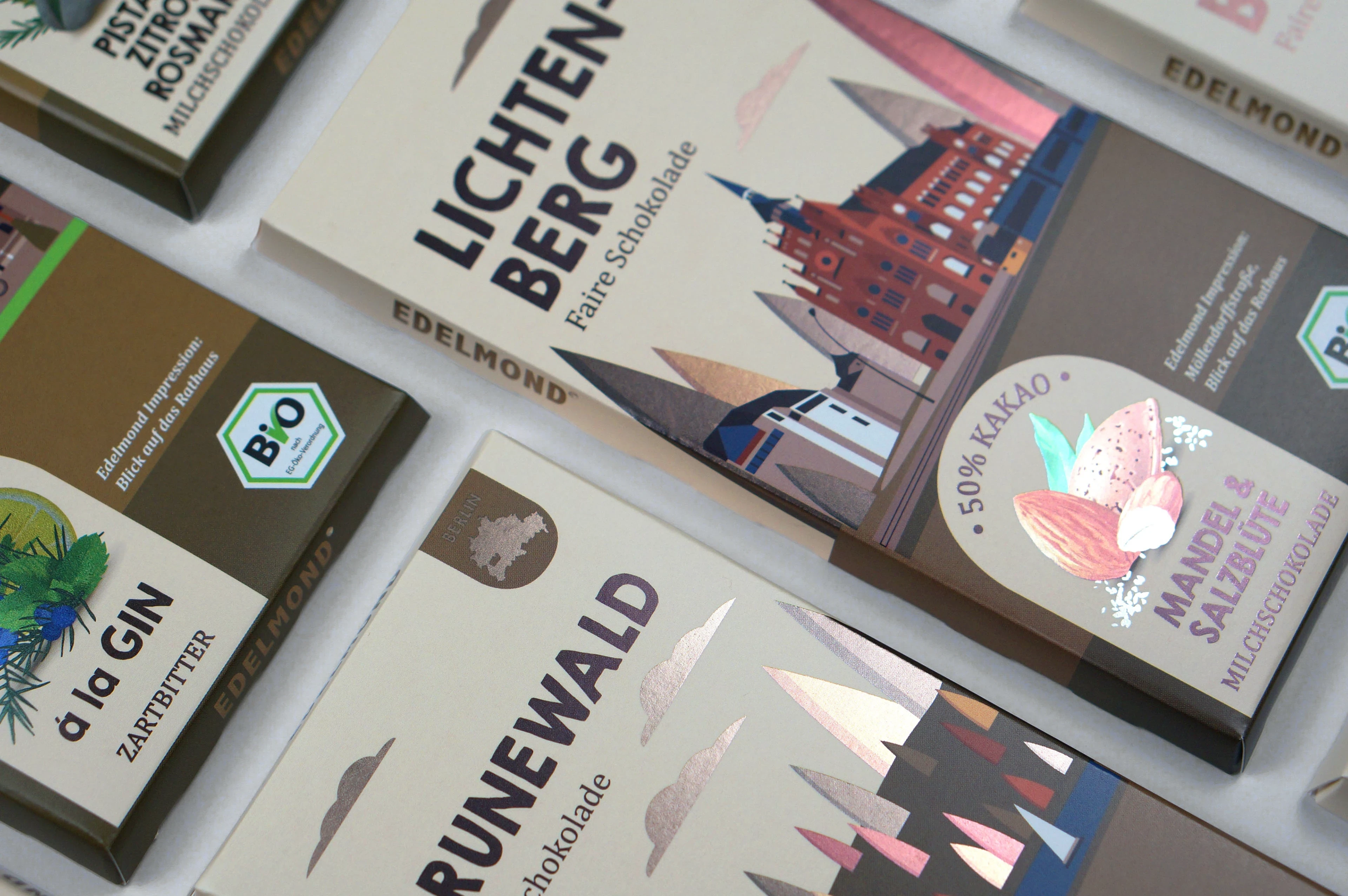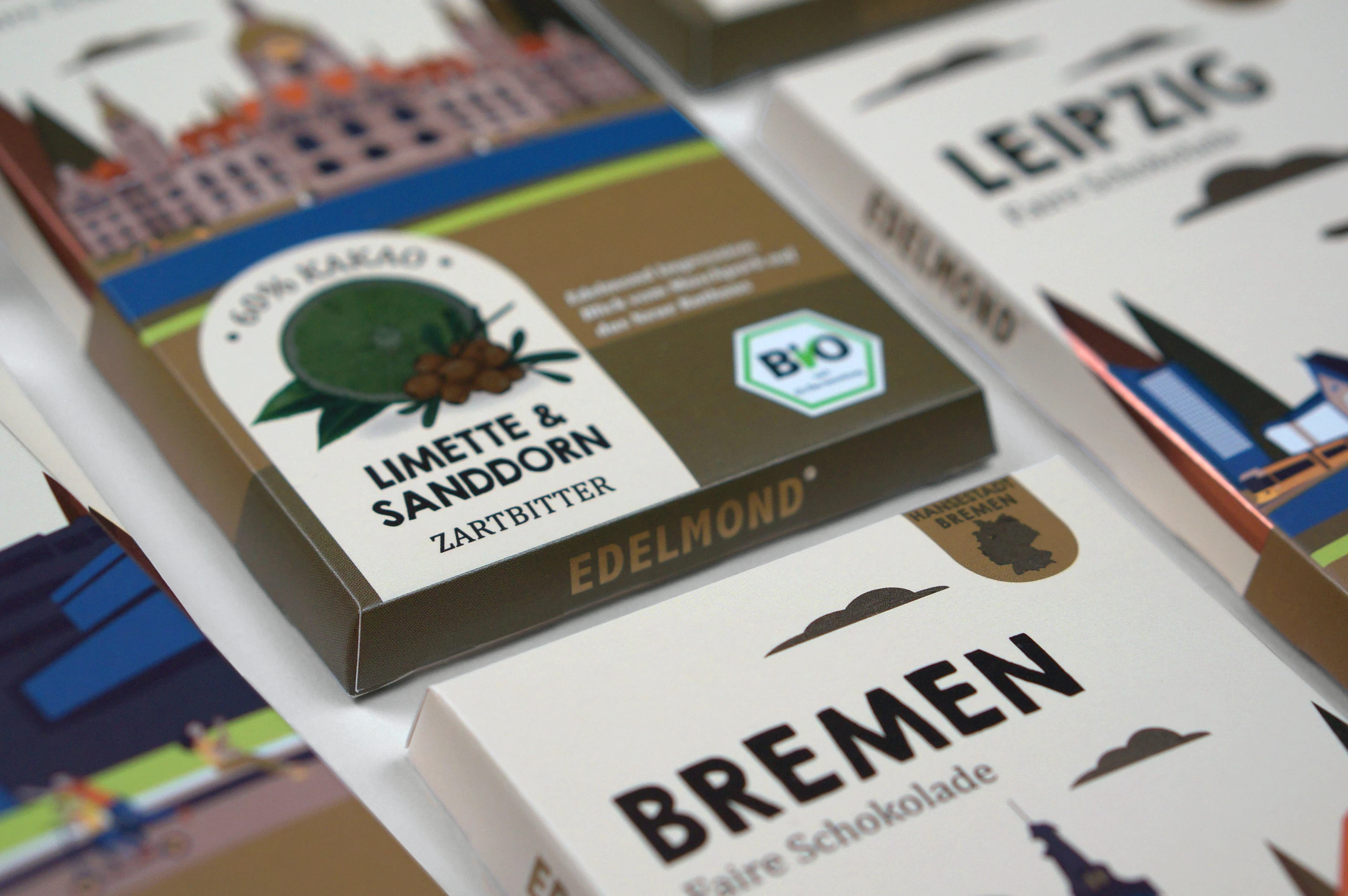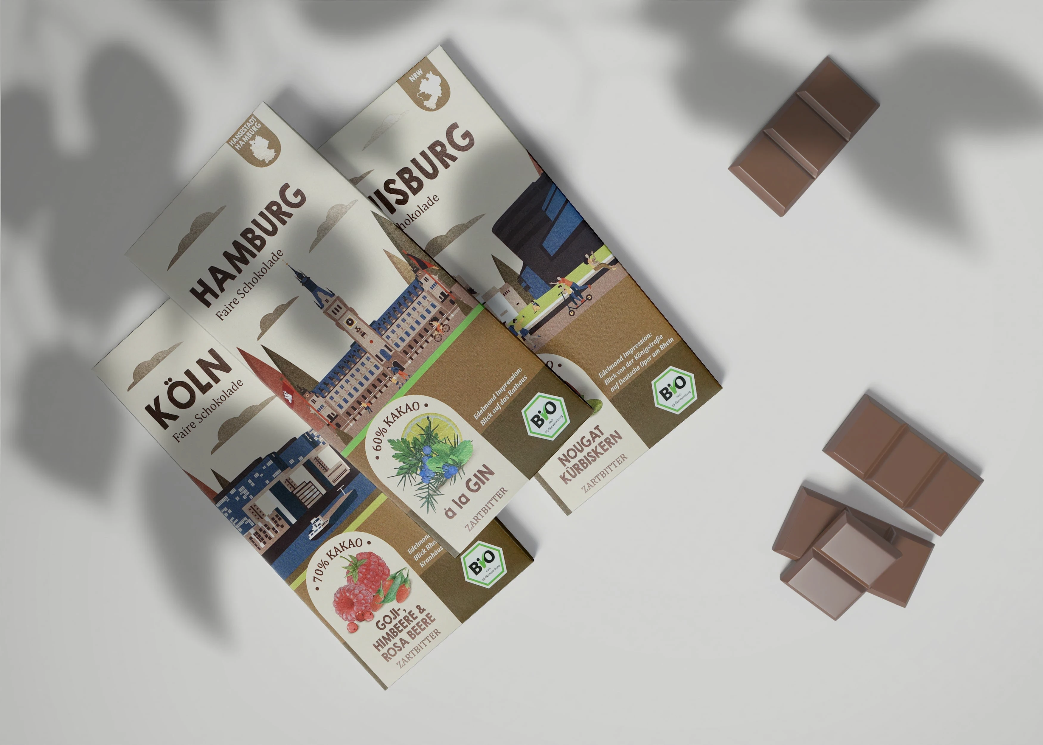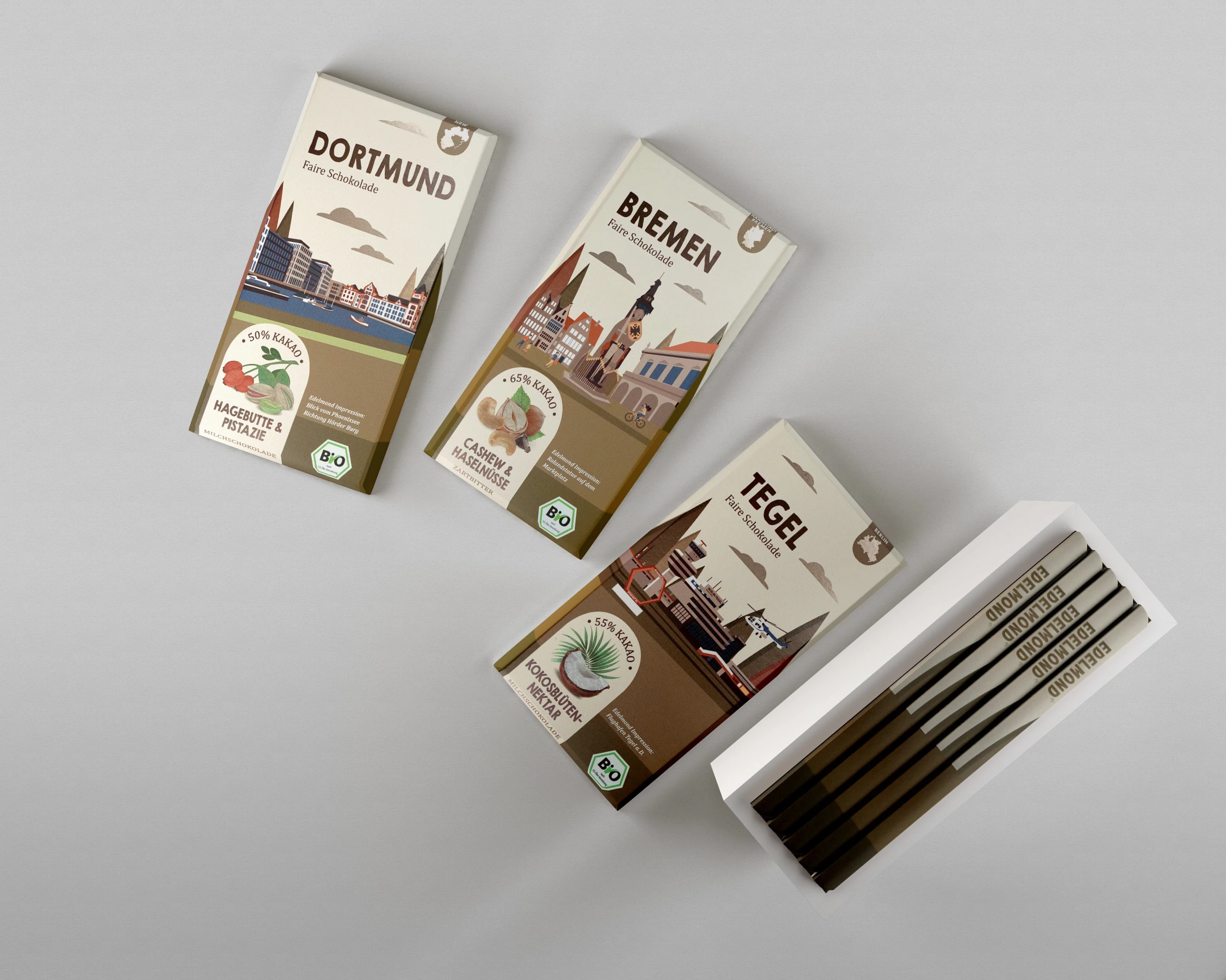 Client's project goal: Create a design for chocolate packaging with the names of different cities in Germany and districts of Munich and Berlin and with different tastes.