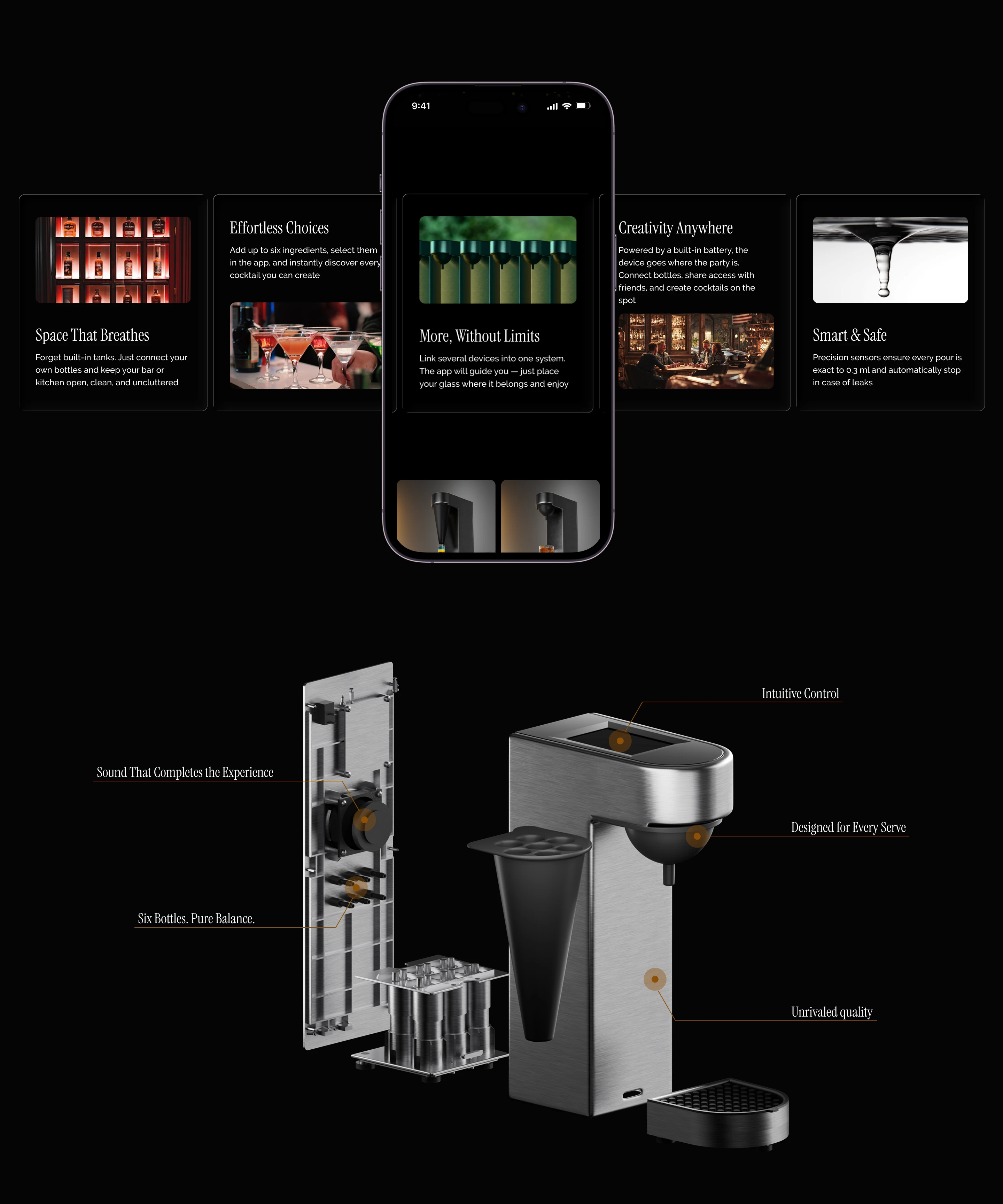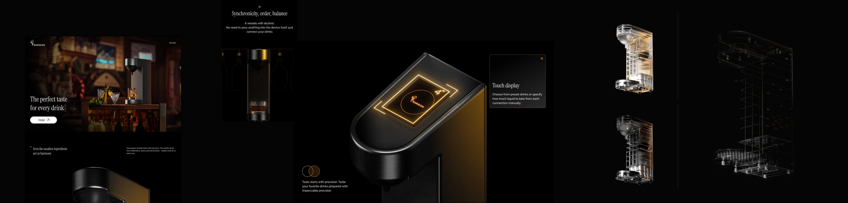 To immerse users into the lifestyle context of Barision, I recreated the atmosphere of a home bar — warm lighting, cinematic depth, and textured materials.