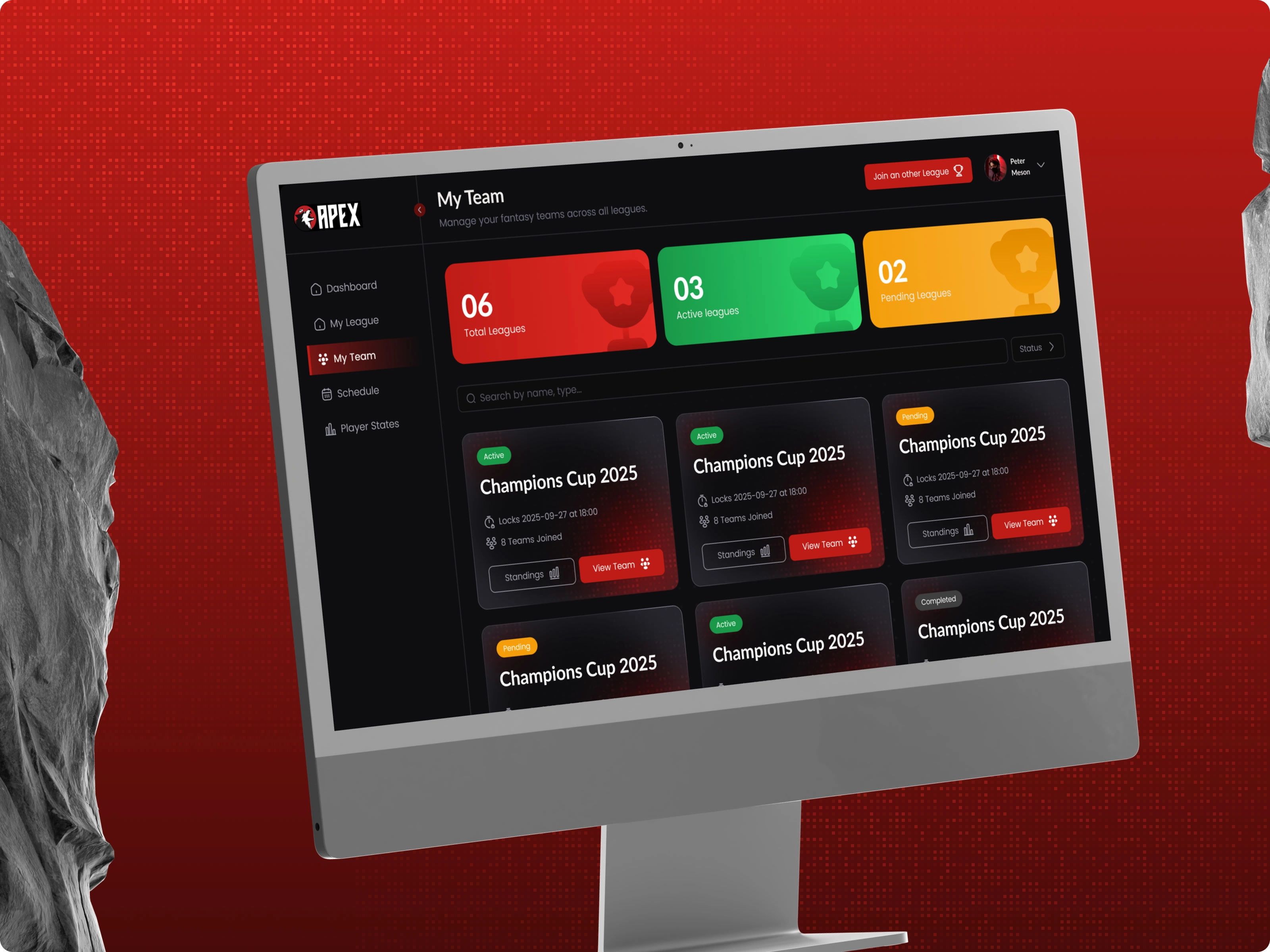 The goal was to improve usability by simplifying complex stats and team management, while keeping the sporty, high-energy vibe that keeps users excited.