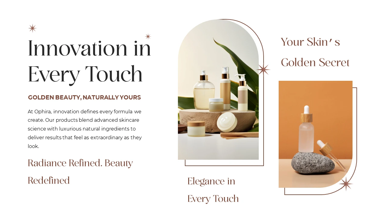I developed a high-end cosmetic brand presentation for Ophira, showcasing its premium skincare identity through a refined and visually compelling pitch deck. This beauty brand presentation design focuses on highlighting Ophira’s product innovation, luxurious formulations, and modern brand aesthetics. Each slide is crafted with clean layouts, elegant visuals, and strategic storytelling to communicate the brand’s value, market positioning, and growth potential.