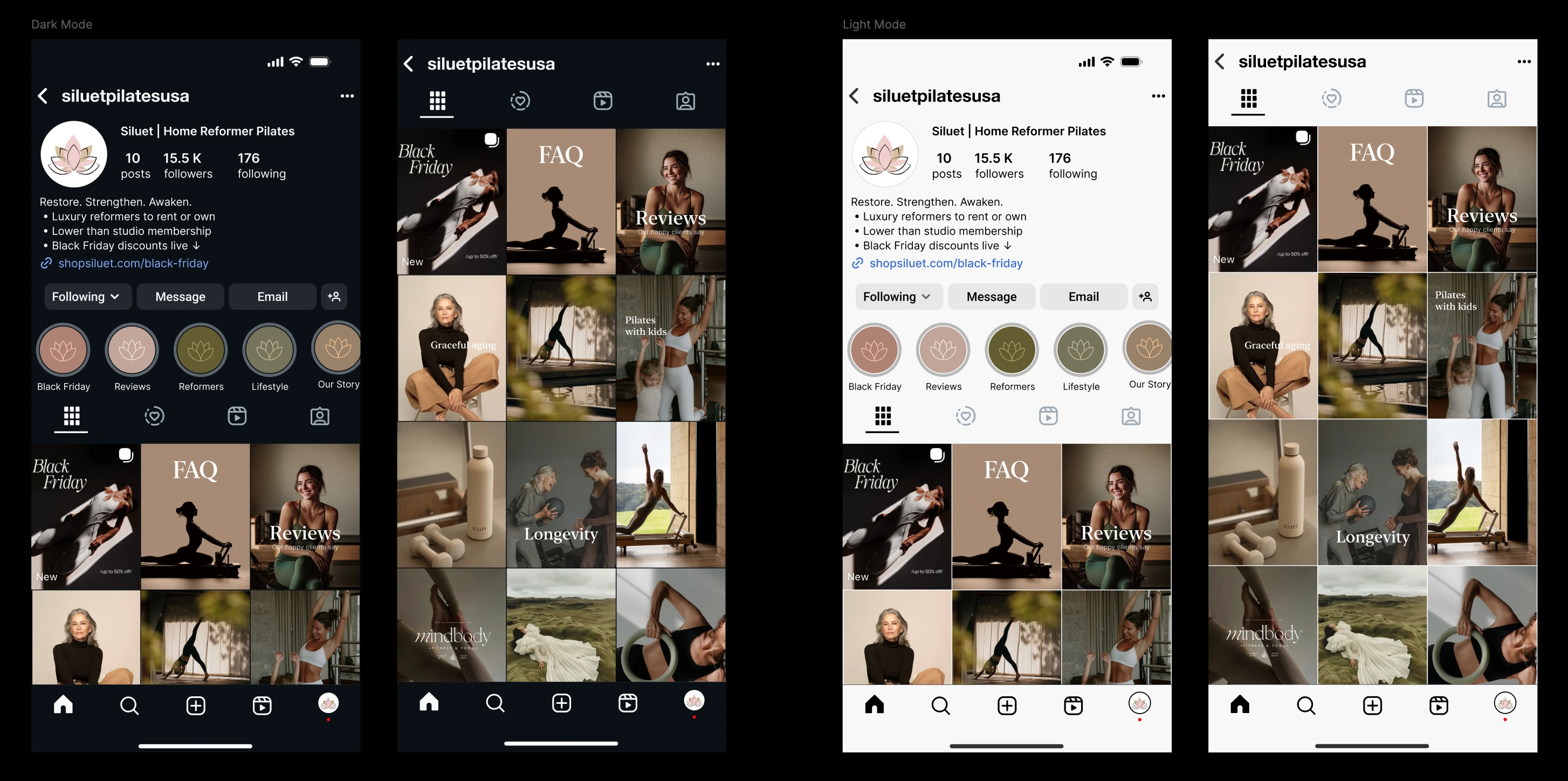 Creative direction for Siluet: natural palette, AI visuals, refined branding and IG assets to bring a premium, body-connected feel to luxury reformers.