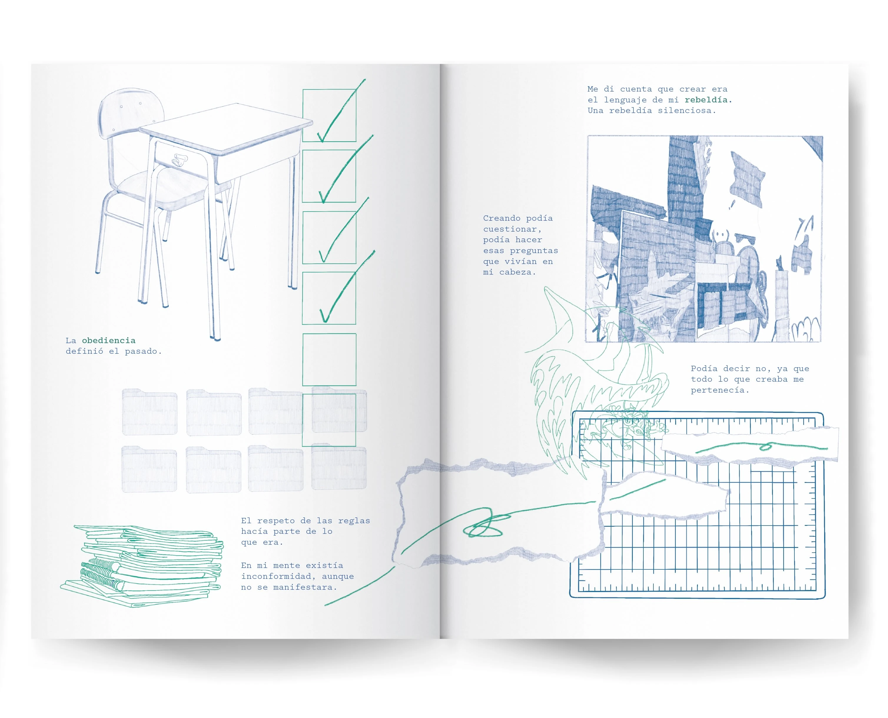Editorial illustration for a personal project that focuses on the influences of my past on my current creative journey. Use of mixed styles and mediums.