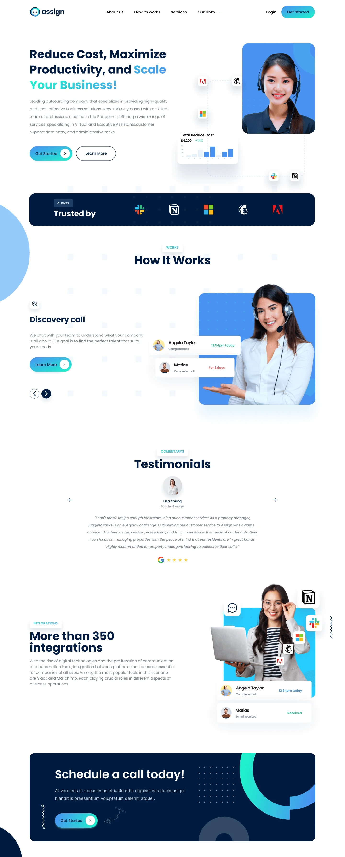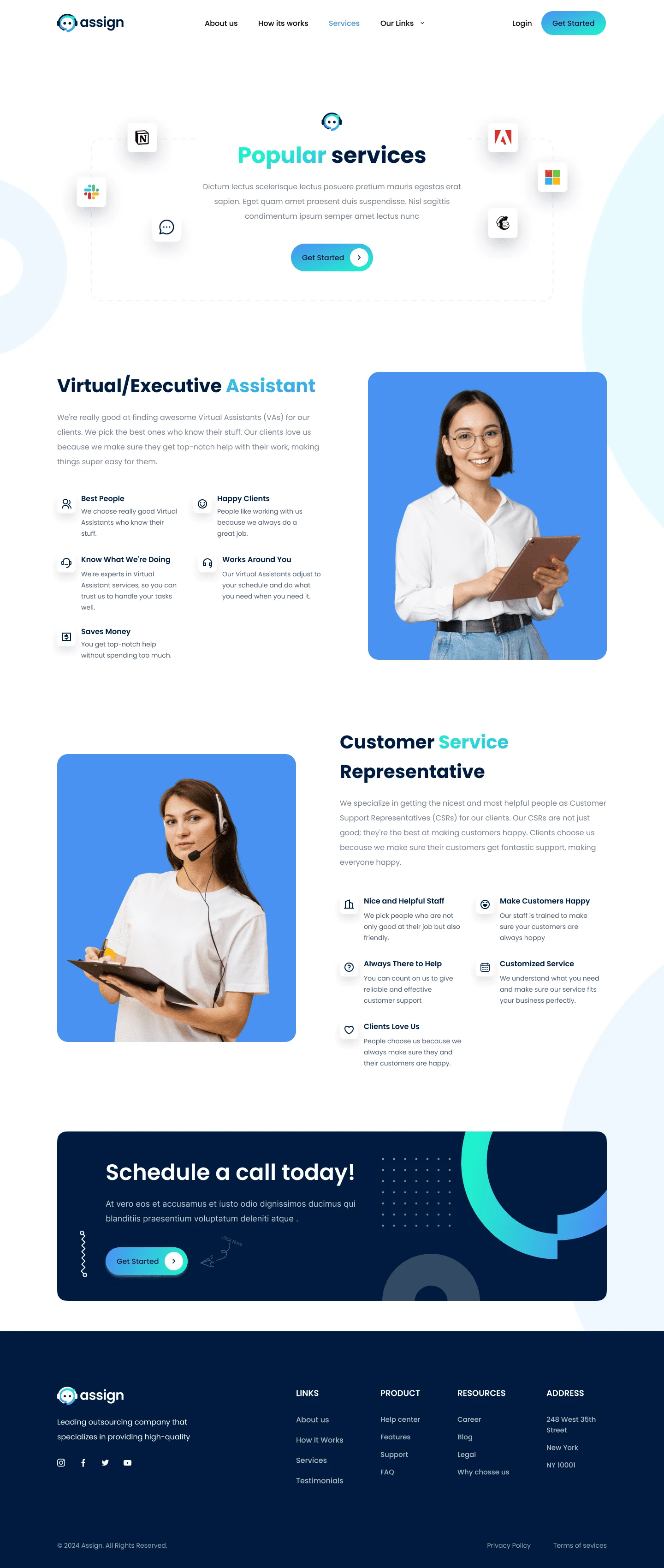 Landing page for a virtual assistant service, focused on clarity, credibility, and lead conversion through modern, friendly UI design.