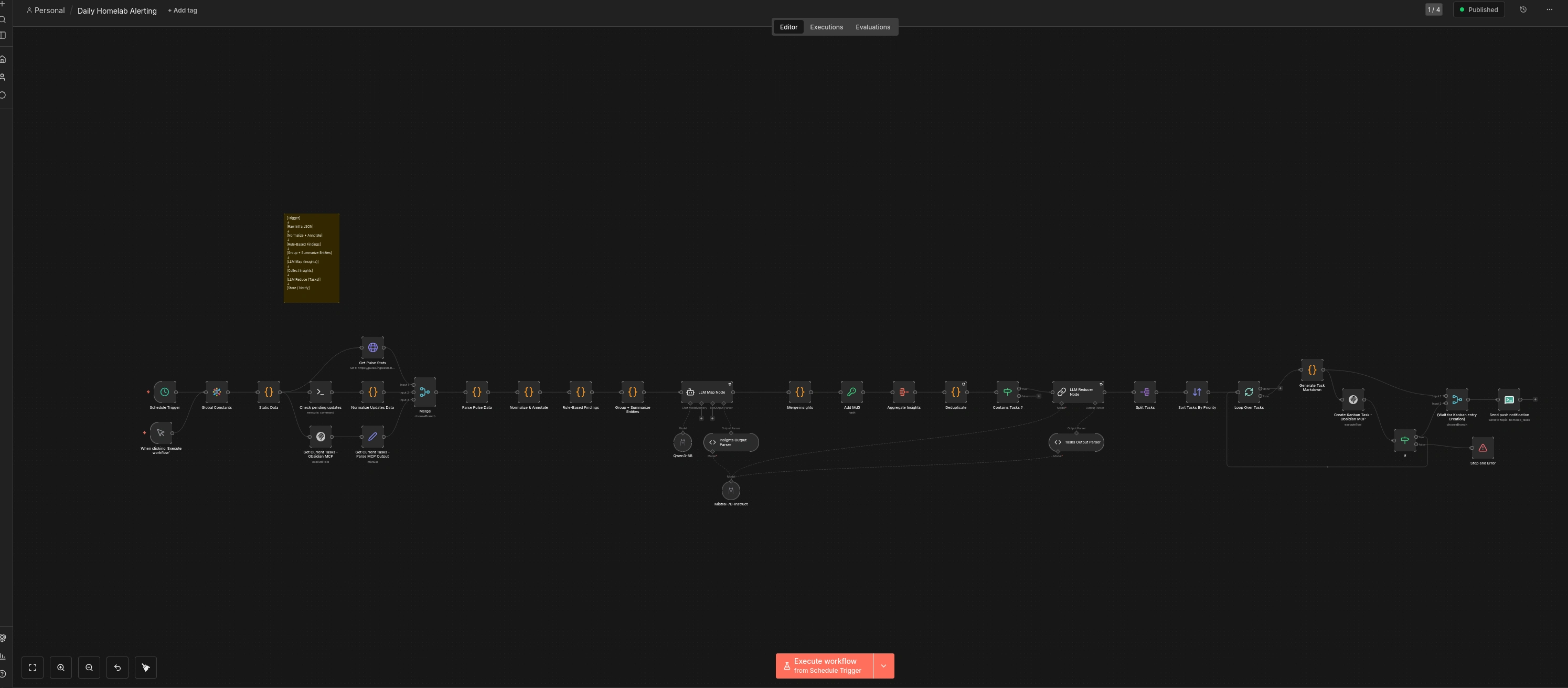 AI agent monitors Proxmox/Portainer homelab: detects updates, config issues, resource problems, autonomously recommends fixes per host/service