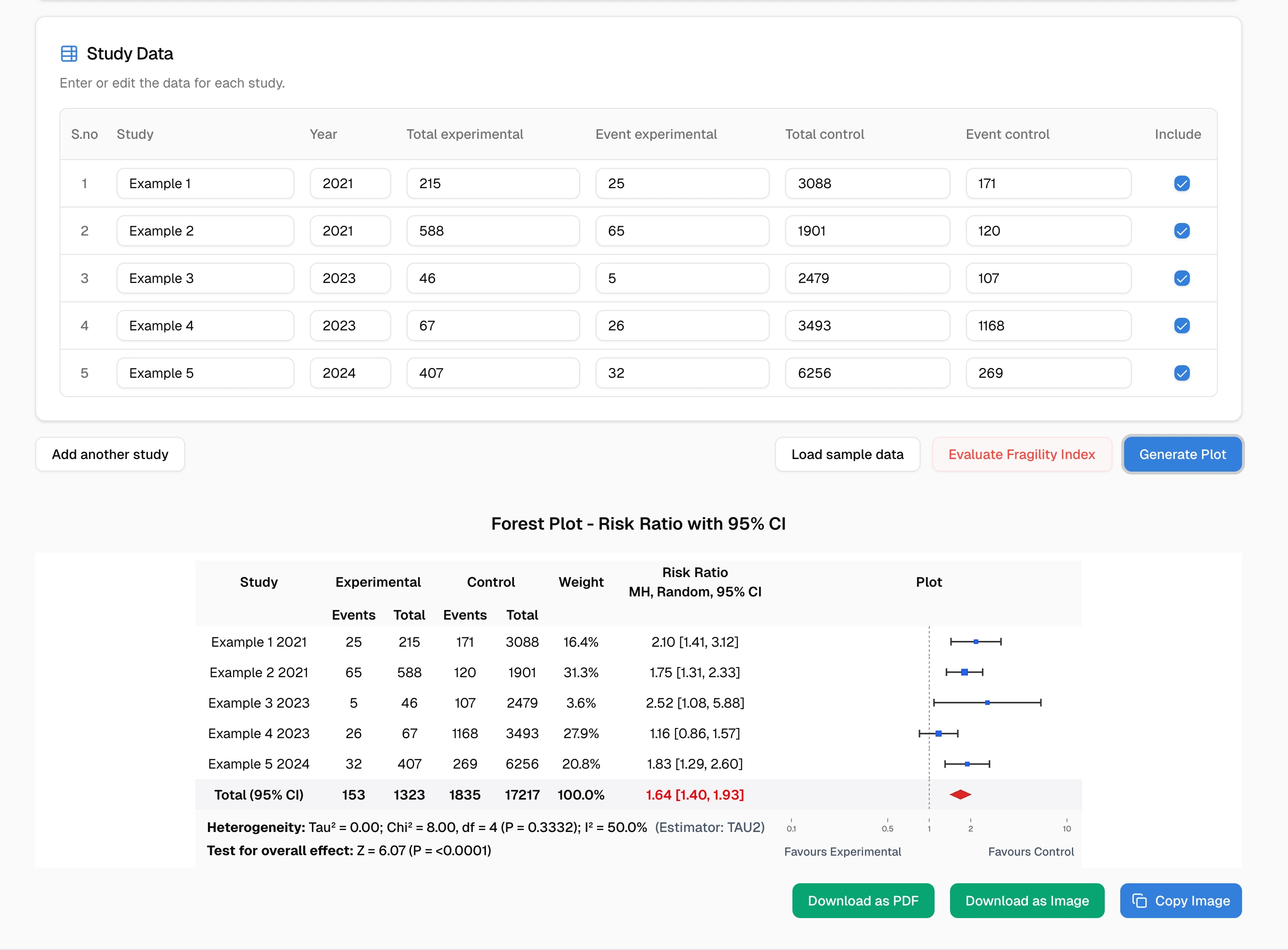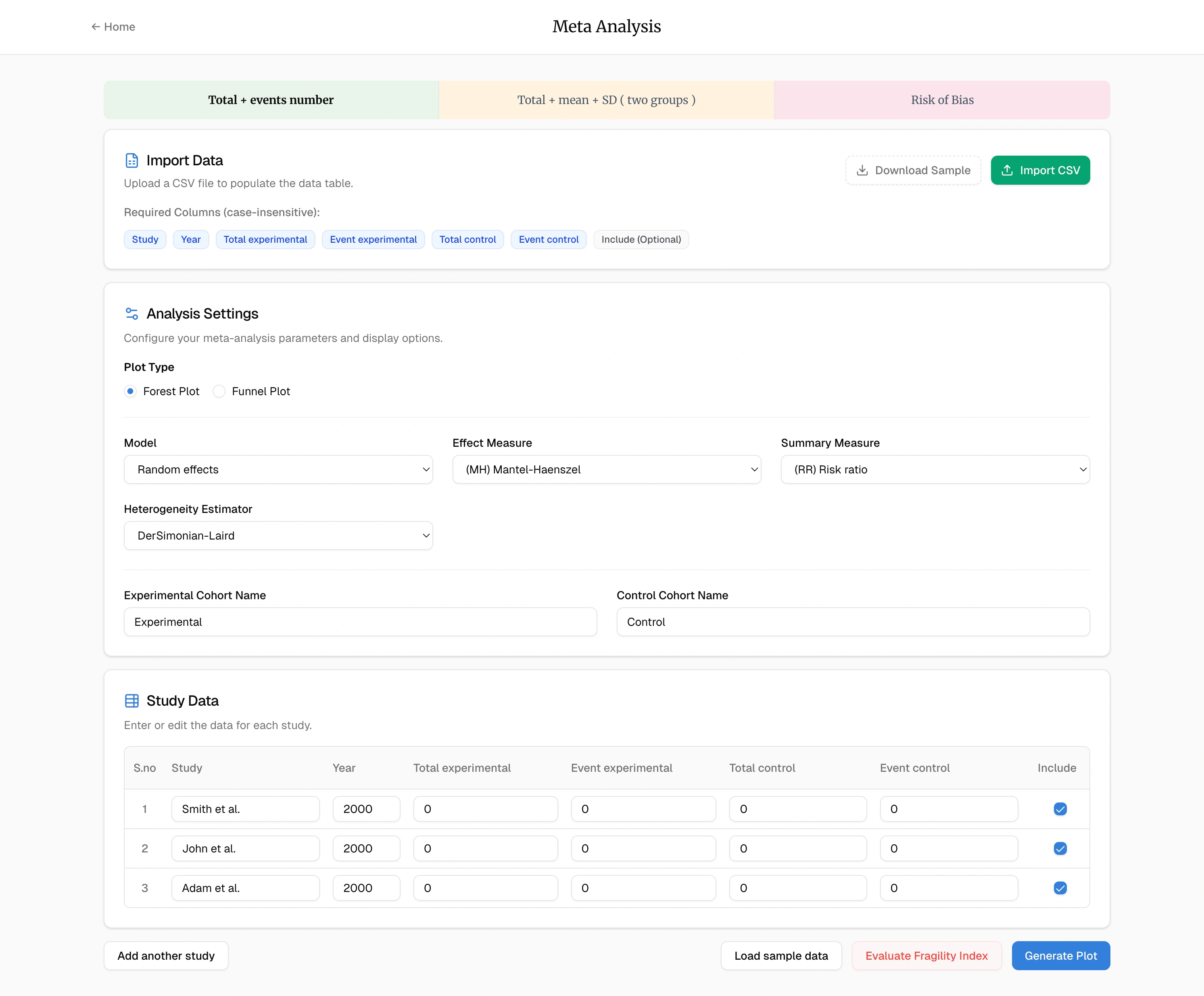 Validate whether researchers would adopt a simple, transparent, web-based tool to run publication-ready meta-analyses without complex tooling.