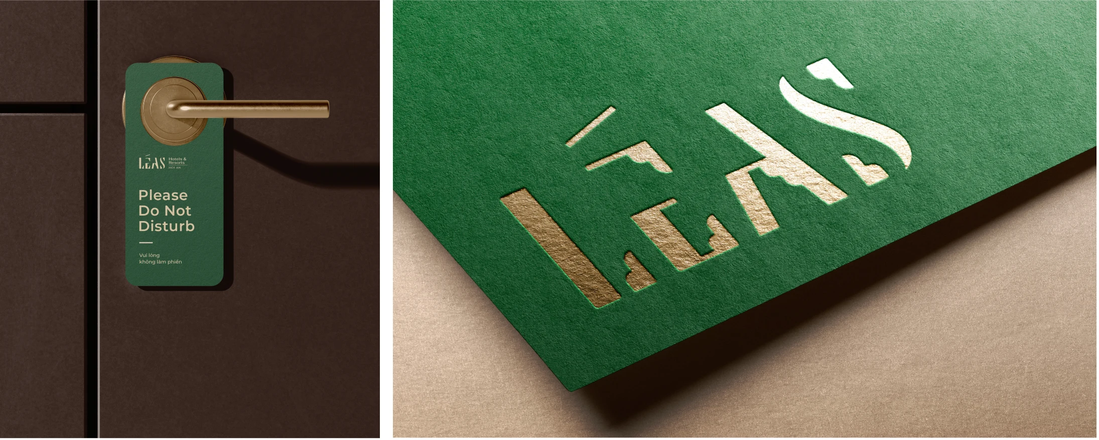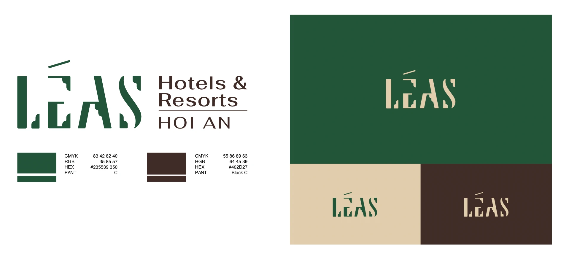 The Leás logo blends Indochine style with refined, elegant letterforms, creating a culturally rooted and memorable identity for the Hotel and Retreat market.