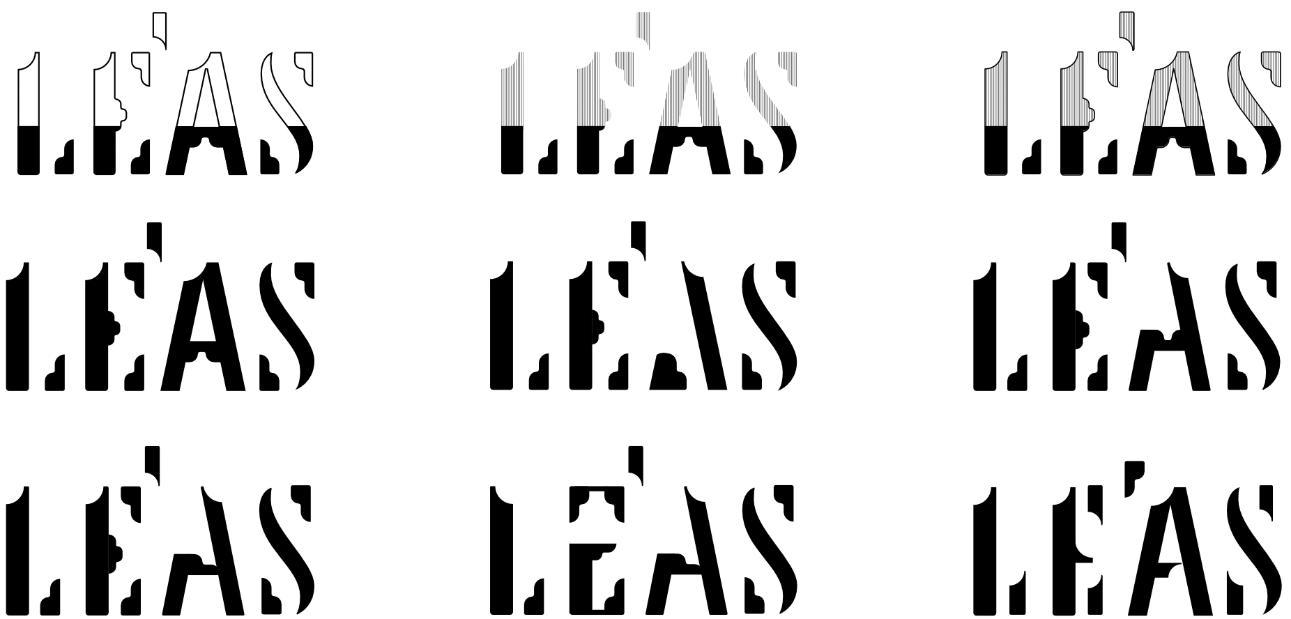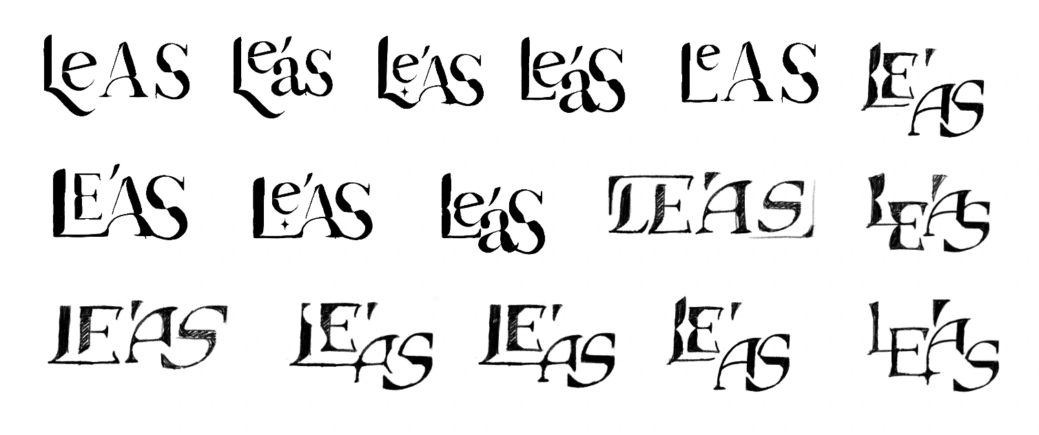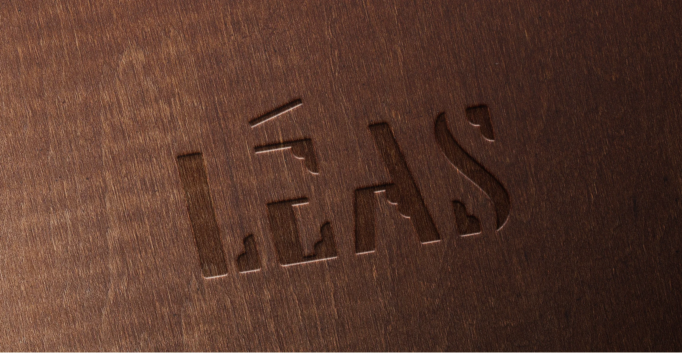 The typographic concept draws from the meaning of Leás - “dancing light.” Inspired by sunlight filtering through leaves, where edges appear softened and partially dissolved, this natural effect informed the logo’s visual expression and sense of movement.