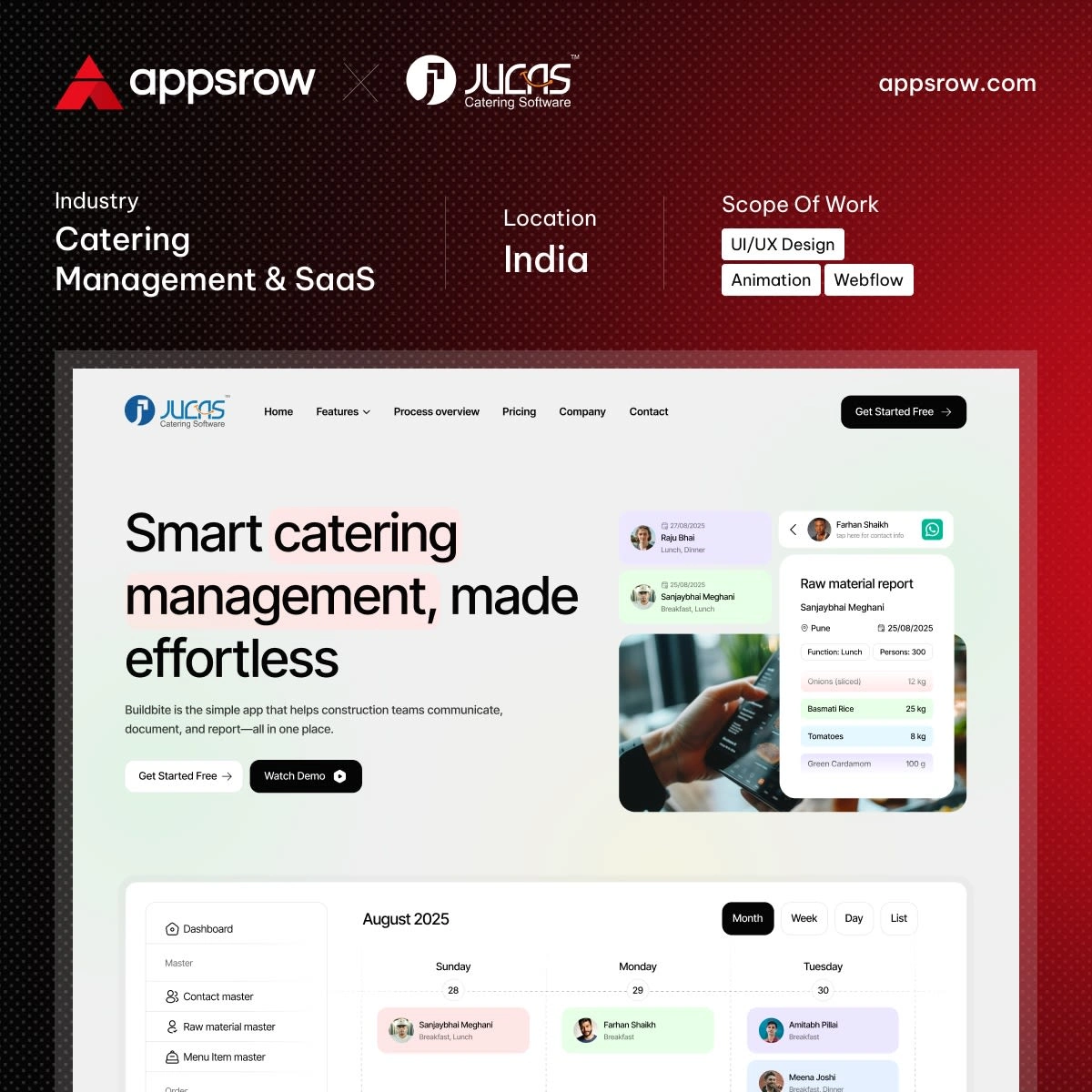 MyJucas is a catering management software designed to simplify operations, order tracking, and workflow management for food businesses. The website needed to communicate product capabilities clearly while maintaining a modern SaaS-focused identity.