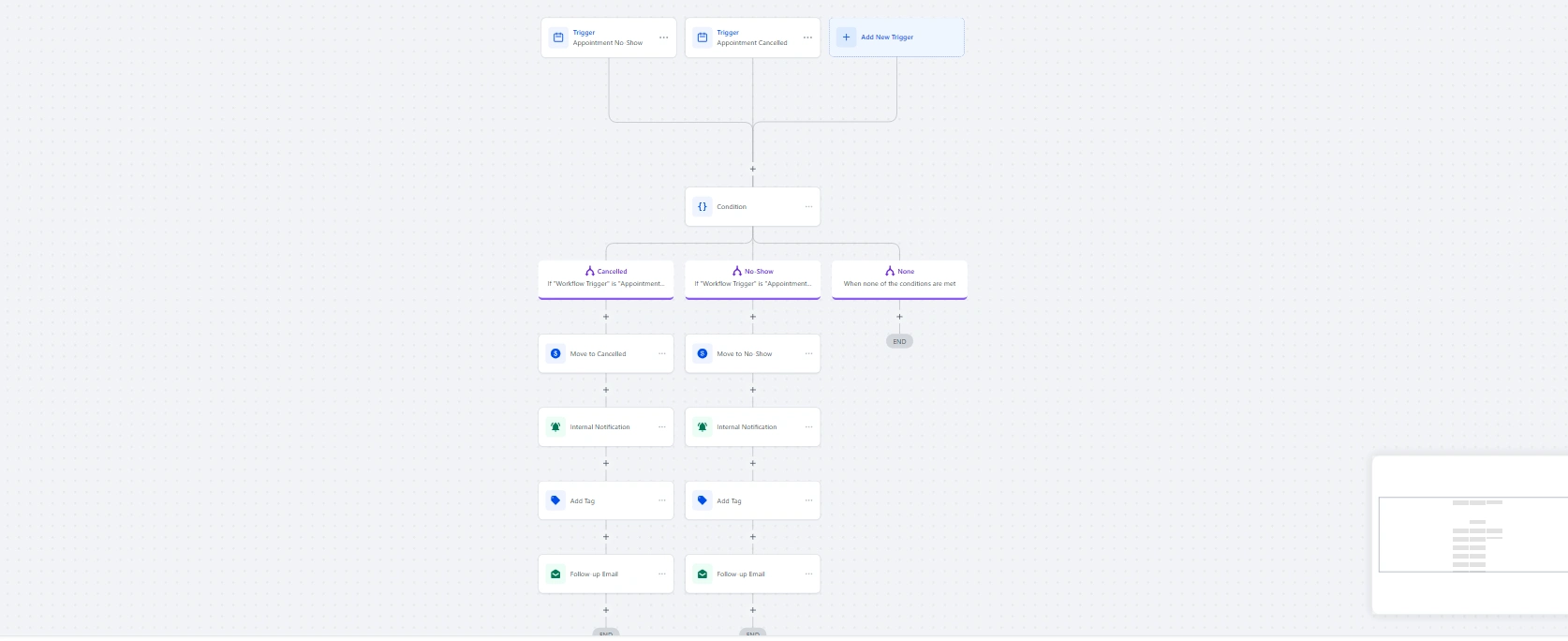 Automated follow-up sequences based on appointment outcomes