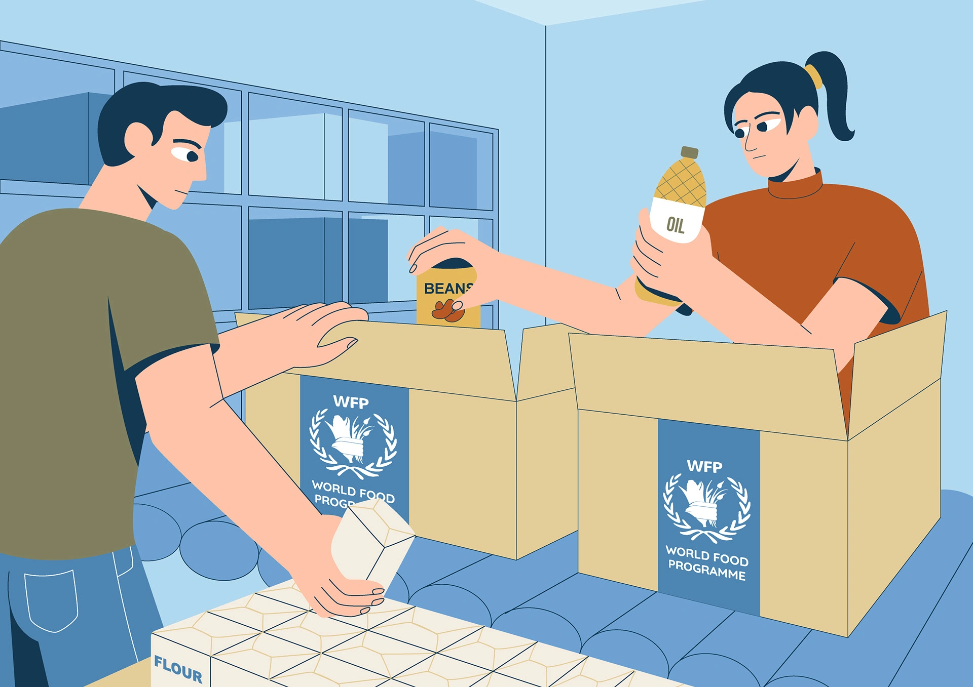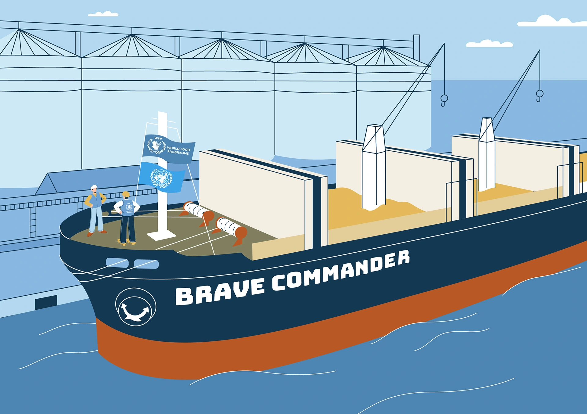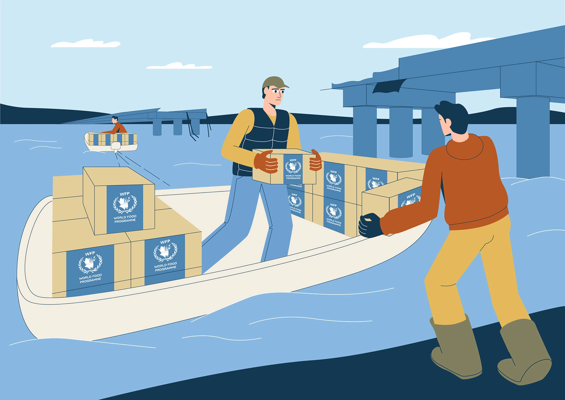 Series of Illustrations for the UN World Food Programme Ukraine about their activities during Russia’s war on Ukraine, like food aid to front-line cities, financial aid to displaced persons and war victims, Grain from Ukraine initiative, school meals, cooperation with bread factories, and much more.