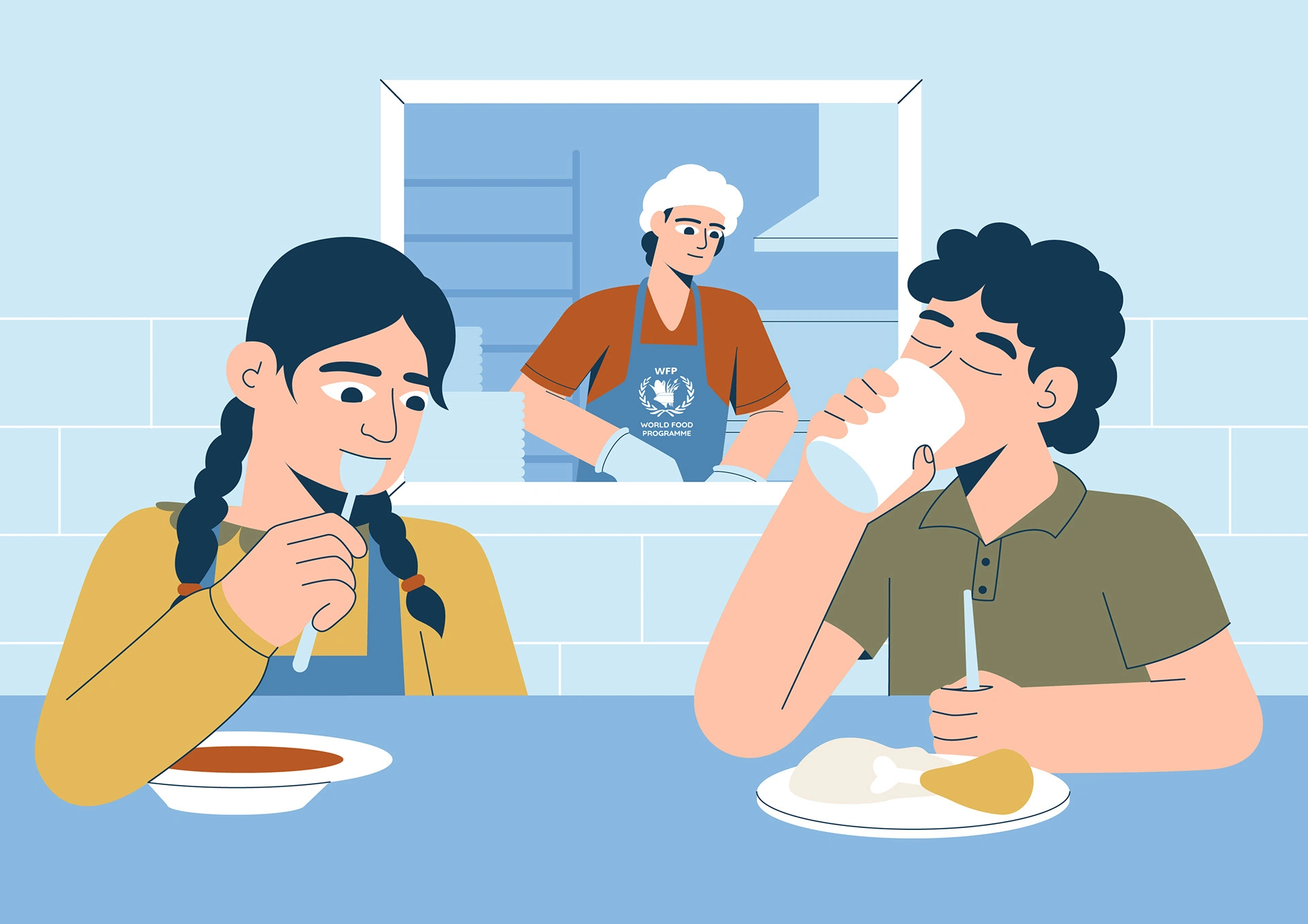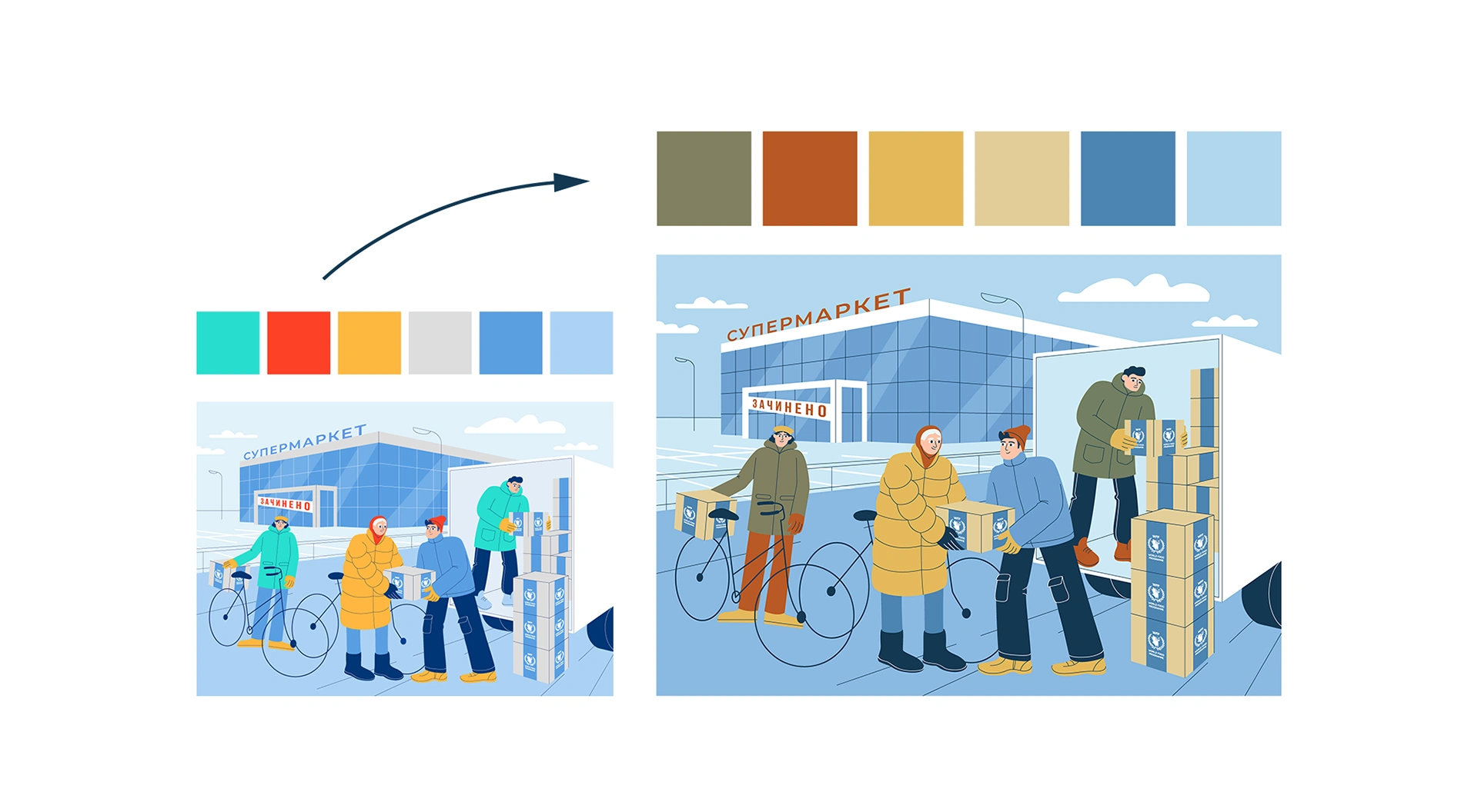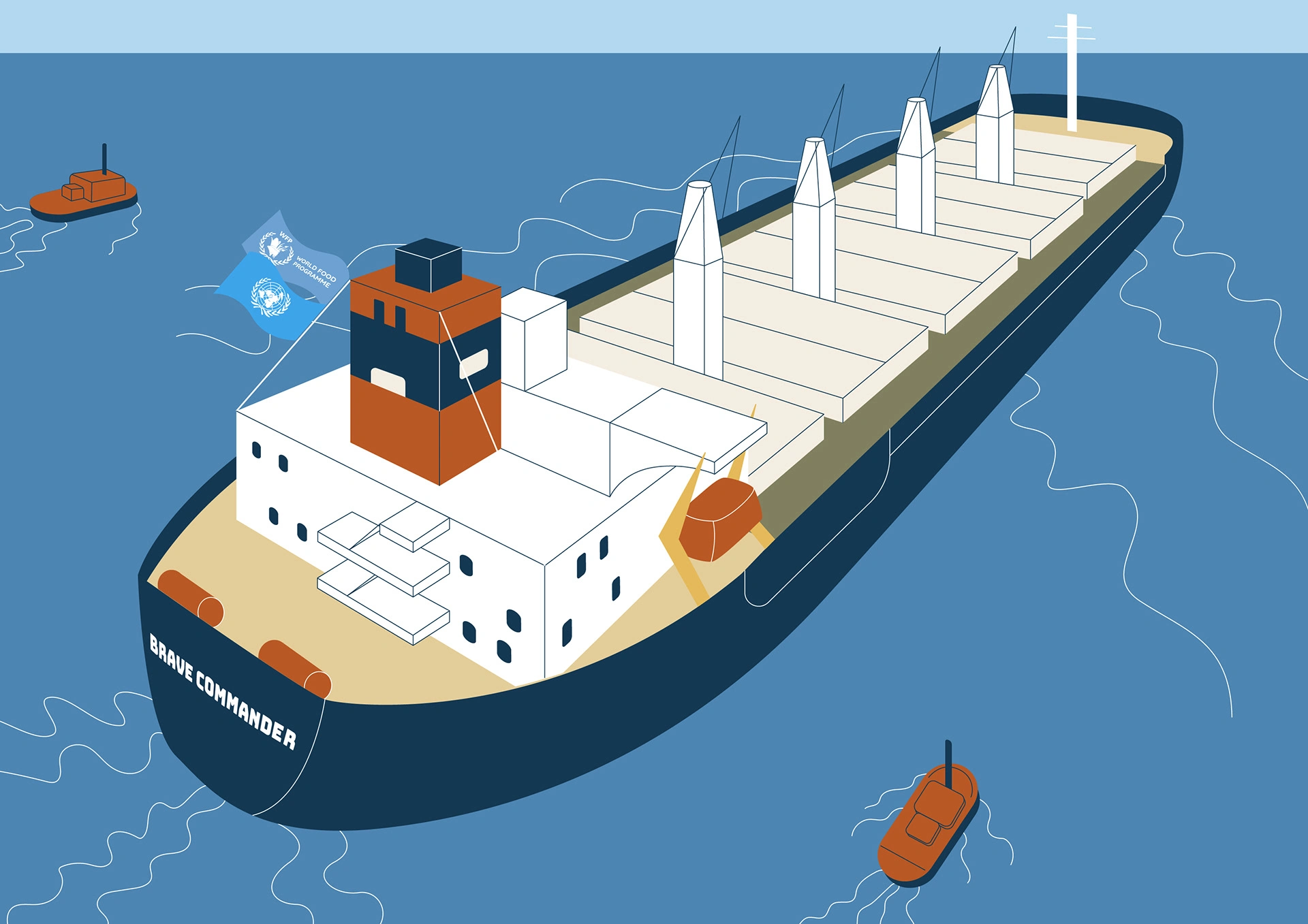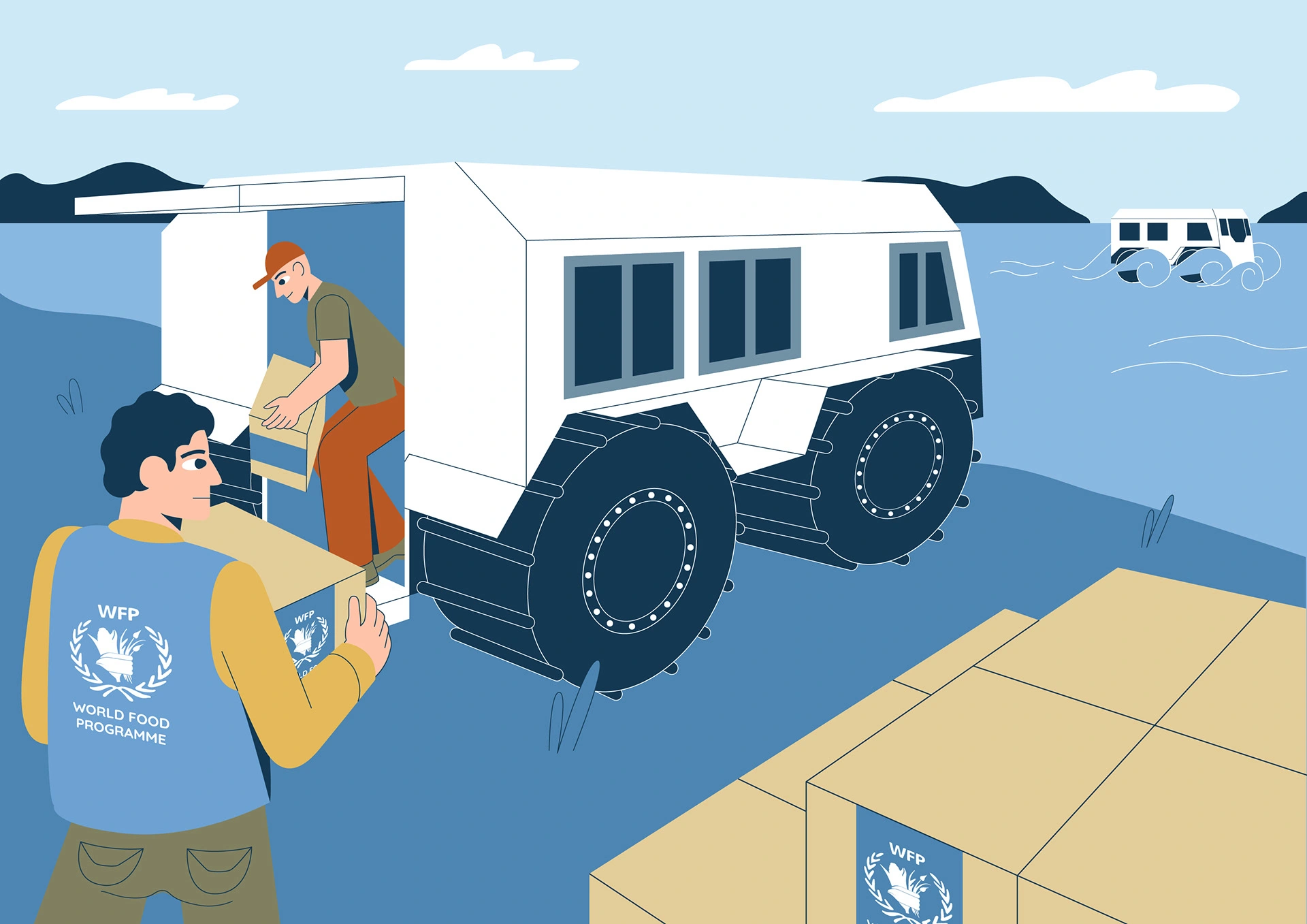 Series of Illustrations for the UN World Food Programme Ukraine about their activities during Russia’s war on Ukraine, like food aid to front-line cities, financial aid to displaced persons and war victims, Grain from Ukraine initiative, school meals, cooperation with bread factories, and much more.