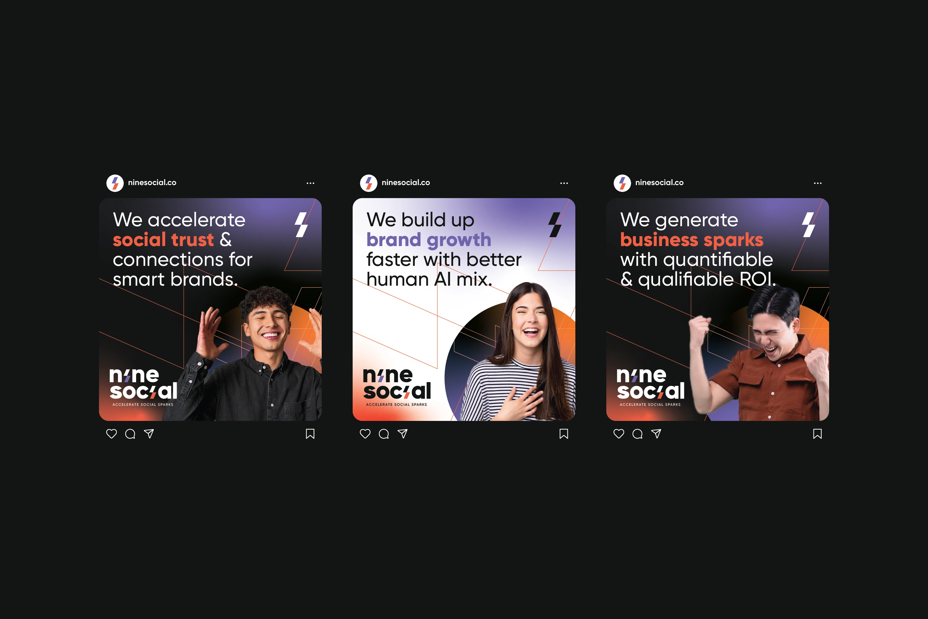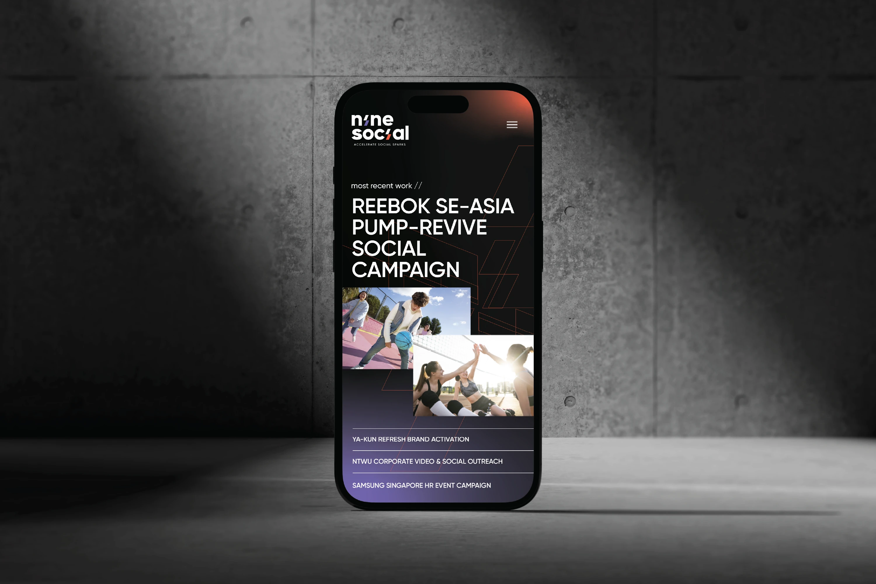Nine Social is a high-velocity social production and influencer marketing agency based in South East Asia. In a market where speed is currency and attention is measured in milliseconds, the agency needed a digital-first identity that signaled both shocks-and-awe creativity and surgical marketing precision.