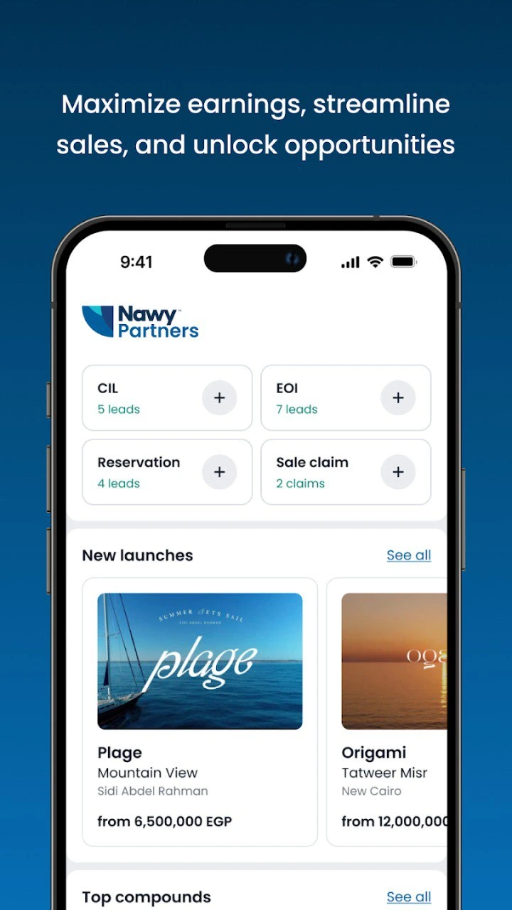 Nawy.com, and track your sales all in one place. Additionally, become an ambassador and refer interested buyers to Nawy and earn commission on successful sales. Download Nawy Partners now and take your real estate game to the next level!
