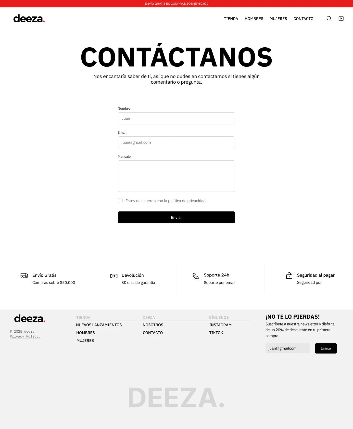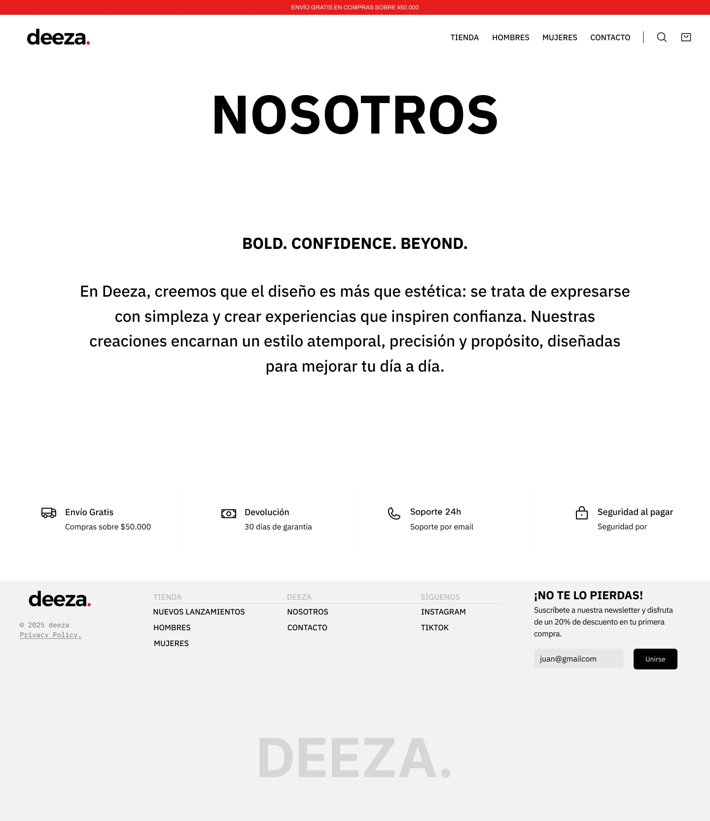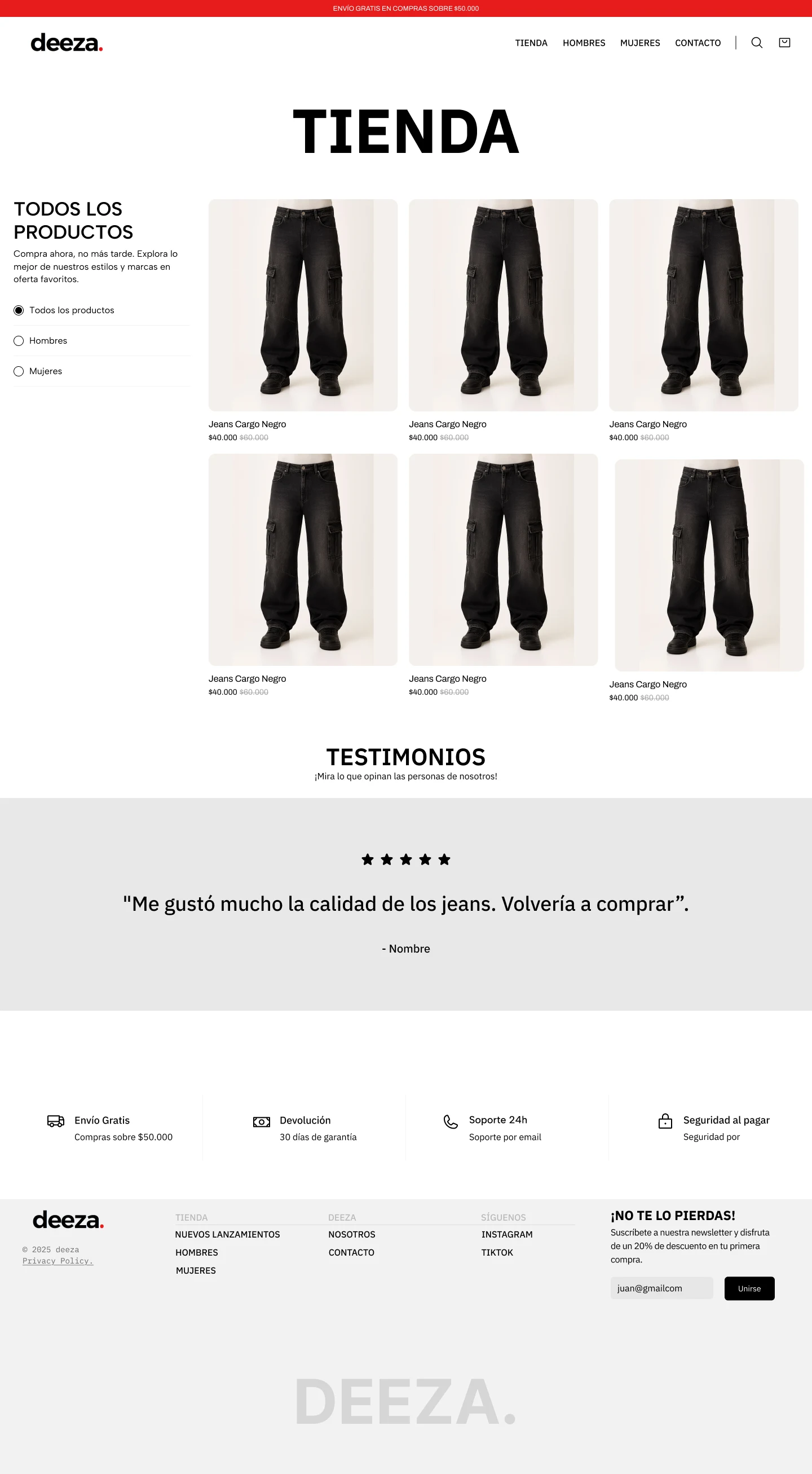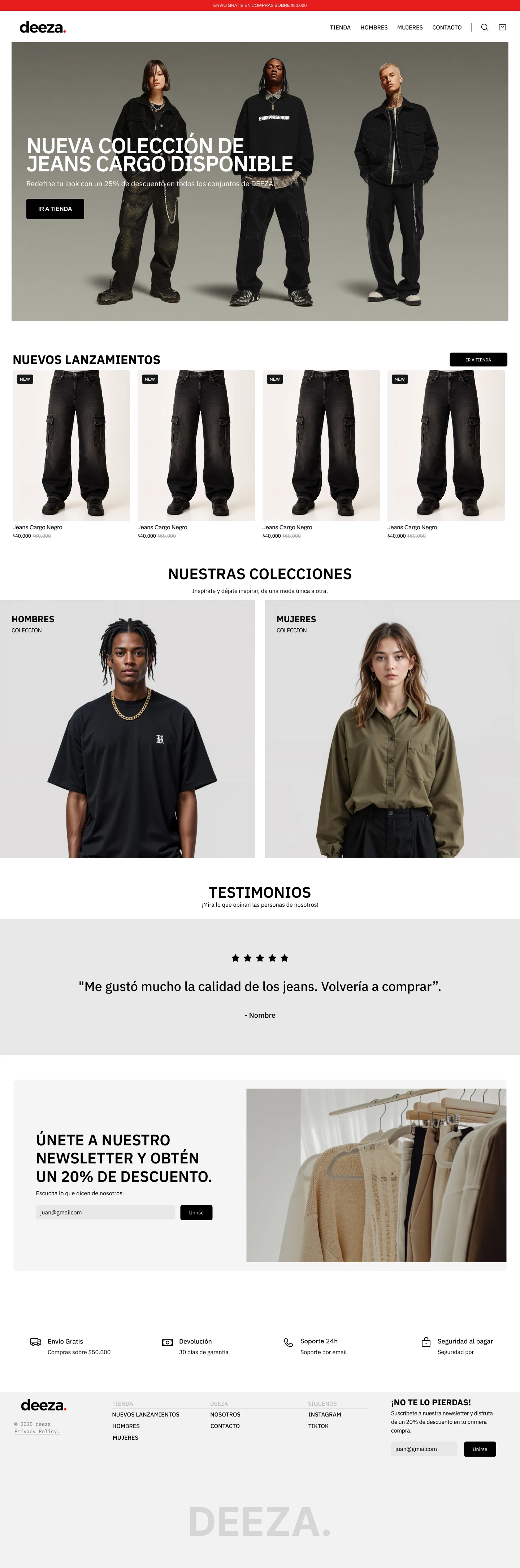 Deeza is a fashion brand currently focused on selling jeans, with plans to expand its catalog in the future. The client reached out to me to create the web design in Figma, with the vision of later developing it into their official online store.