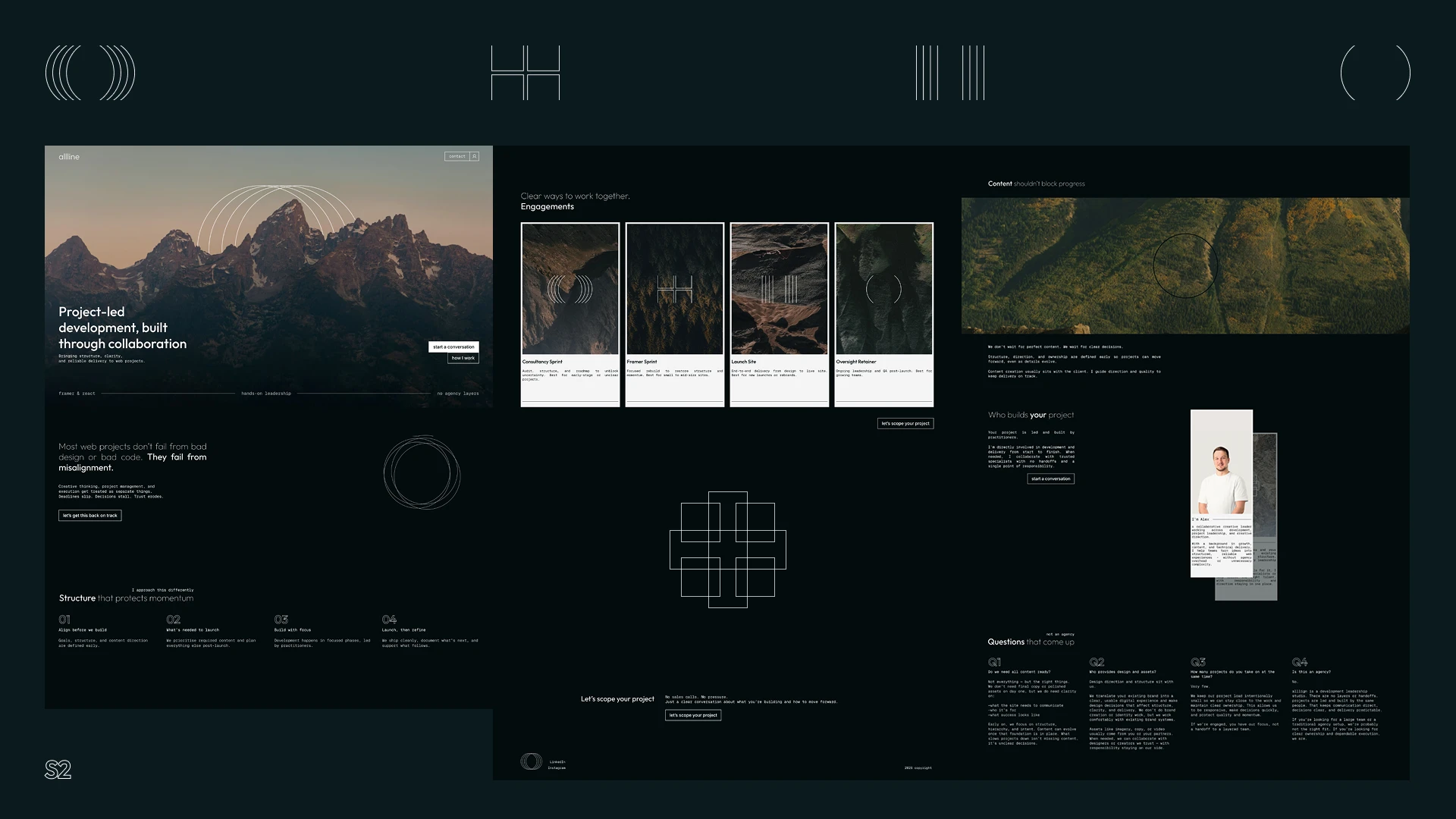 The result is a calm, focused studio presence that reflects the way Allline operates in practice. The site acts as both an introduction and a filter, helping aligned clients understand the approach before any work begins.