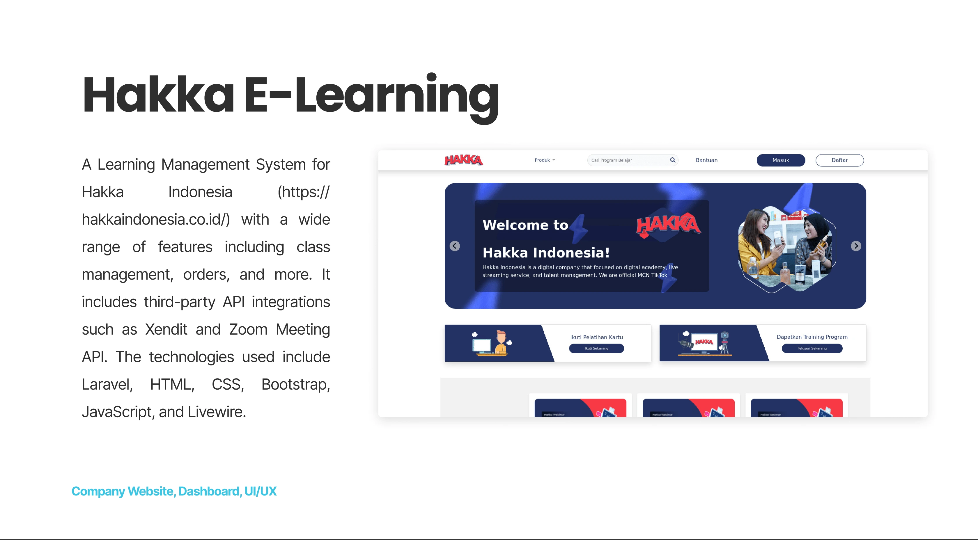A Learning Management System for Hakka Indonesia with class management, orders, and third-party API integrations like Xendit and Zoom Meeting.