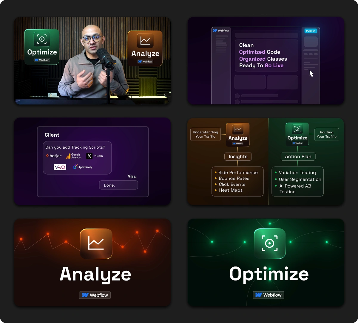 This project was a YouTube tutorial focused on Webflow Analyze & Optimize and Webflow AEO workflows.