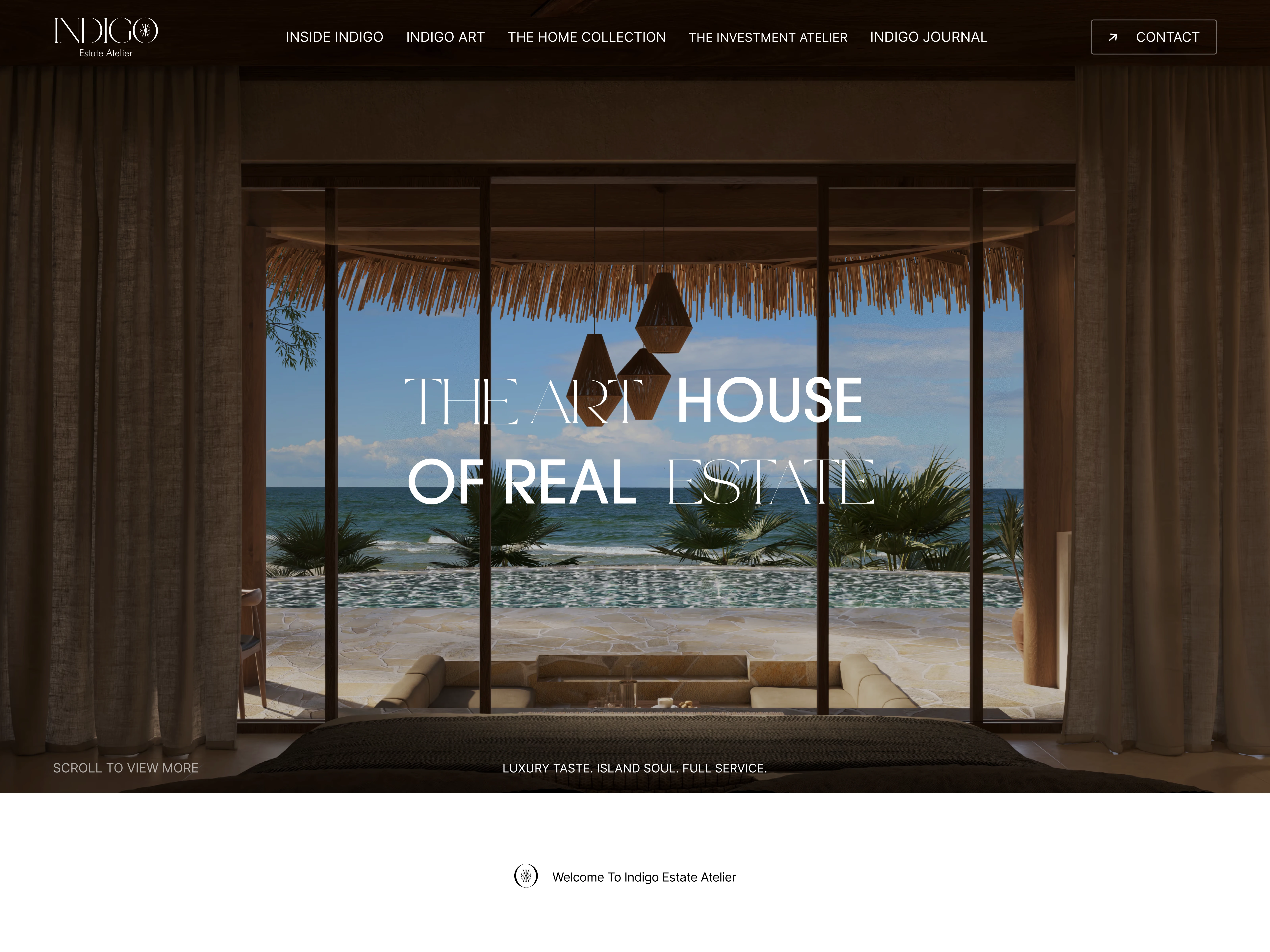 Indigo Estate Atelier is a real estate brand that curates and presents exceptional villas across Bali. The project focused on translating Indigo’s philosophy — “Every property is more than just walls; it’s a canvas for light, texture, and emotion” — into a digital experience that feels immersive, refined, and emotionally resonant.