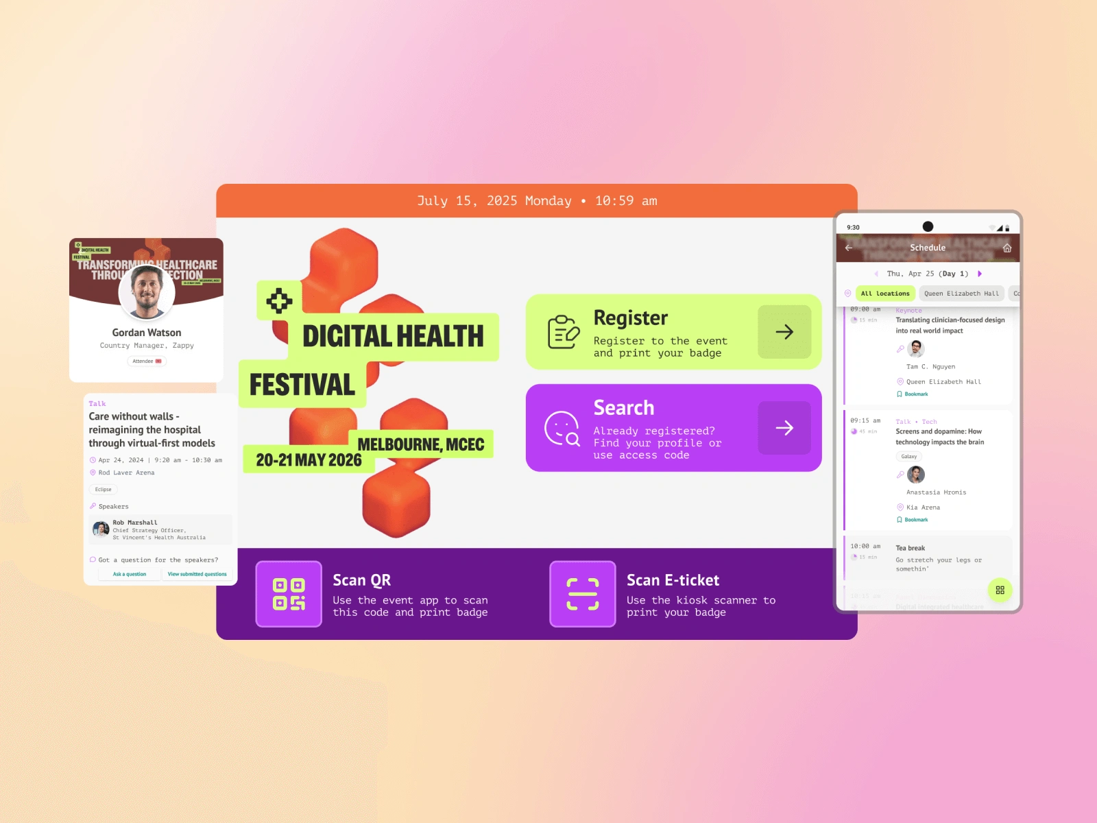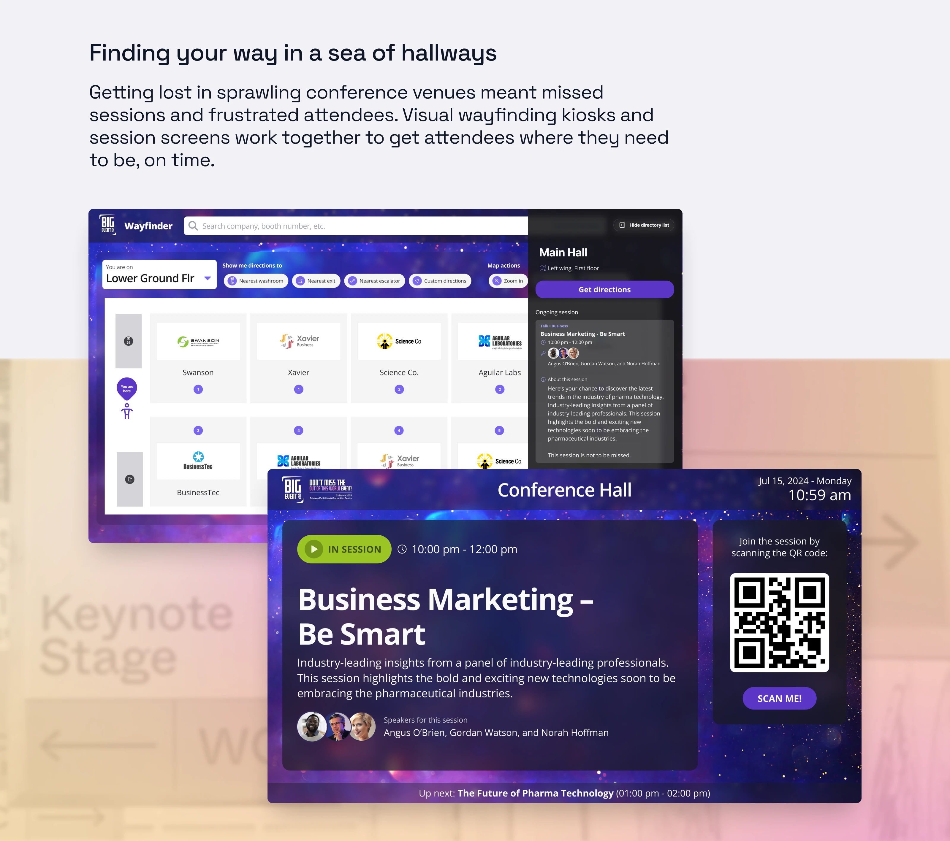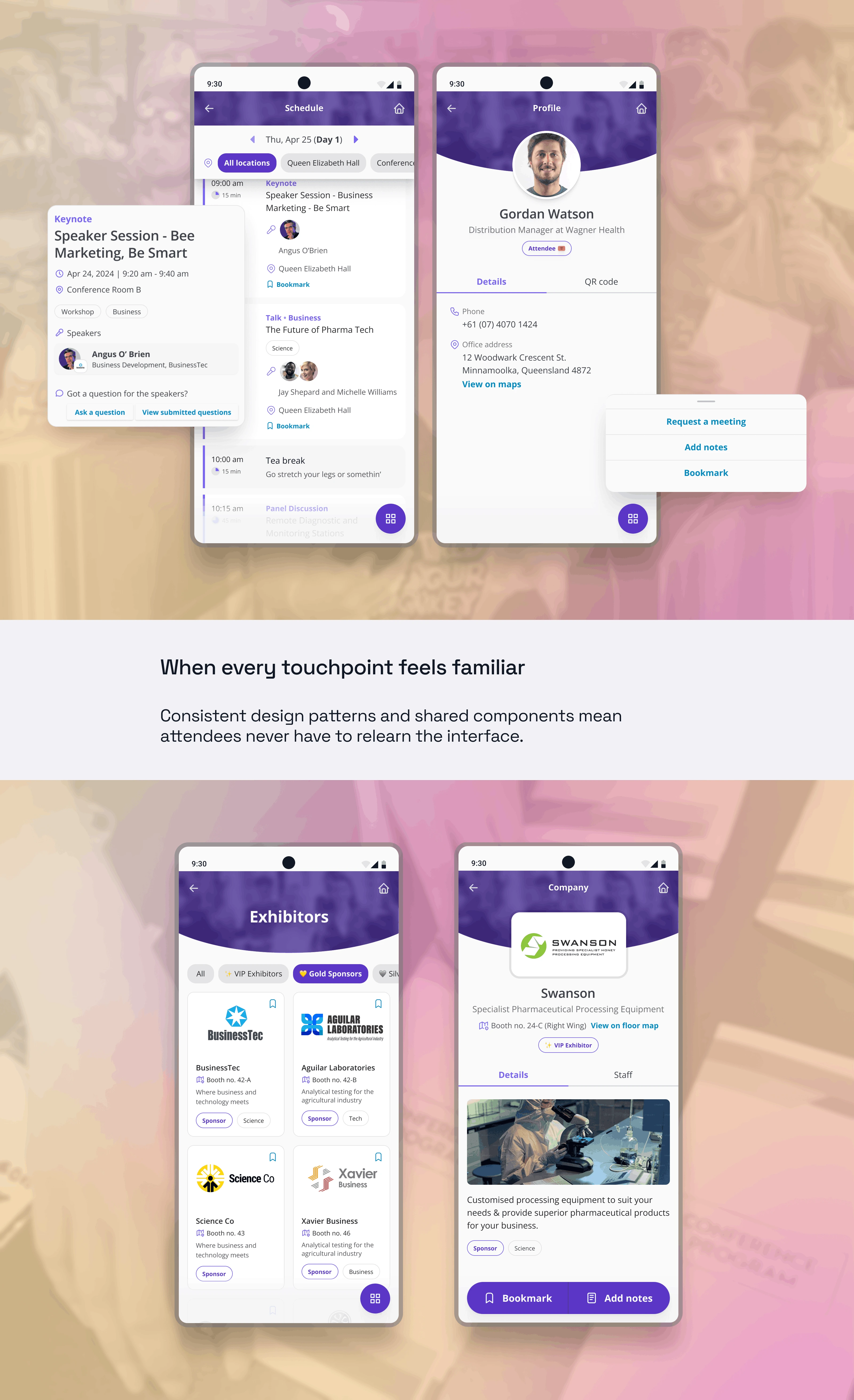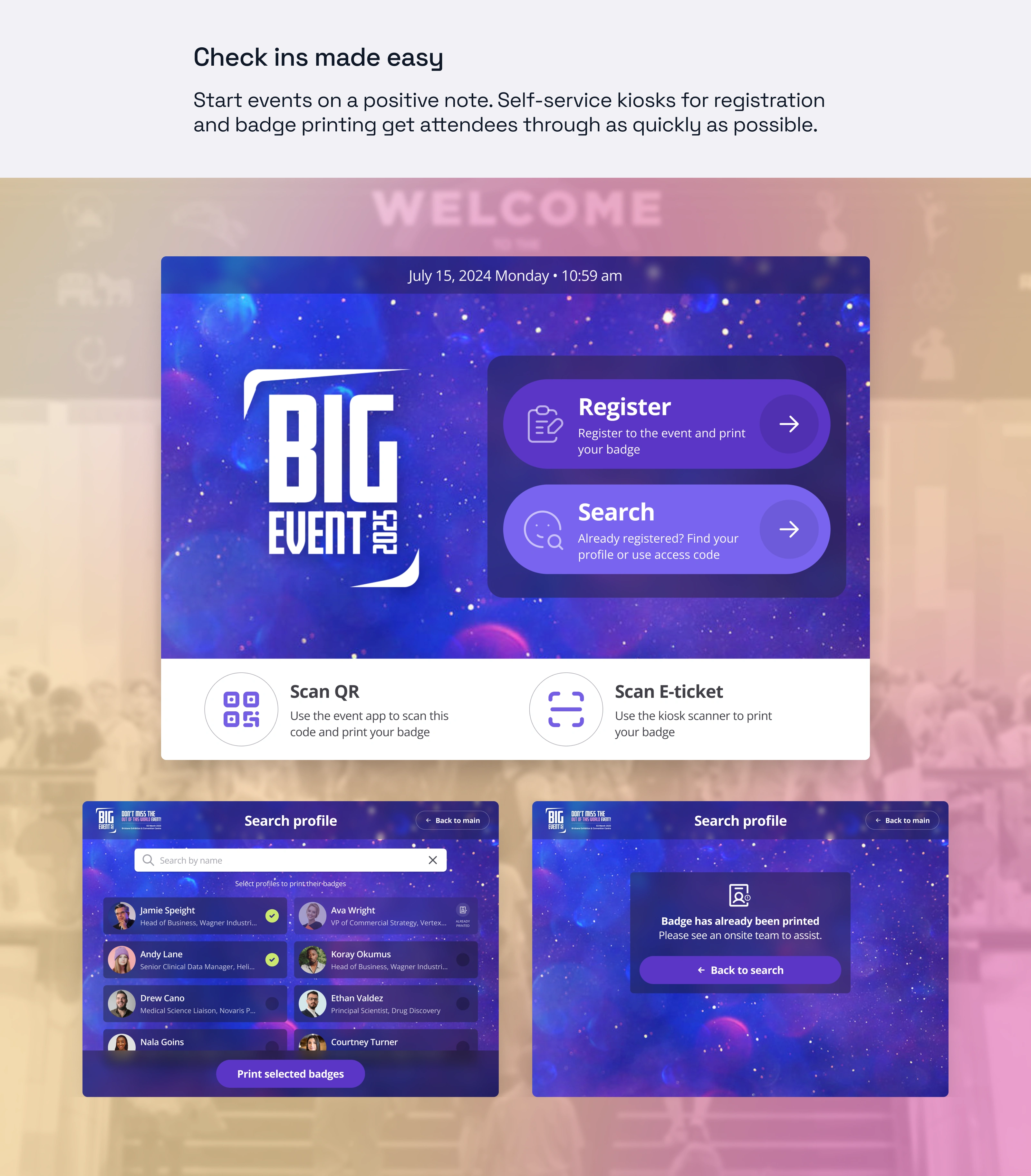 What makes these solutions work is how easily they adapt to any event's look and feel—organisers simply swap in their colours, fonts, and visuals—ensuring a cohesive, professional brand presence.