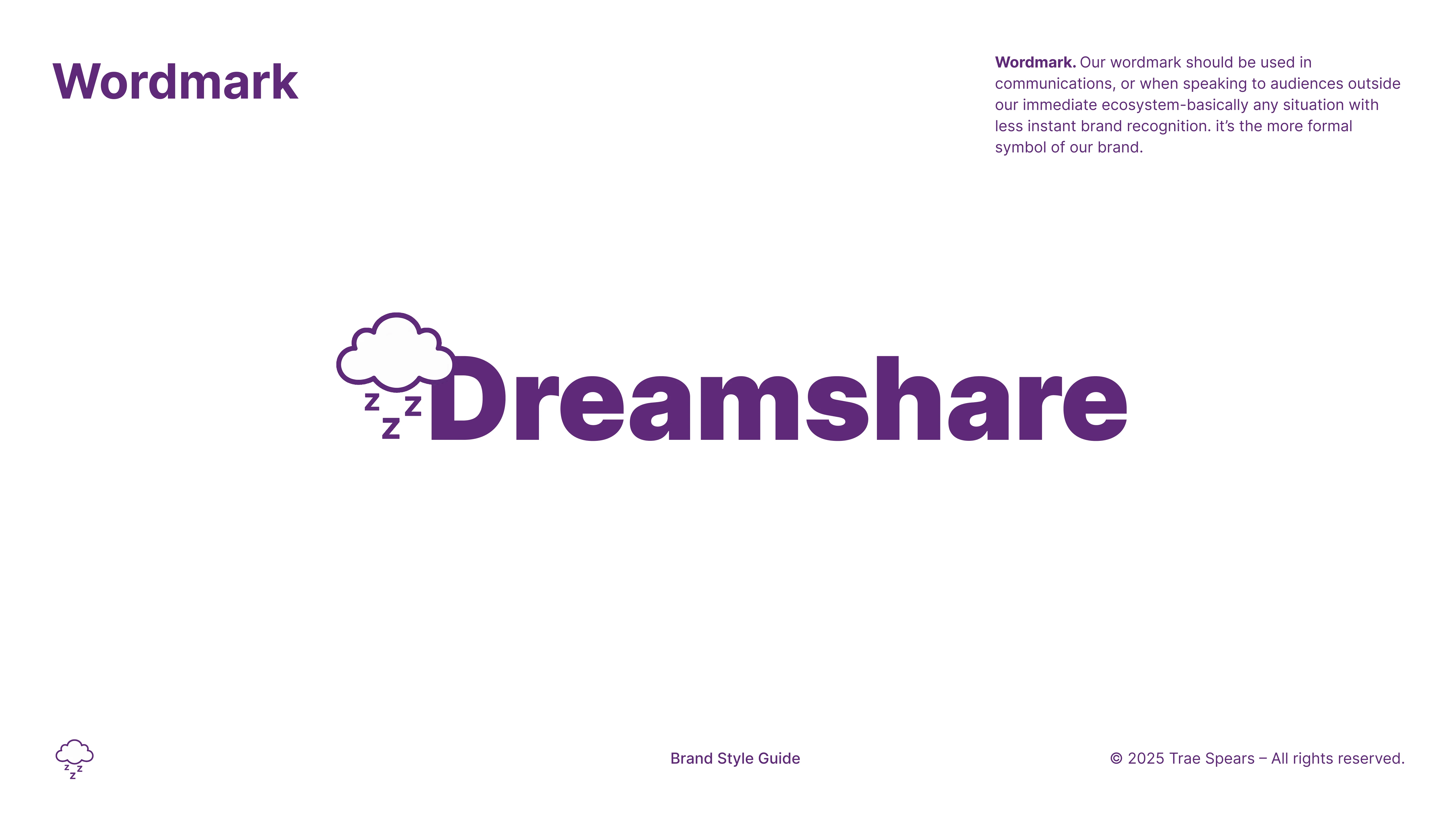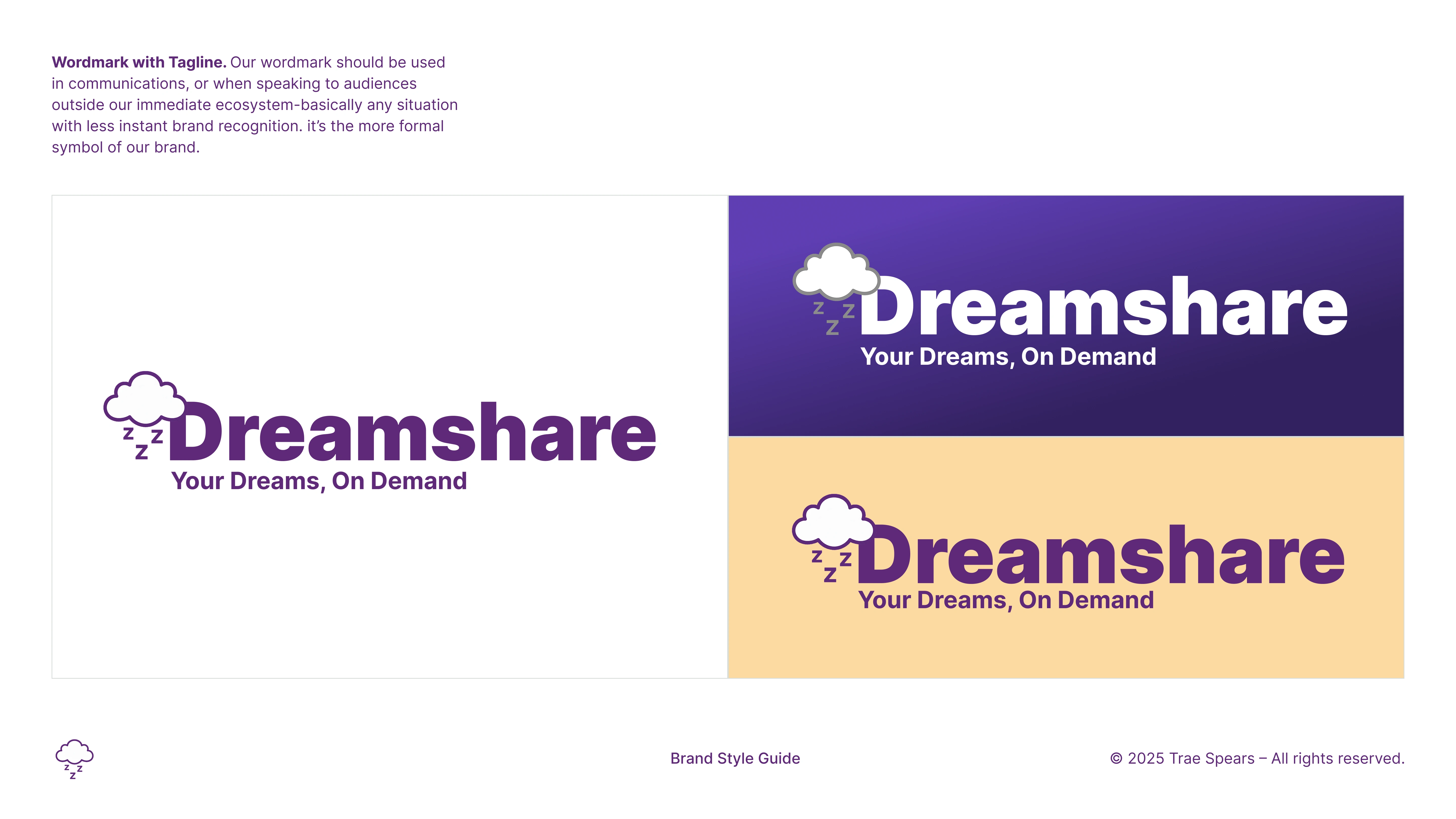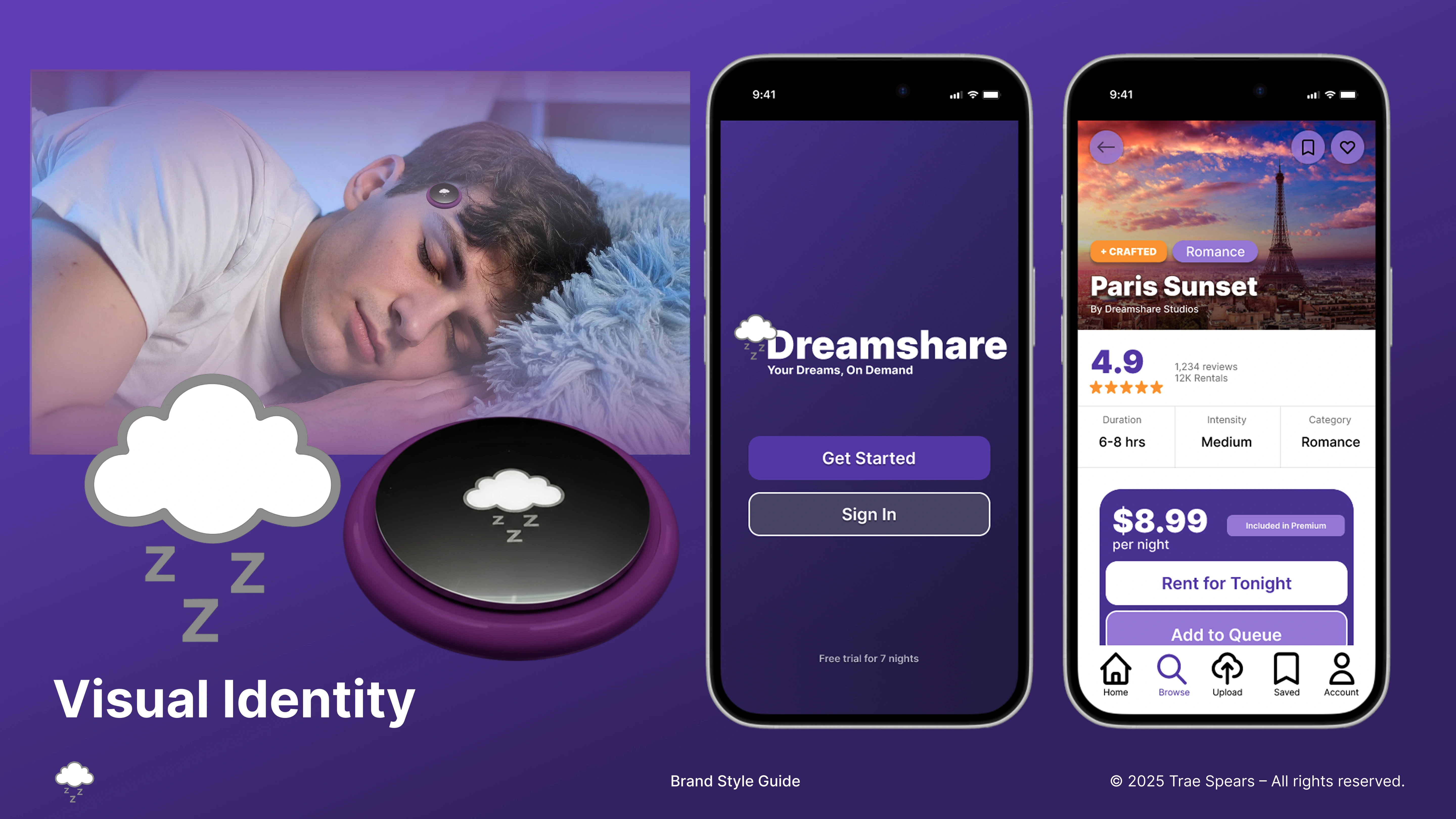 The purple-dominated palette immediately distinguishes Dreamshare from competitors while the gold accent provides a premium indicator for crafted content.