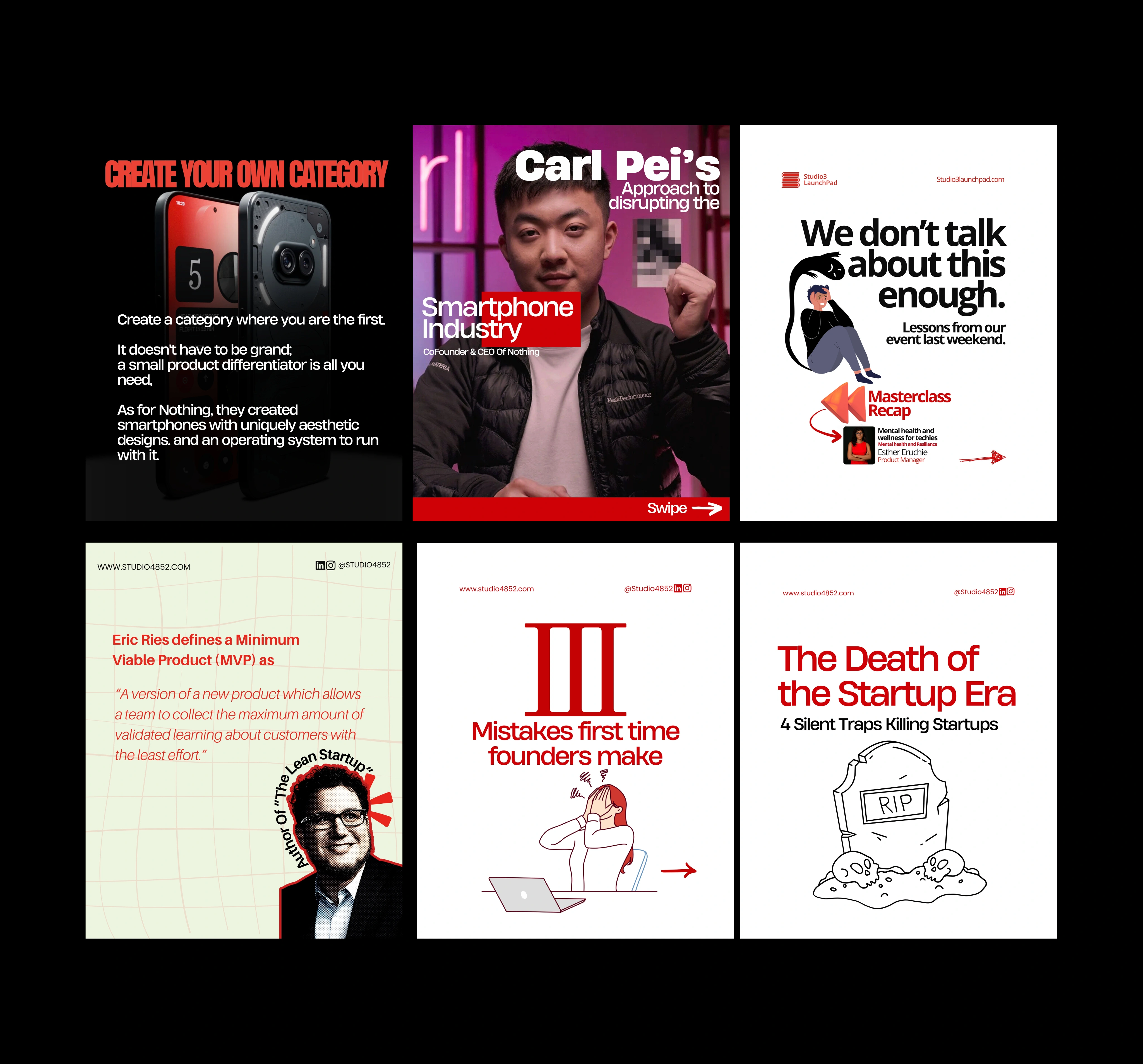 Strategic Social media & content design for an edutech startup & product studio aiming to boost engagement, awareness, and performance across social media.