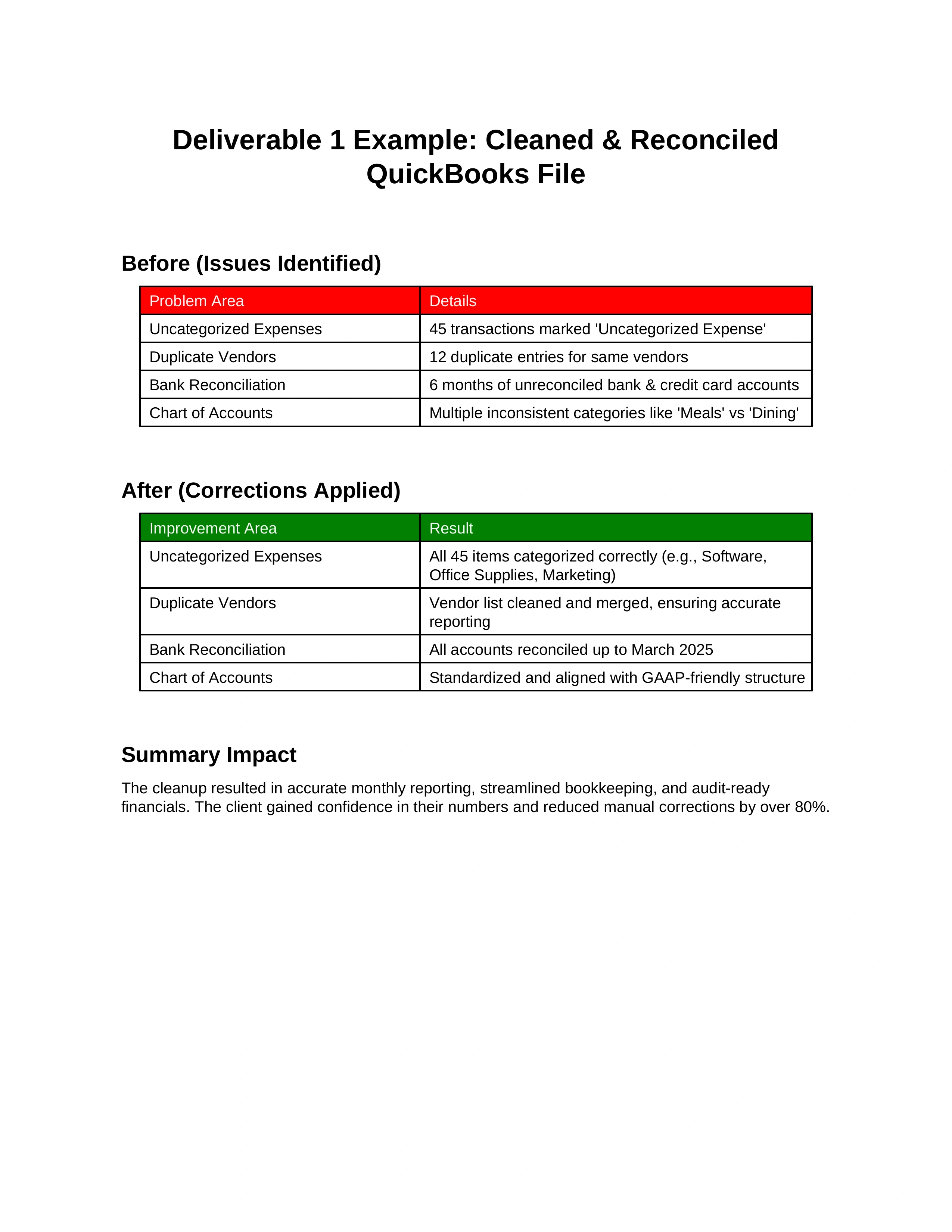 Accurate monthly reporting, streamlined bookkeeping, and audit-ready financials. Client reduced manual corrections by over 80%.