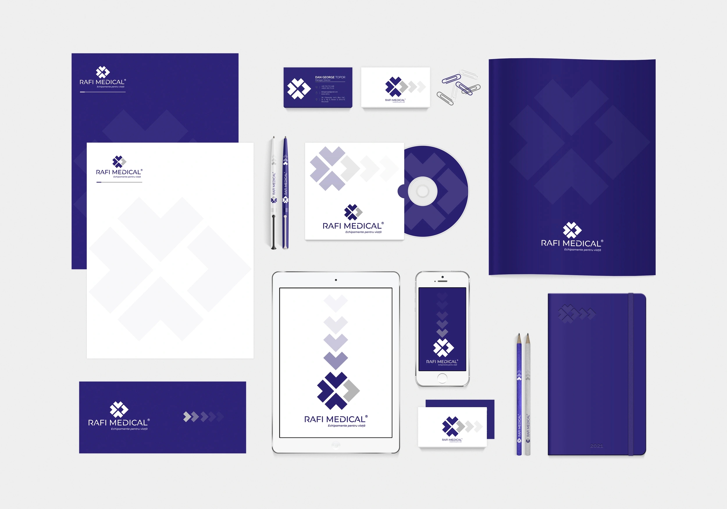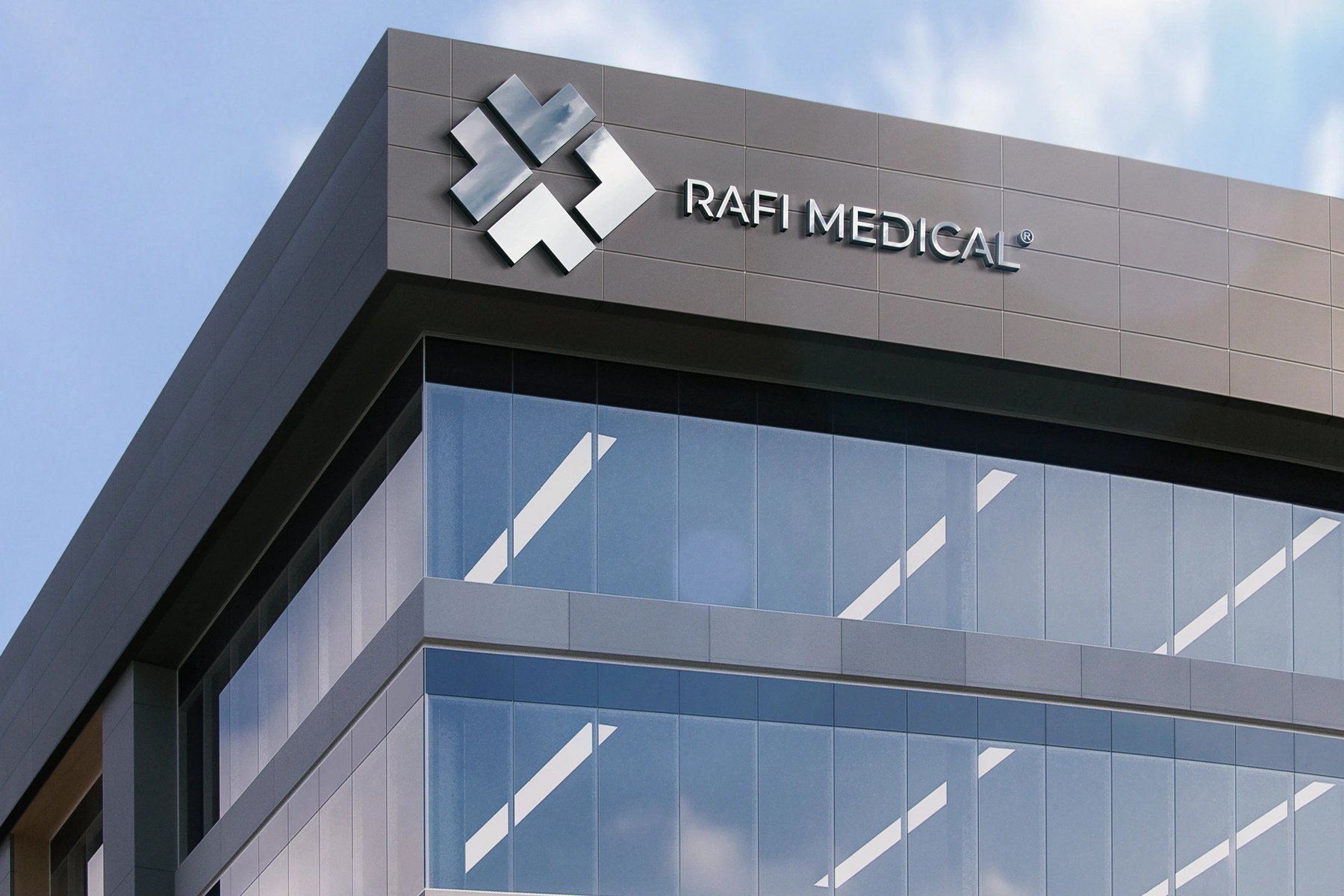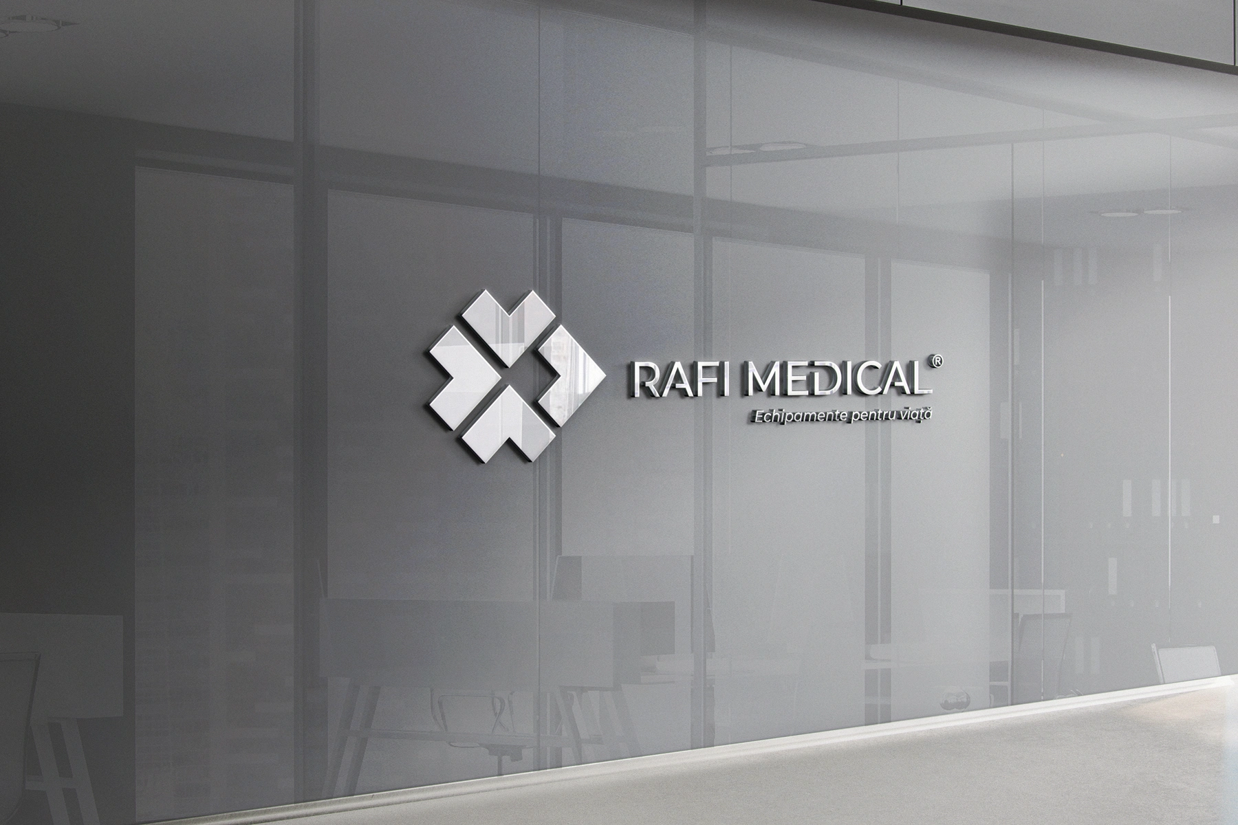 Minimal logo design for Rafi Medical, reflecting precision, trust and professionalism in the medical equipment industry.