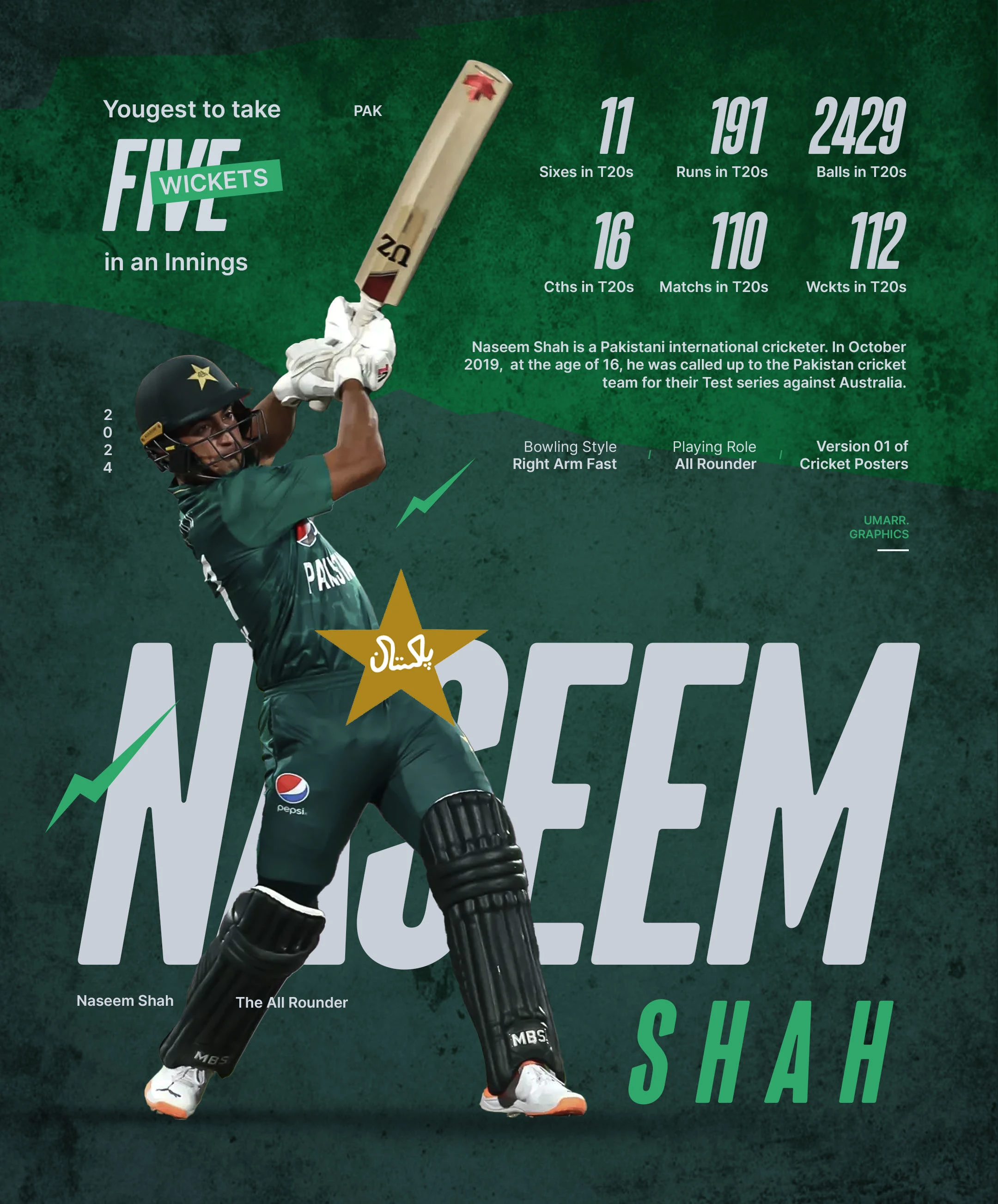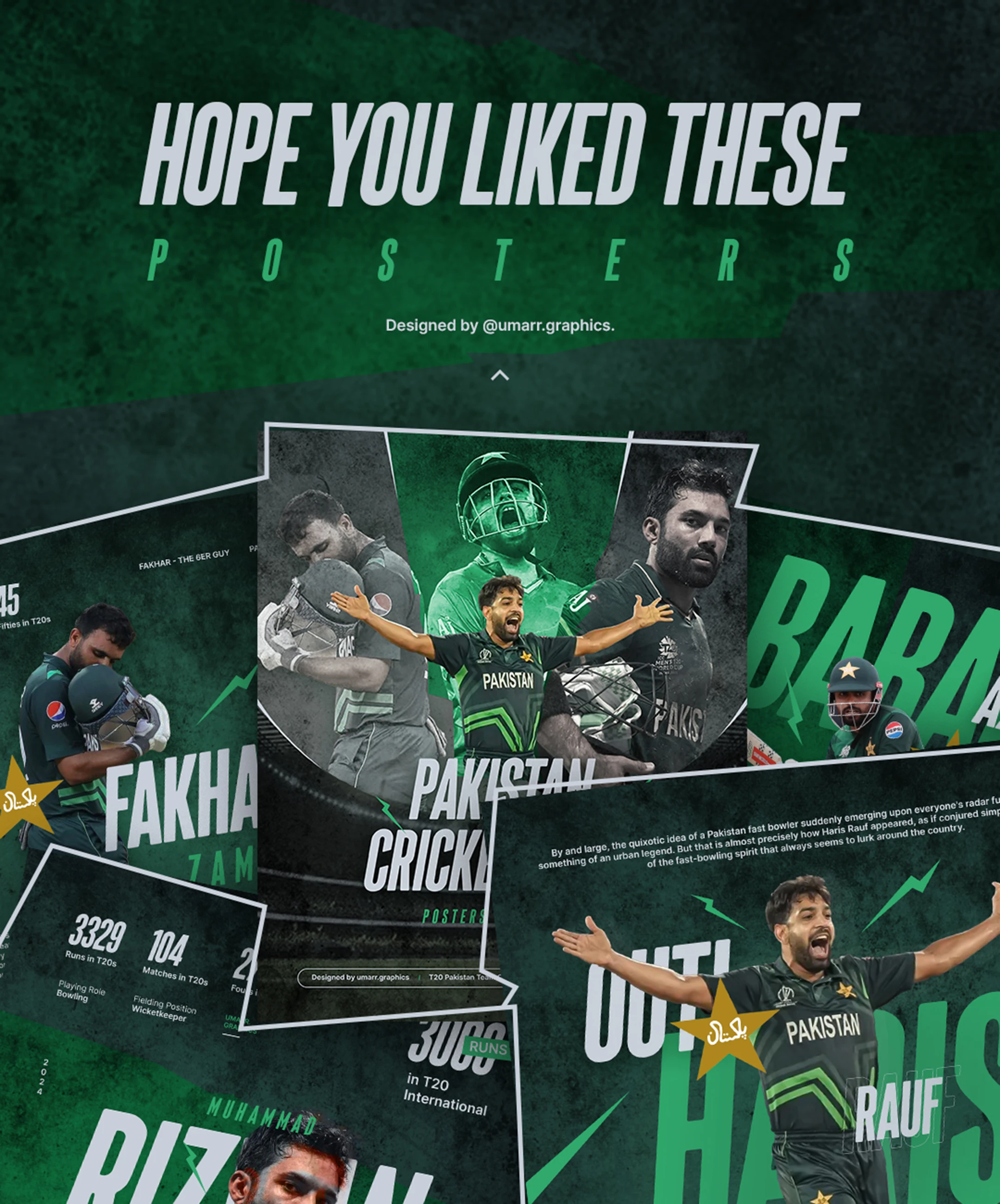 Check out these stunning posters of Pakistan Team players, highlighting the key stats of each star! 🎯