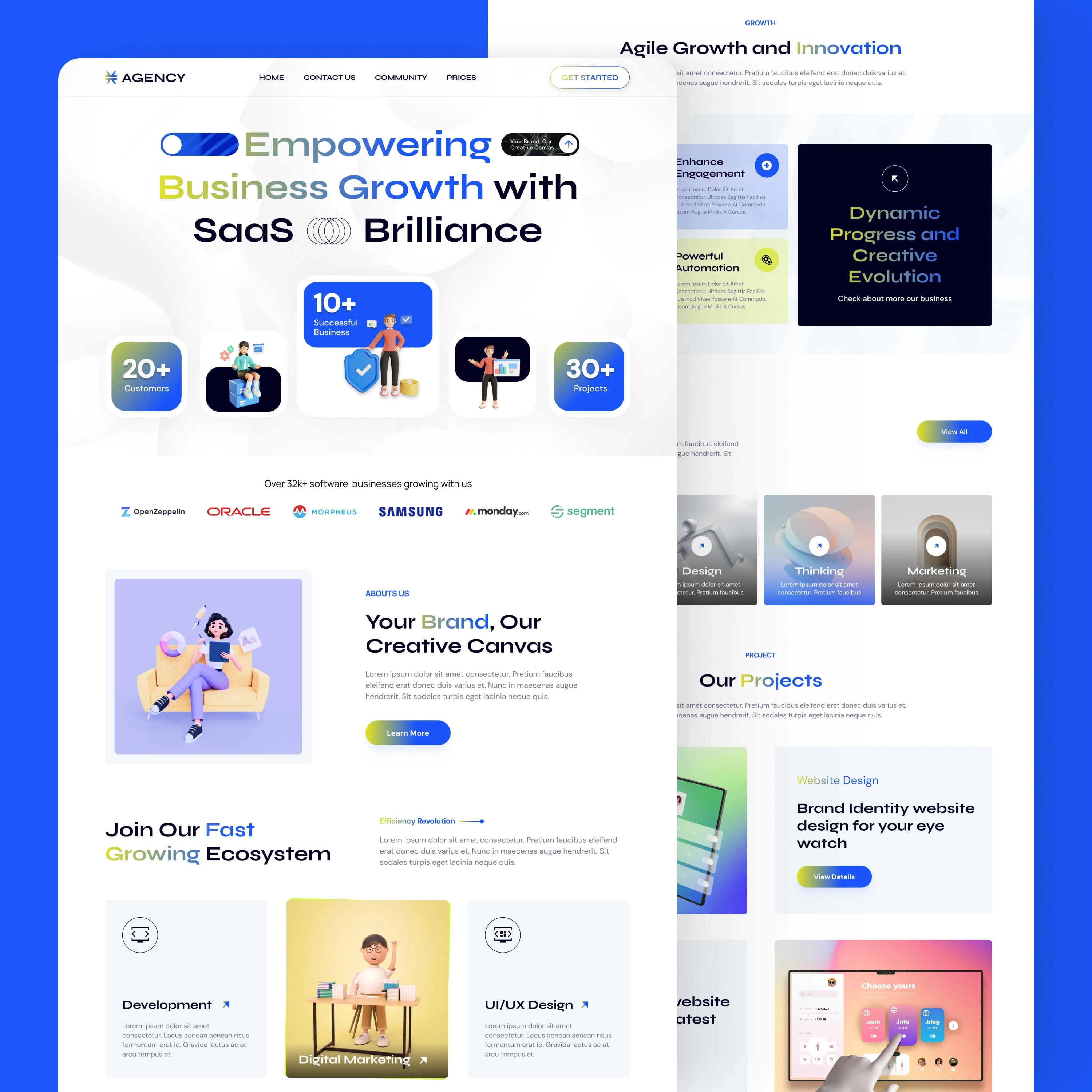 Presenting my latest design for the Agency SaaS landing page a seamless blend of creativity and functionality from top to bottom.