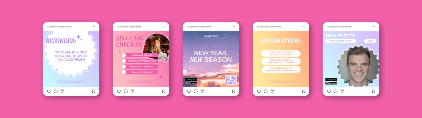 Own Your Journey is a podcast that takes a look into the untold stories and life lessons its remarkable guests. The podcast needed a logo, cover and social media that felt uplifting and exciting in order to entice listeners in a competitive landscape.