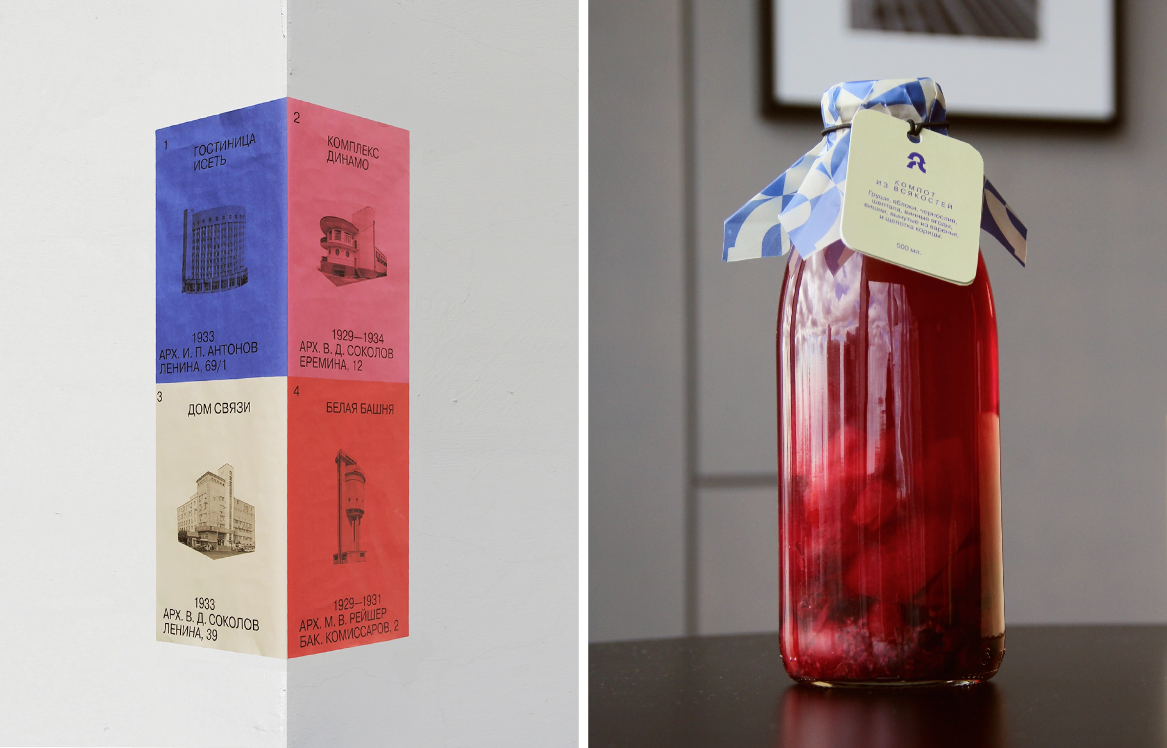 We combined bright colors and geometric shapes characteristic of the Avant-garde movement with modern neo-grotesque typography, featuring the iconic form of the region’s most famous constructivist building as the main graphic element.