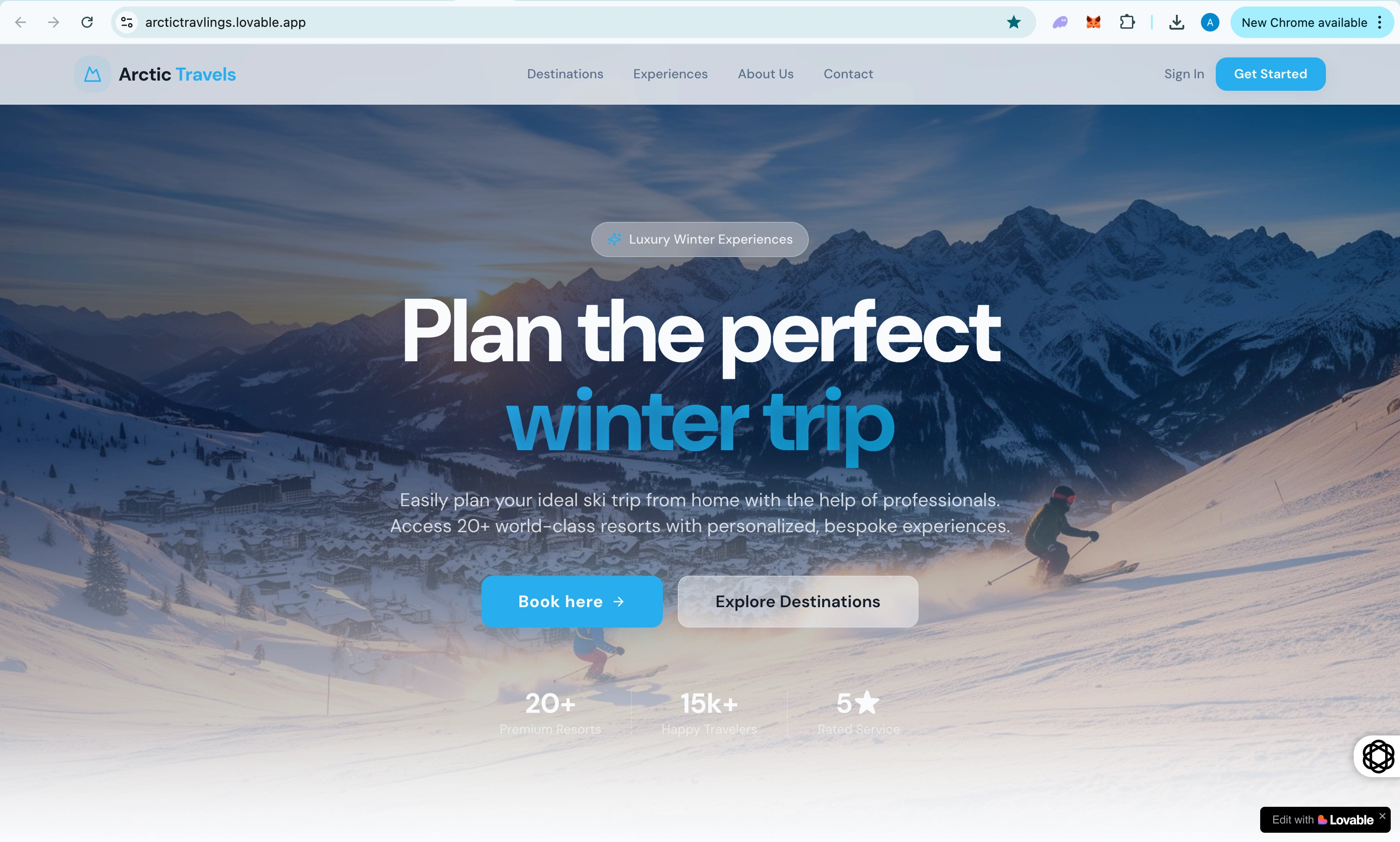 Arctic Travels is a luxury ski travel platform that lets you plan, customize, and manage your perfect winter trip all in one place.