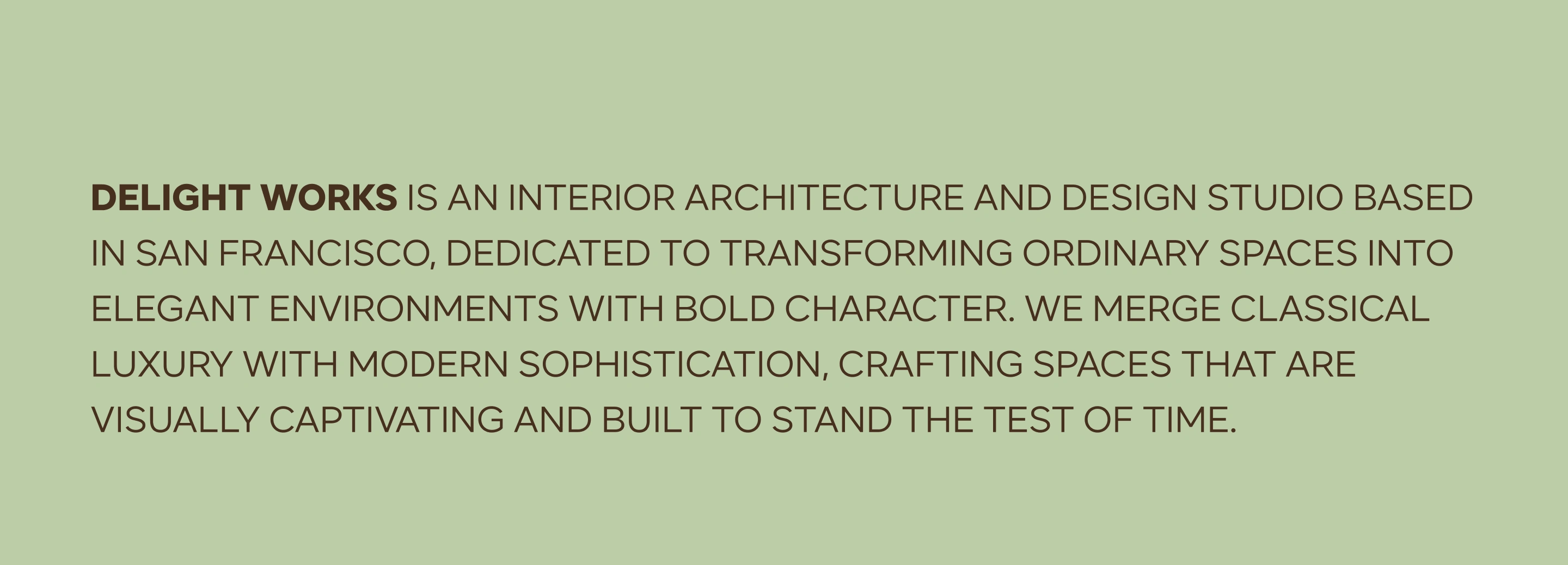 Delight Works is an interior architecture based in California, dedicated to transforming ordinary spaces into elegant environments with bold character.