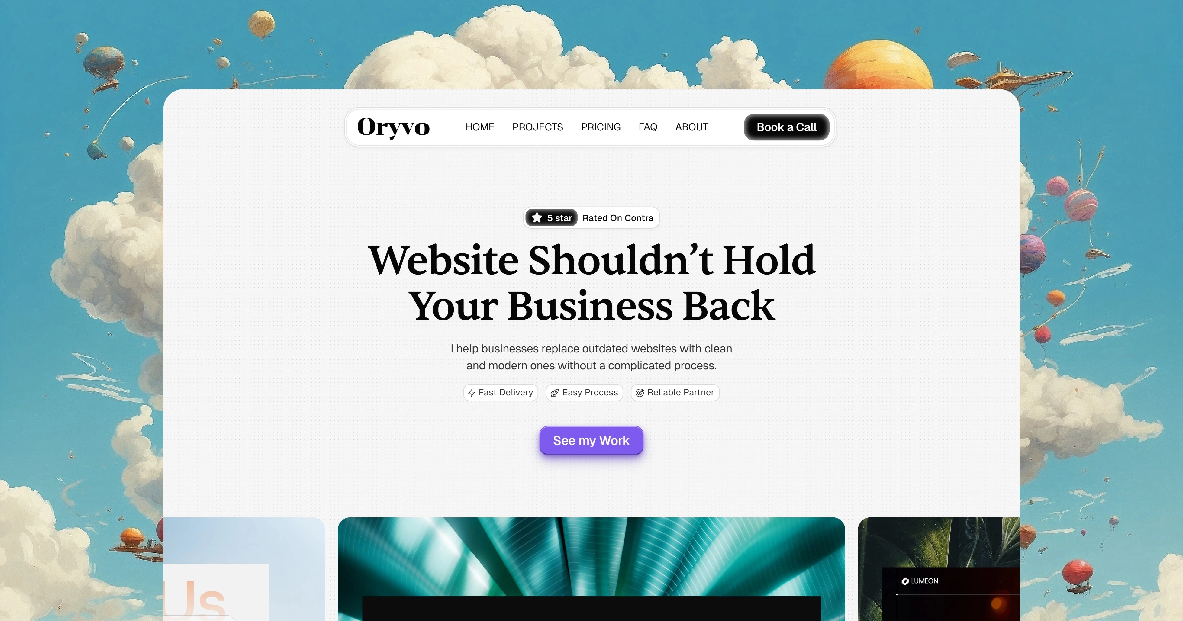 Oryvo is my personal solo-agency website. I designed and built the entire landing page myself using Framer.