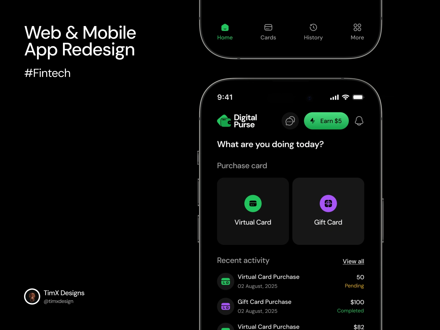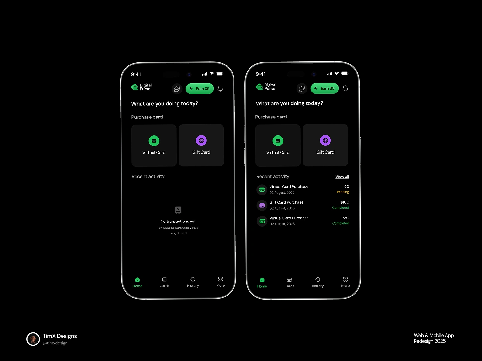 Redesign of the Digital Purse interface transformed a cluttered, inconsistent layout into a modern, user-centric experience.