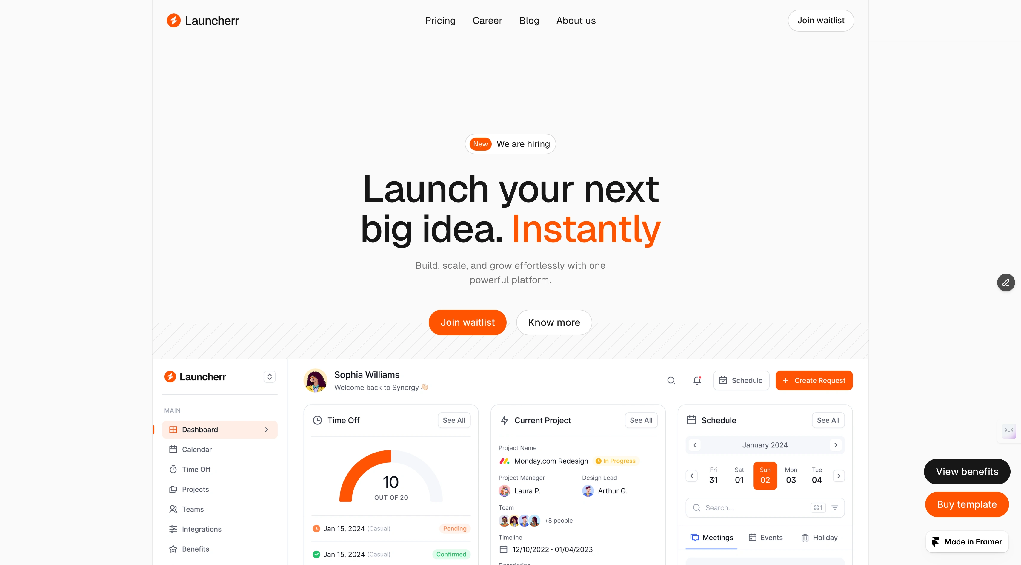 Launcherr is a Framer website template for SaaS founders who want to launch fast. It blends clean design, smart structure, and conversion-focused sections built to turn early visitors into users from day one.