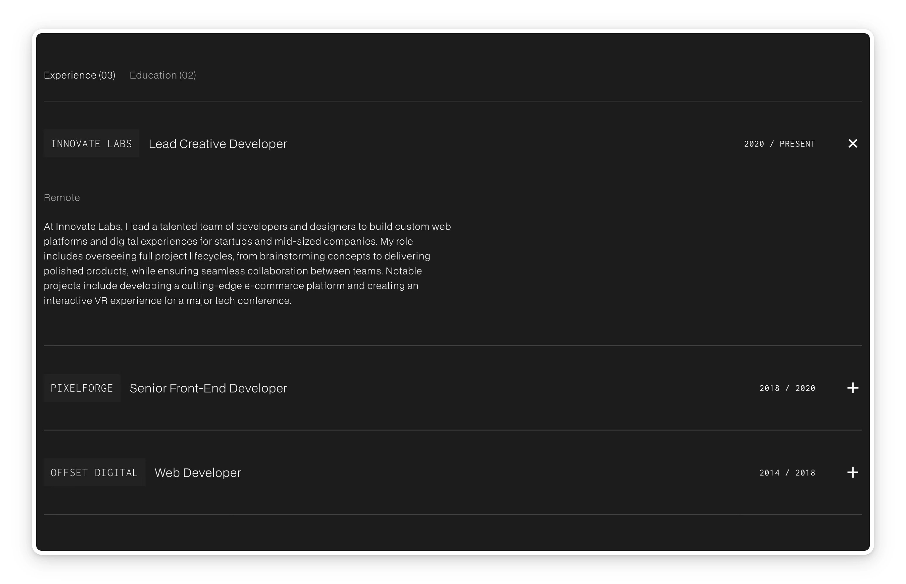 Function was developed as a flexible, creator-focused foundation — balancing minimalism with practical functionality. From CMS-driven project templates to responsive layouts, it demonstrates a streamlined workflow for building immersive, modern websites.