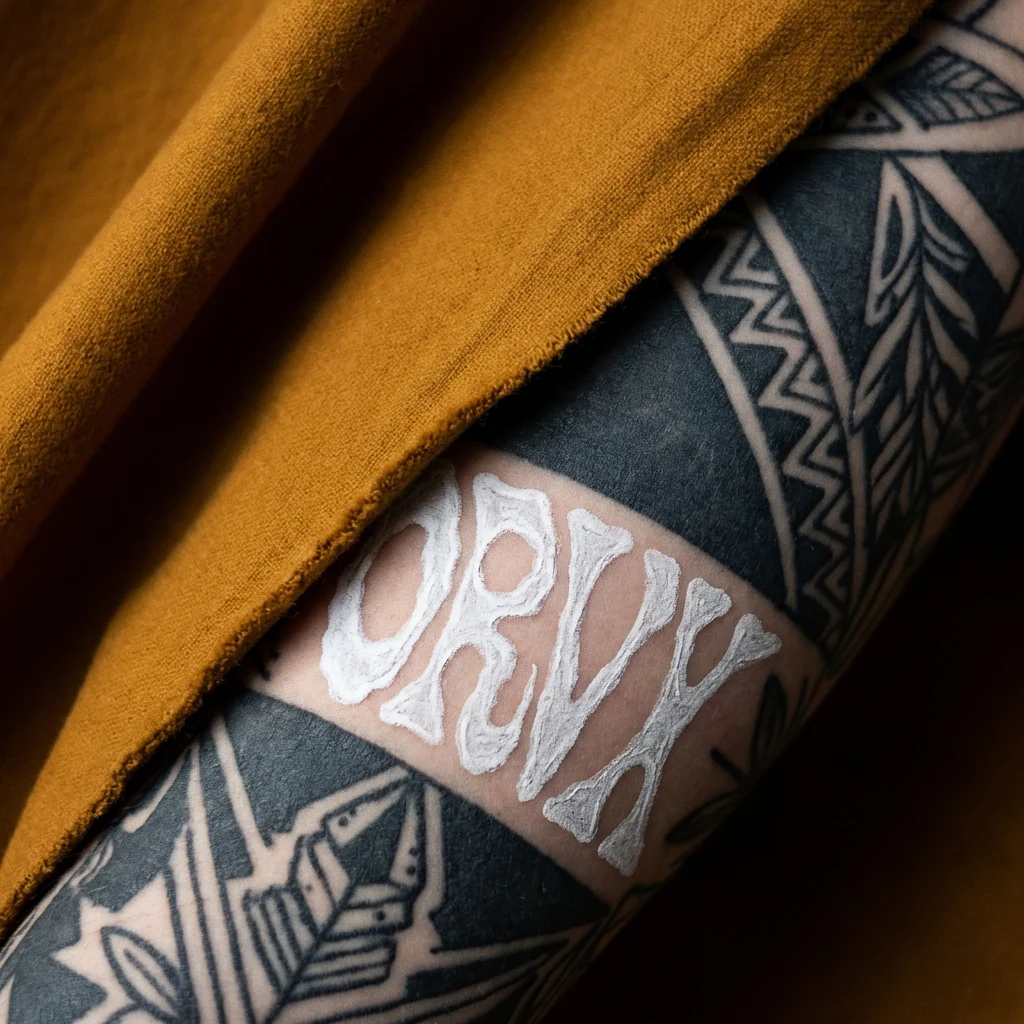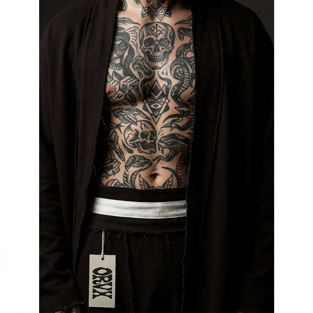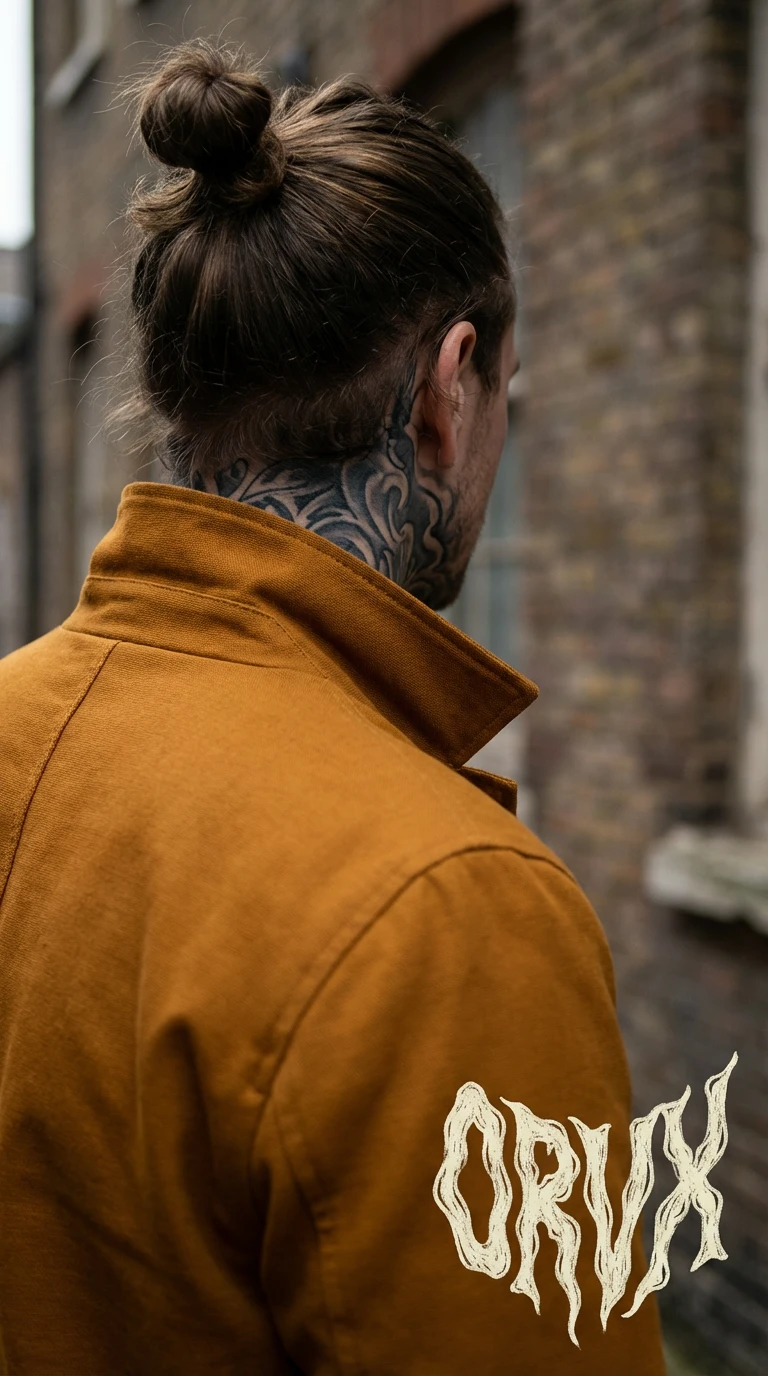#1c1410 on light grounds. Chalk #f2ede8 on dark grounds and directly on skin. Ochre #c8782a and burnt sienna #9e4a2e for campaign applications on heavily saturated surfaces.#c8782a, burnt sienna #9e4a2e, near-black #1c1410, chalk #f2ede8. Every colour is either a skin tone pushed to its extreme or the colour of something permanent pressed into skin — tattoo ink black, the particular warmth of healed ink against pale flesh, the chalk of a flash sheet. The palette was not designed. It was observed.
