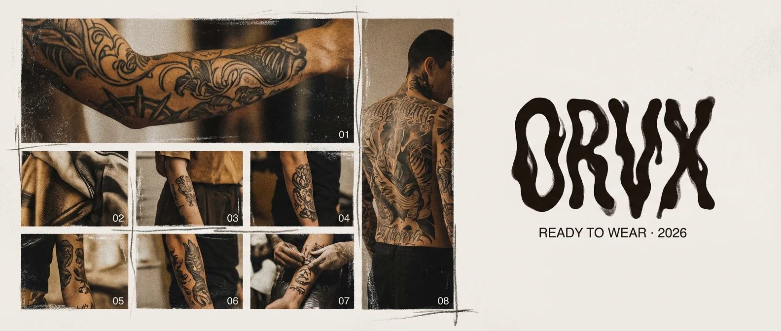 Developed a visual identity for the fashion brand ORVX focusing on body art and garments as equal surfaces.