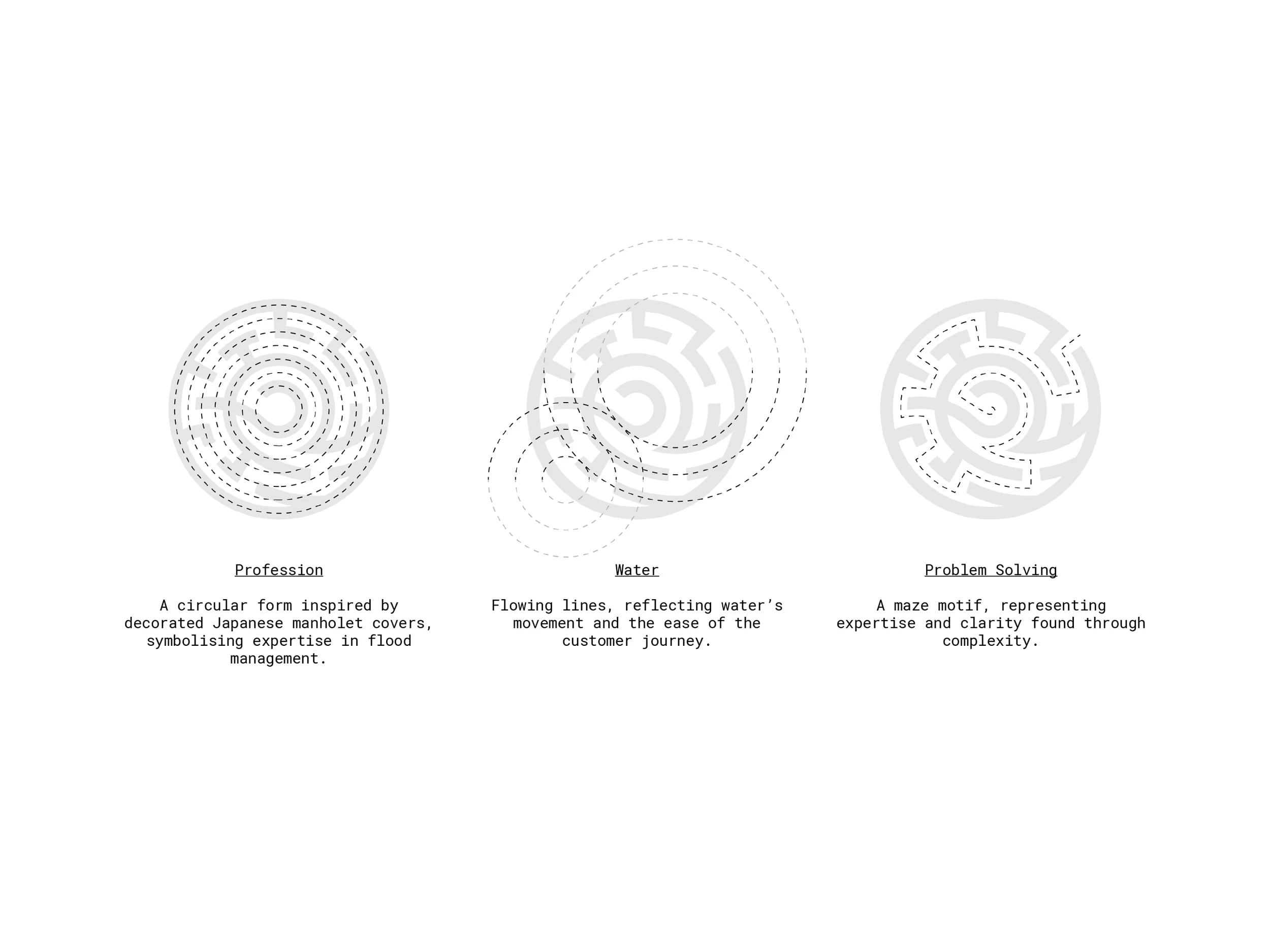 At its core sits a maze-like structure, echoing the idea of a jigsaw. Flood risk and drainage design involves navigating regulations, site constraints, and fixed boundaries. The maze represents moving methodically through complexity with logic and patience.