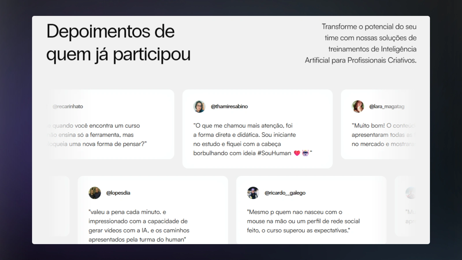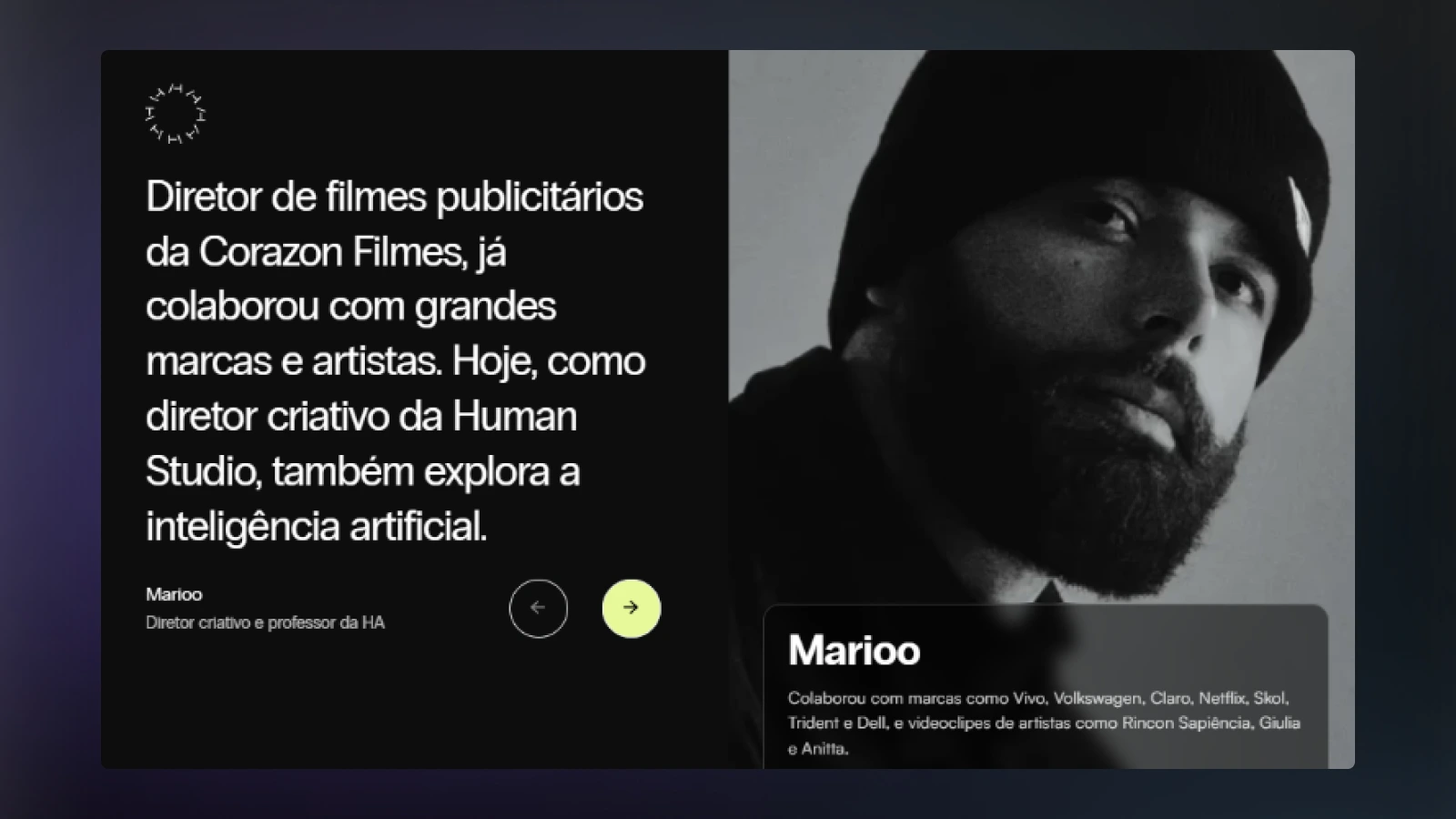 Human AI is an international reference in creative direction and artificial intelligence applied to education. In partnership with GG Studio, the brand consolidated its digital presence with impactful pages, a robust CMS system, and intelligent components — all developed in Framer with extreme visual refinement, designed to scale Human Academy with performance and elegance.