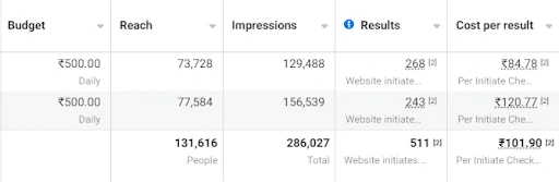 Custom Audience: We also used some of our audience which we got from our website: Website, Add to Cart last 90 days, Initiate checkout last 90 days, Page Views 180 days, View content last 90 days, Website Visitors 90 days, Engagement – Instagram, and Instagram Audience 180 days.