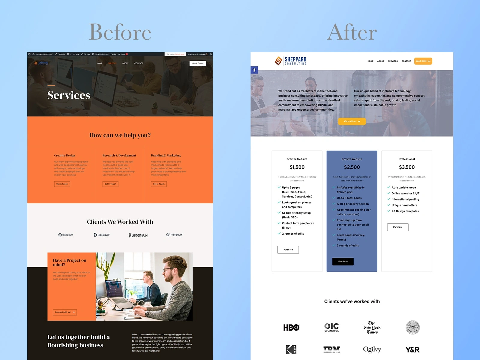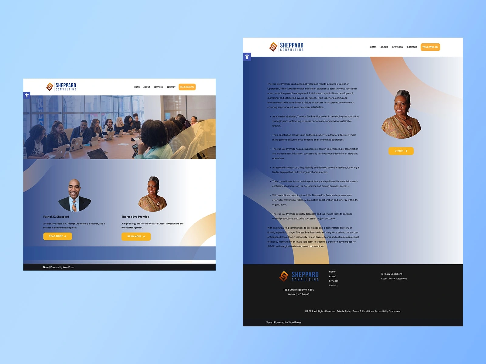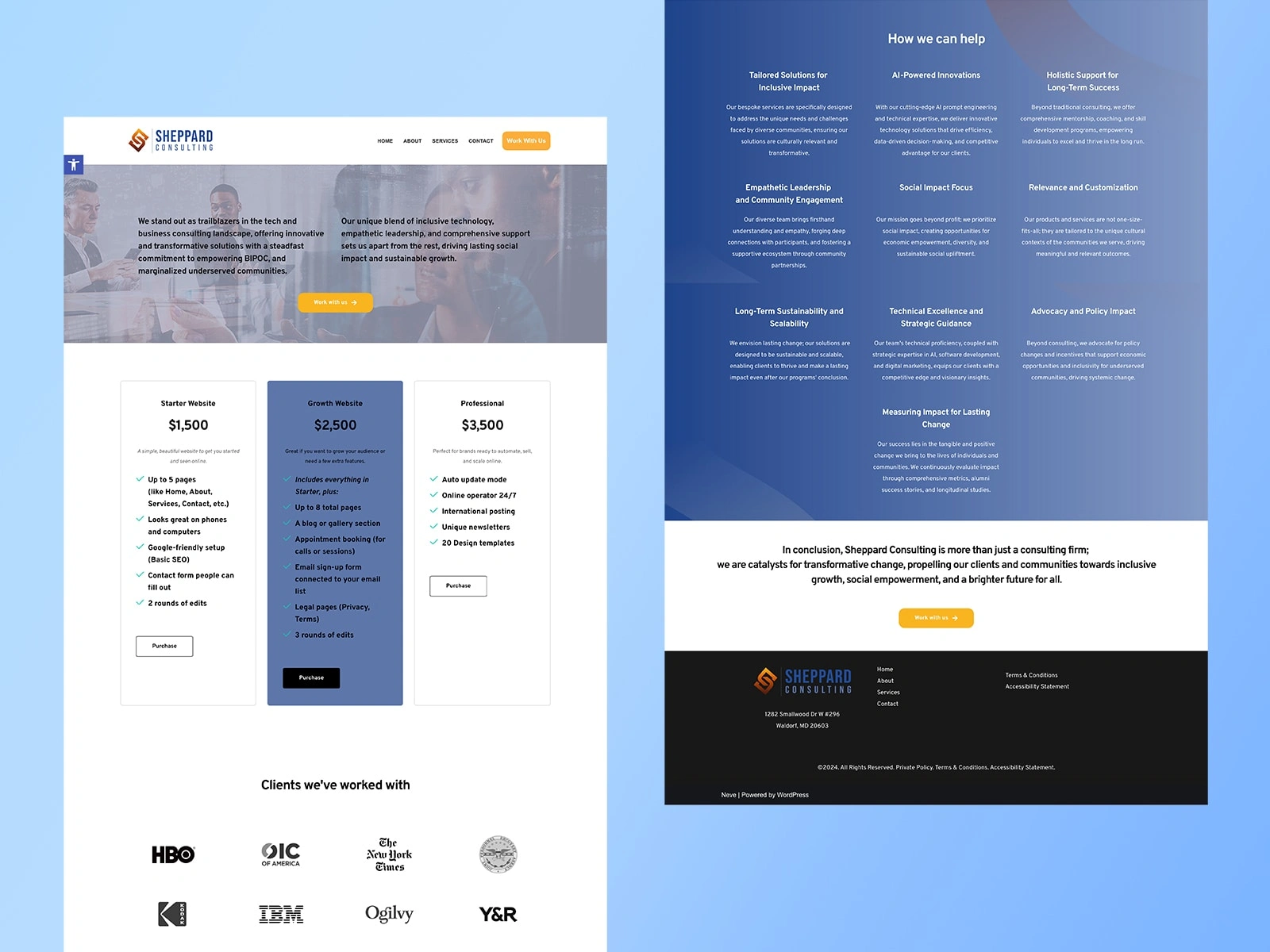 Website design for Sheppard Consulting, a company dedicated to connecting technology and business solutions to empower underserved, marginalized communities.