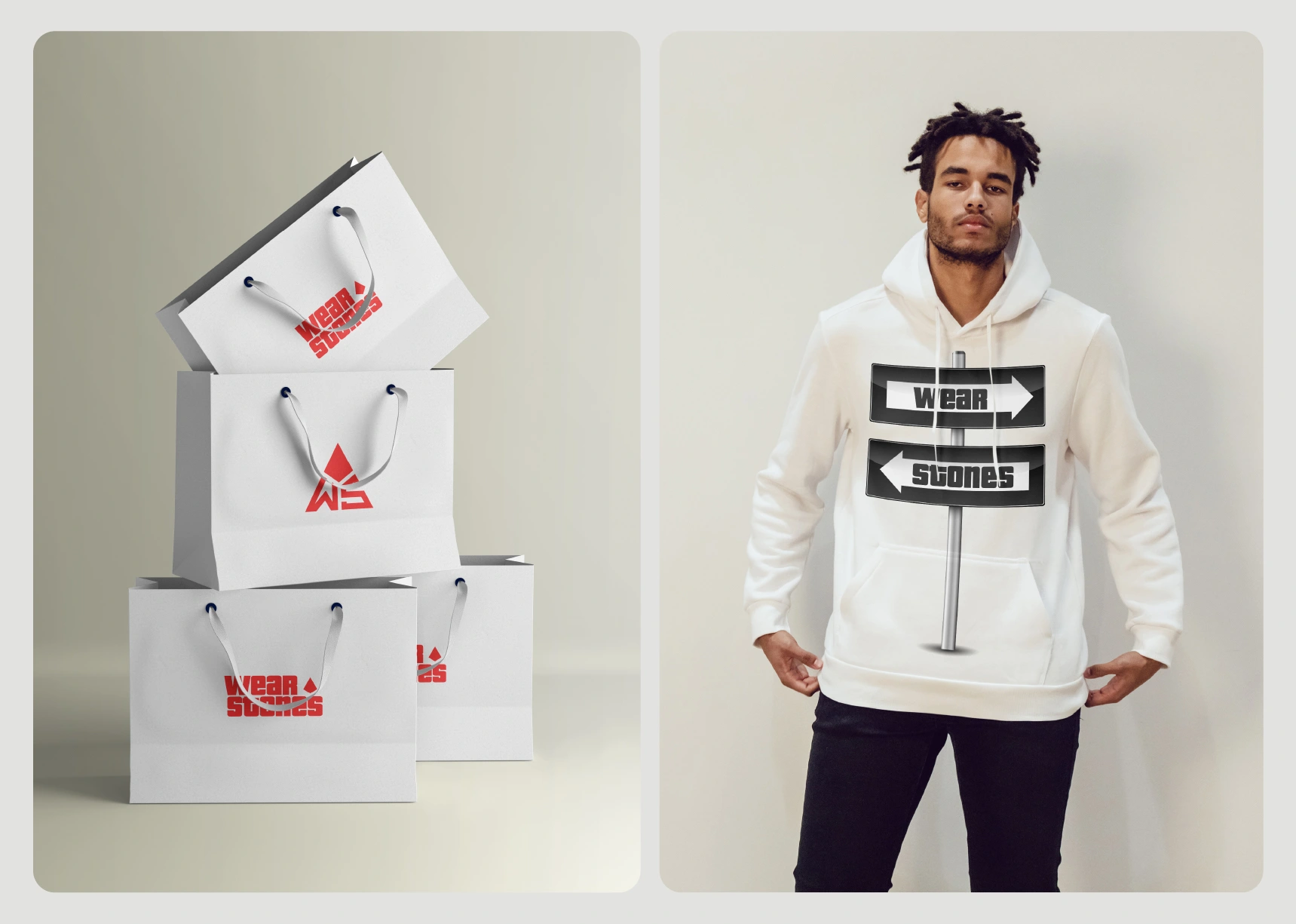 Brand identity for Wear Stones—a versatile fashion label and multi-brand retailer offering curated, high-quality clothing from select renowned designers.