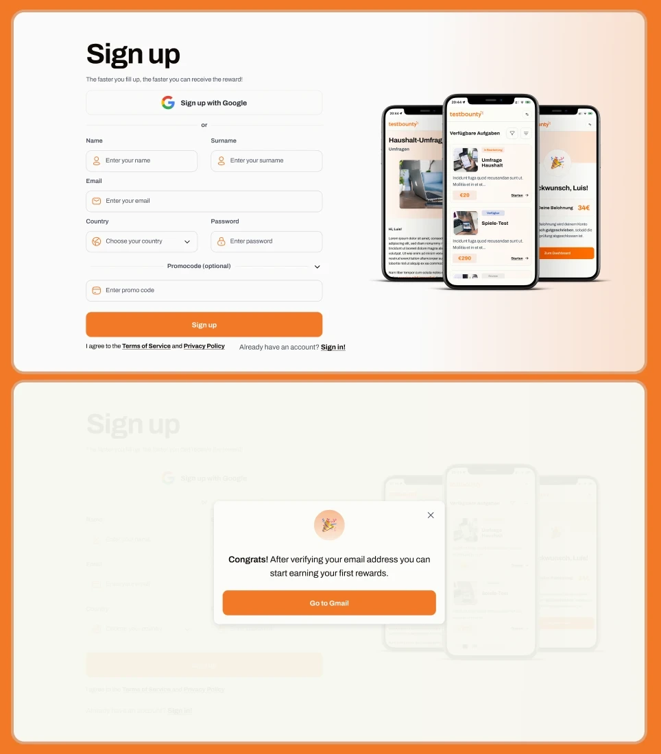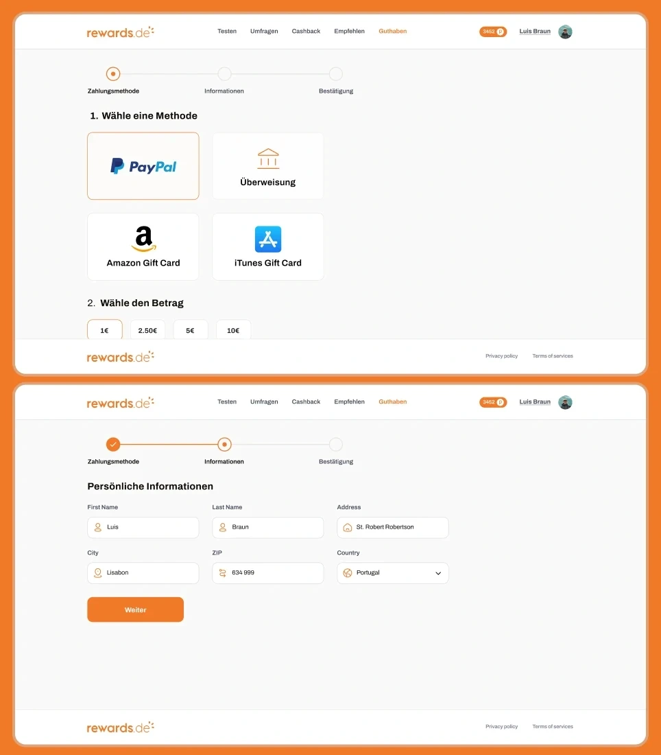 MVP screens for a cash provider platform targeting users in Germany, Austria, and Switzerland that evolved into a fully developed web and mobile application.