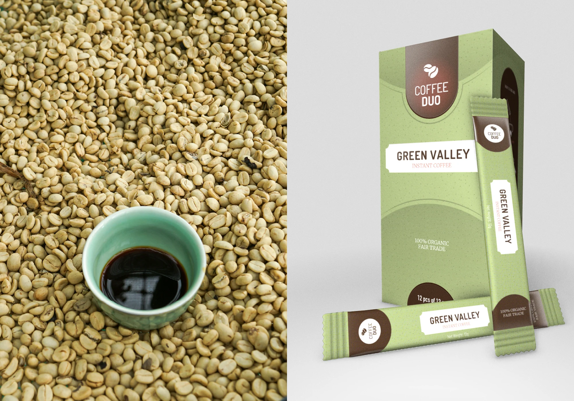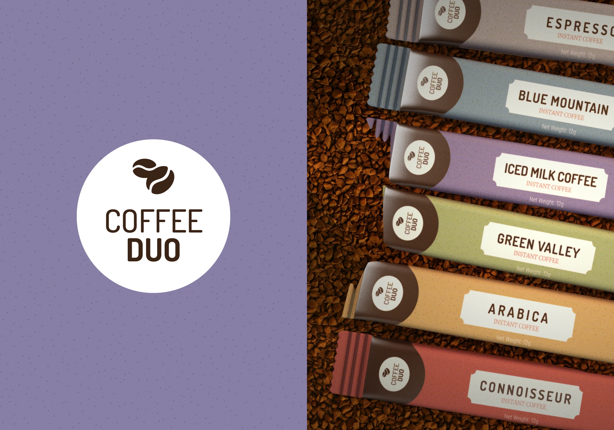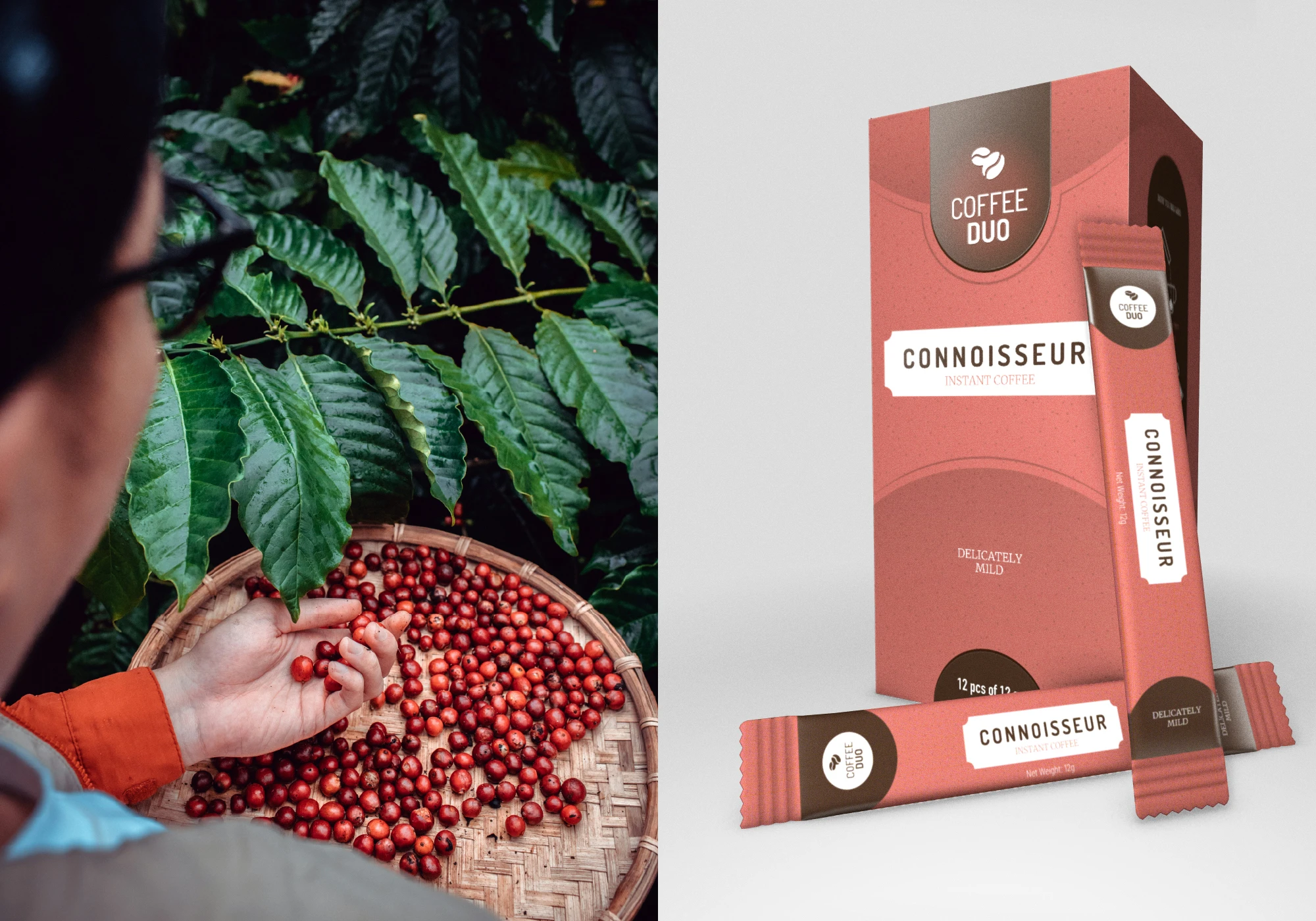Identity & Symbols: I developed a minimalist logo mark consisting of two coffee beans. Placing one bean horizontally and a larger bean at a 45-degree angle, created a sense of movement and balance, while being a subtle hint at the rolling mountains, and curved pathways found on the clients primary plantation in Vietnam.