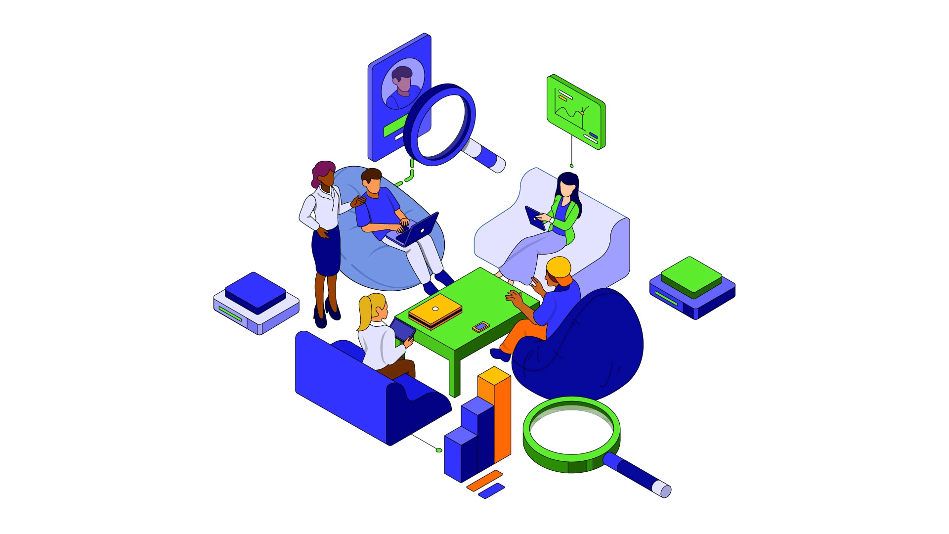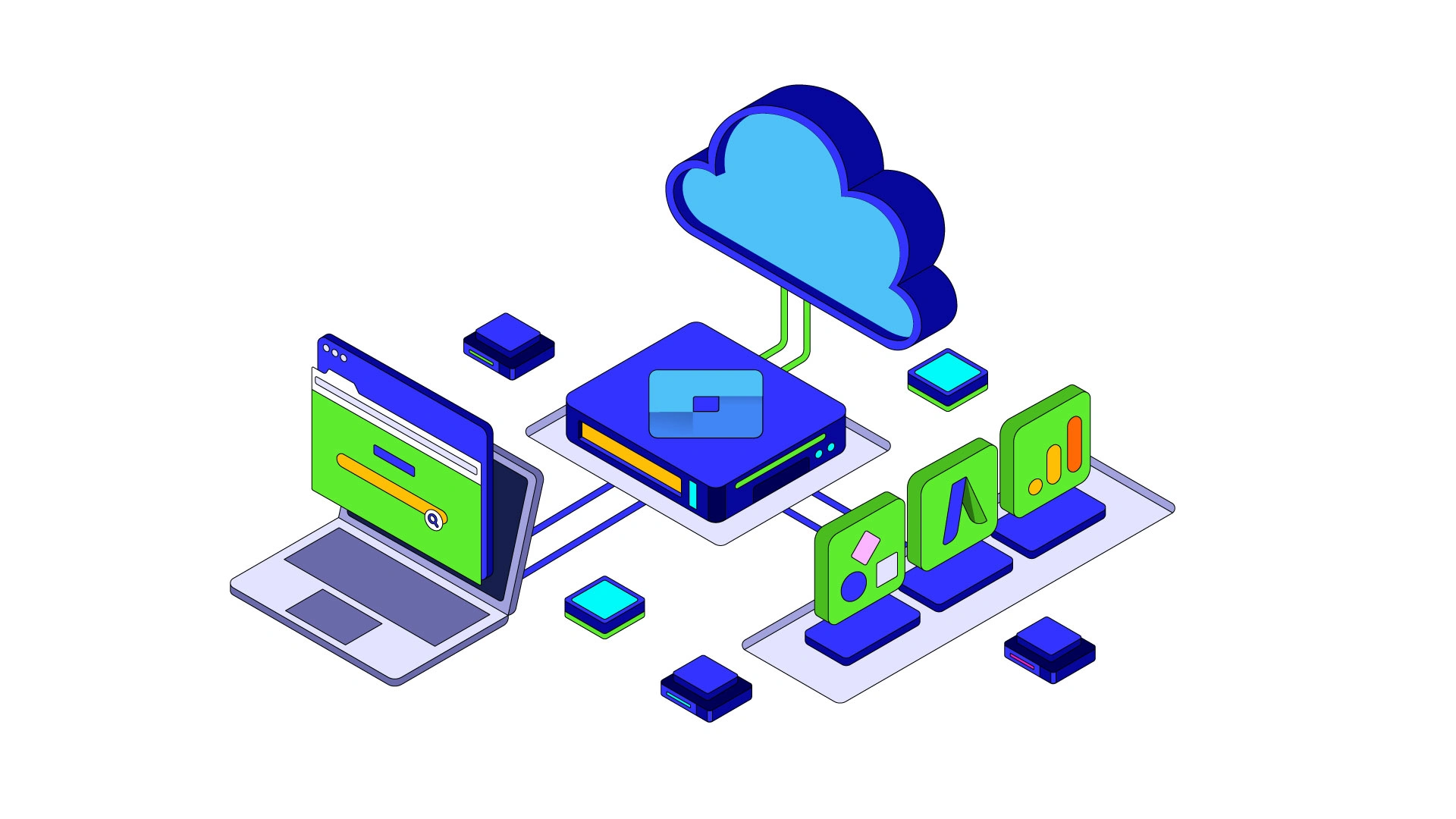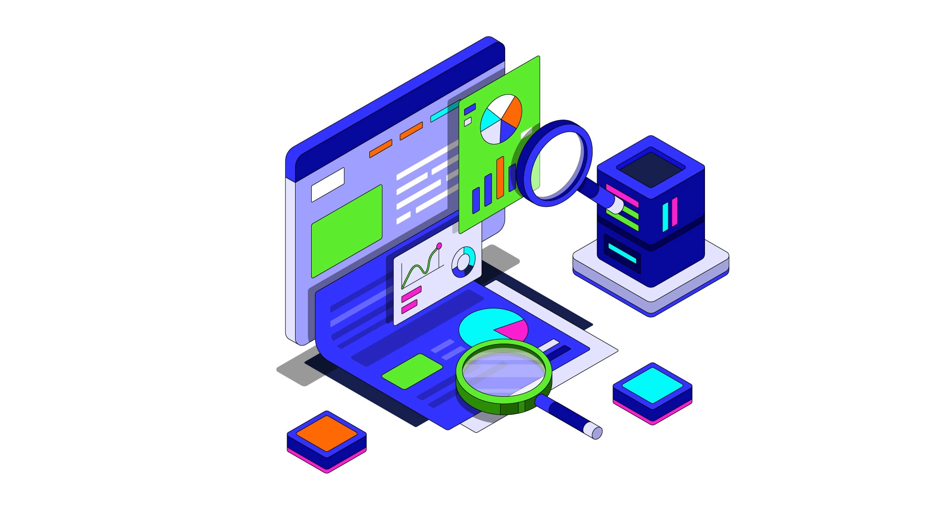 Some isometric illustrations I did for a data-driven marketing company called BlueHighlightedText