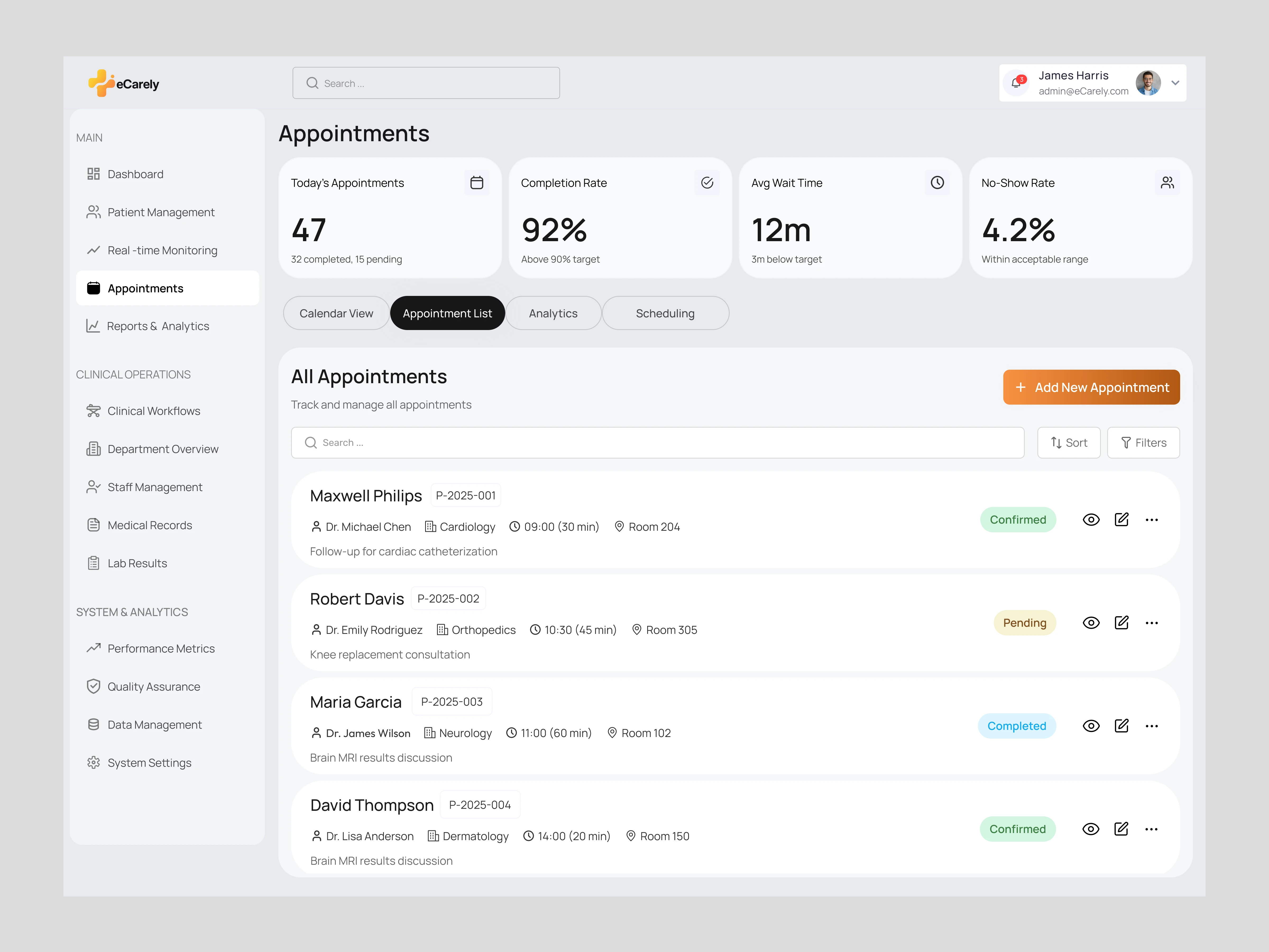 eCarely is a dual-portal healthcare management system designed to bridge the gap between healthcare providers and patients. This comprehensive platform features separate interfaces for medical administrators and patients, creating a seamless healthcare experience that prioritizes efficiency, accessibility, and patient care.