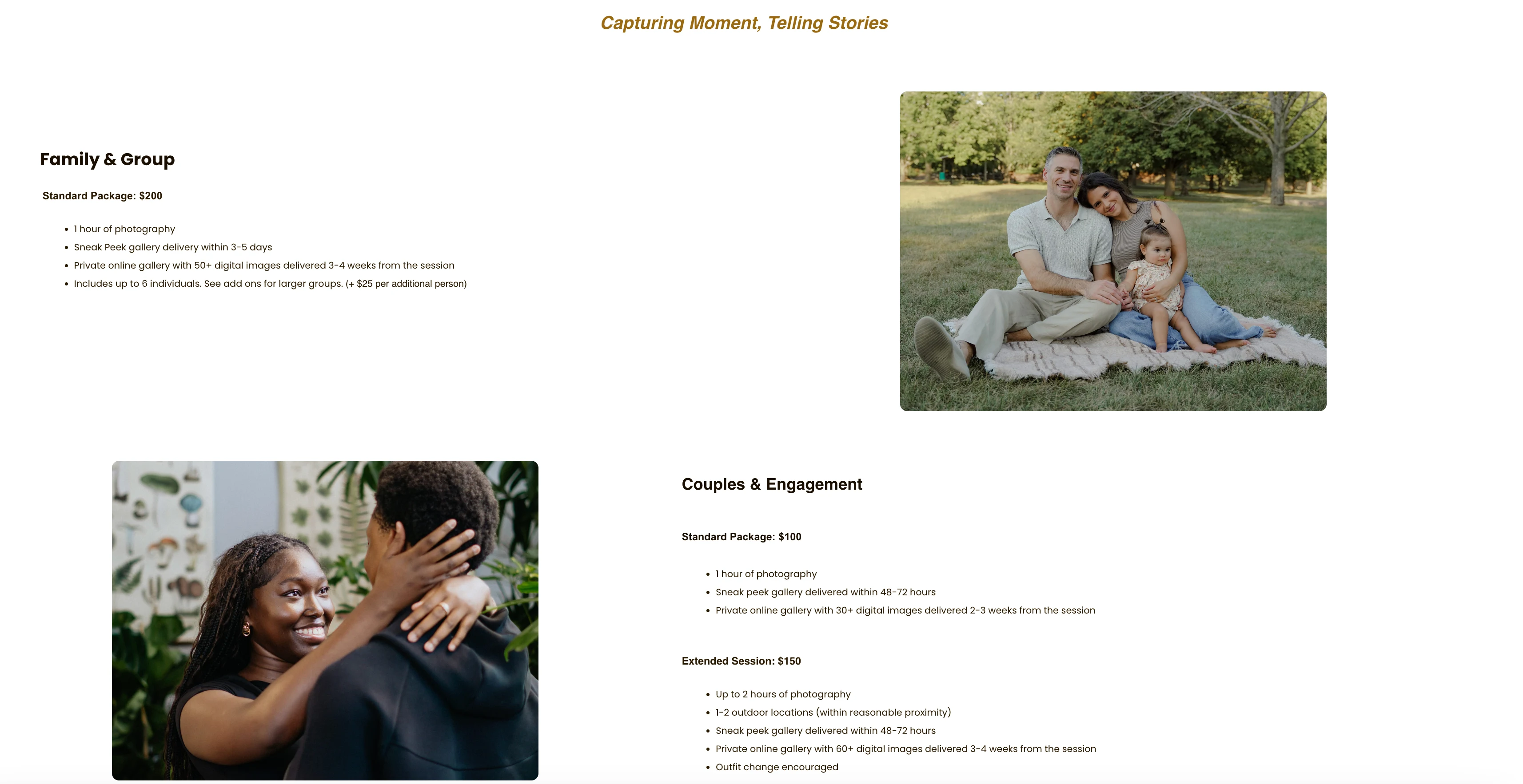Built a fully optimized photography website with an embedded booking system, seamless functionality, and a design tailored to meet the client’s vision.